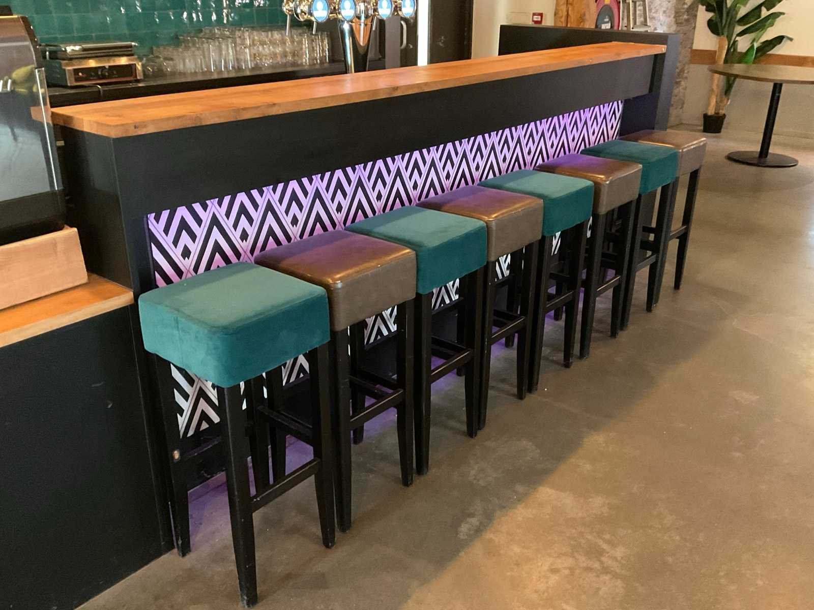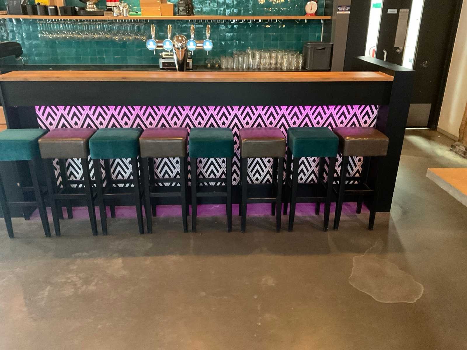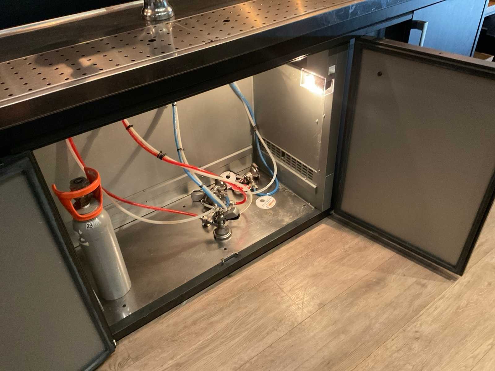 Met tapzuil, Gamko fustenkoeling, lekblad met spoelbak en kraan, 8 barkrukken en verlichting op afstandsbediening Totale afmeting L: 4650mm Totale afmeting Breedte: 1000mm Totale afmeting Hoogte: 1250mm