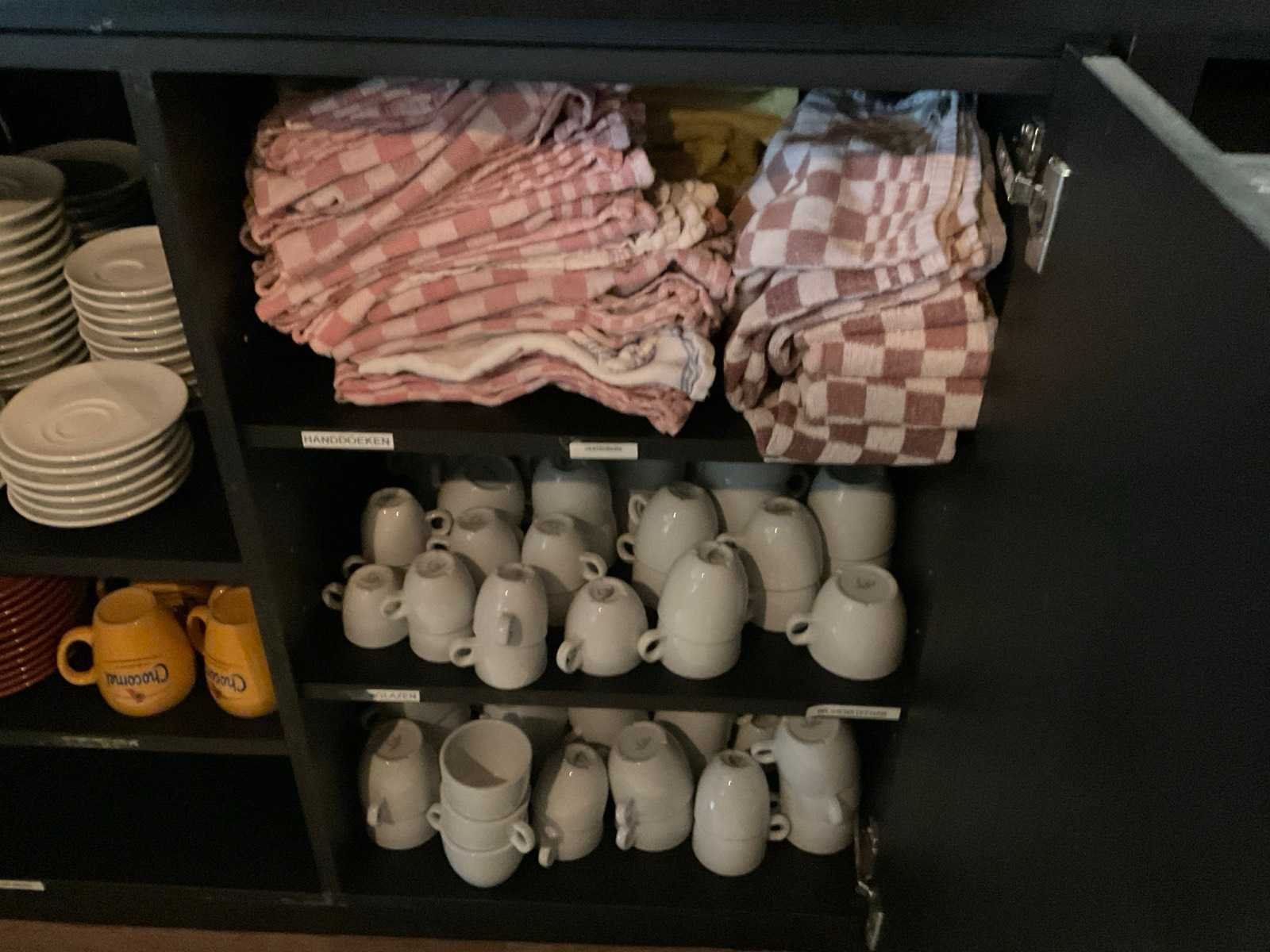 Bestaande uit: Oa kopjes, schotels, handdoeken, etc