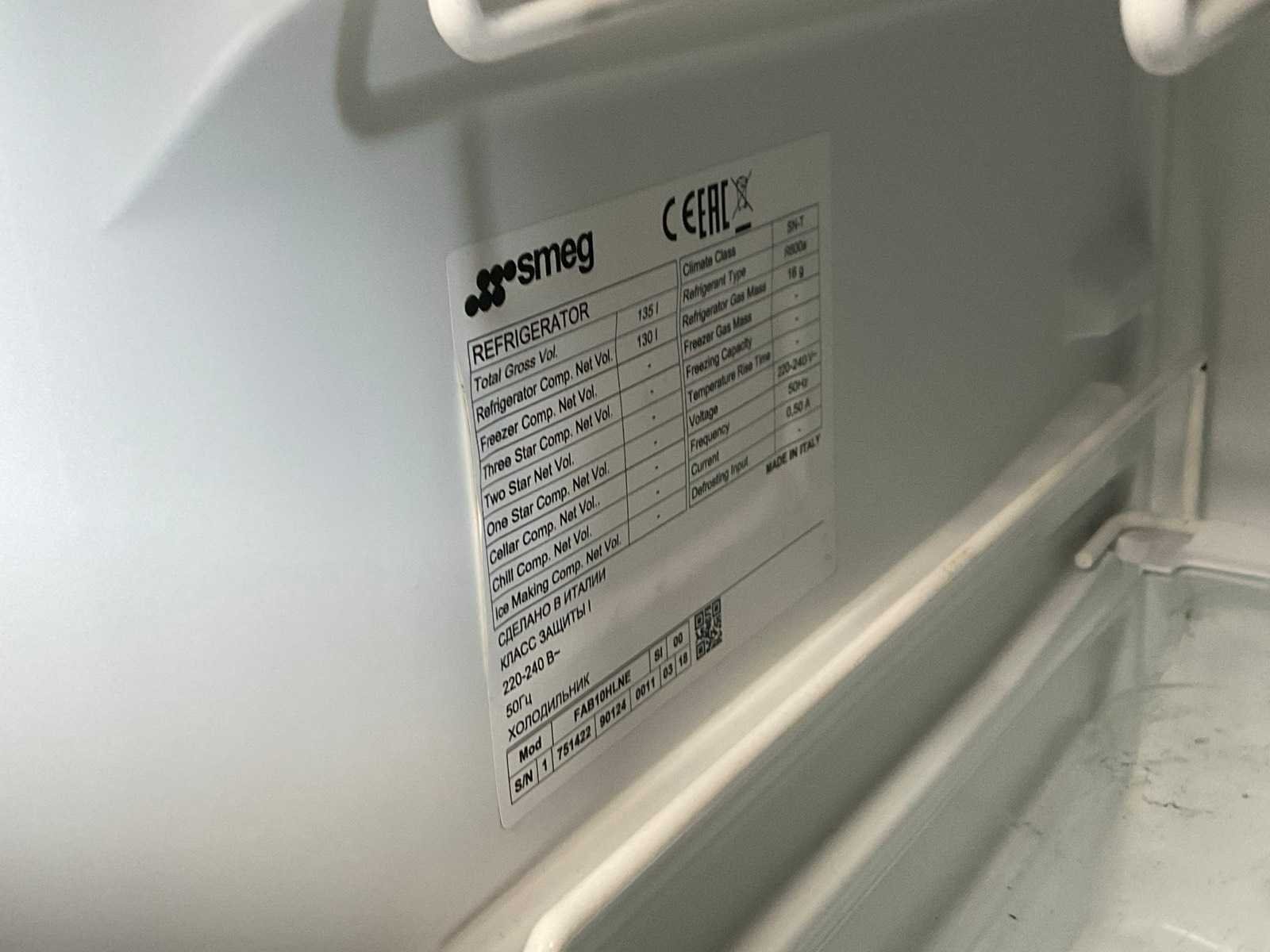 Merk: Smeg Totaal netto inhoud: 130l Spanning: 230V Lengte: 60cm Breedte: 56cm Hoogte: 96cm