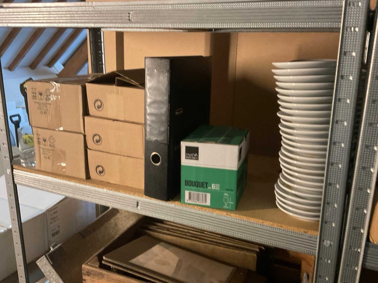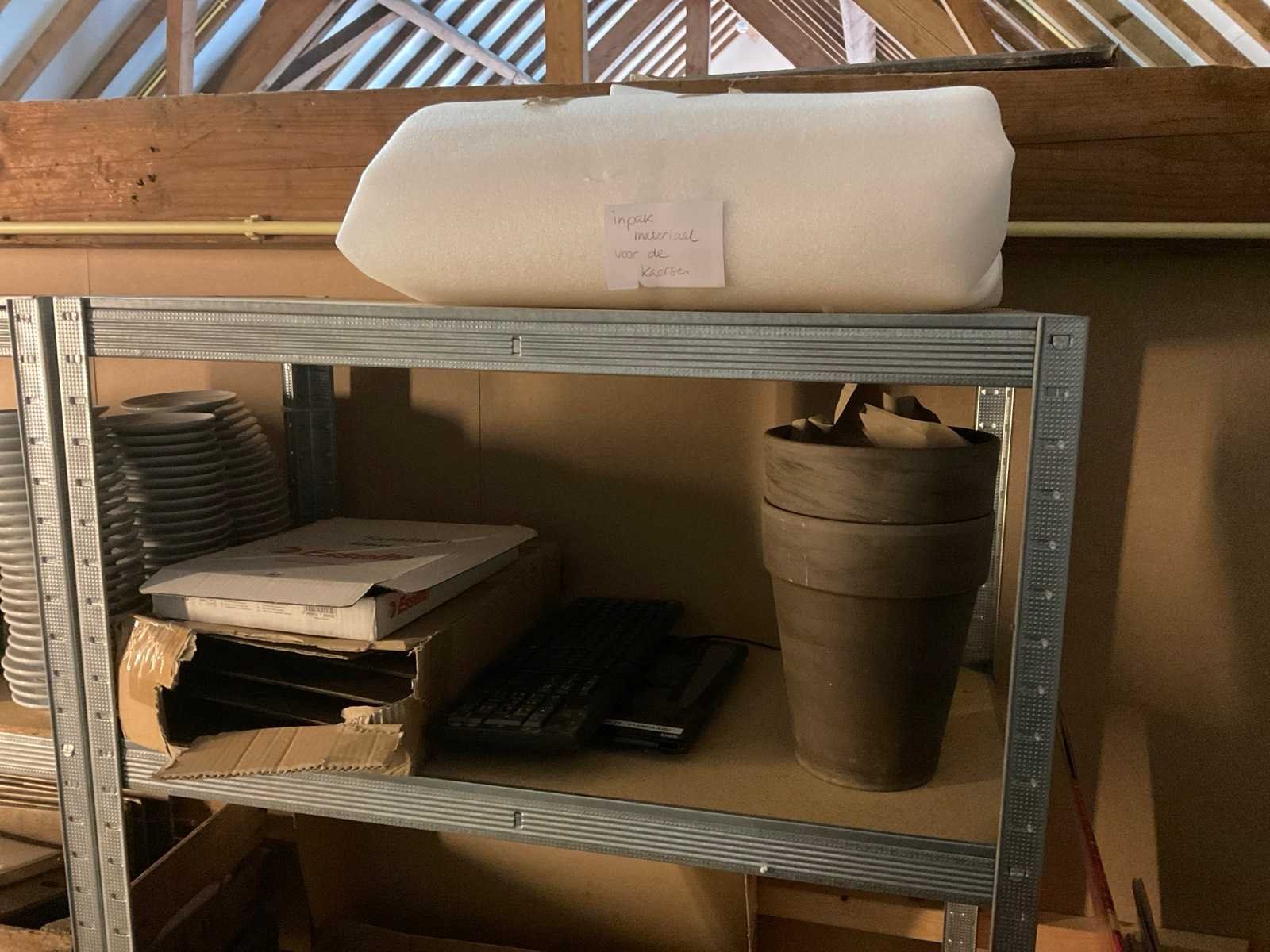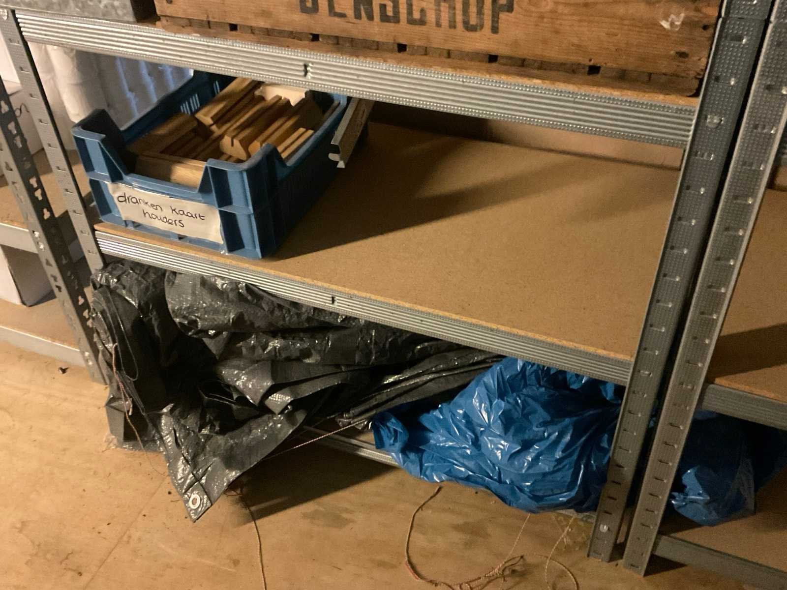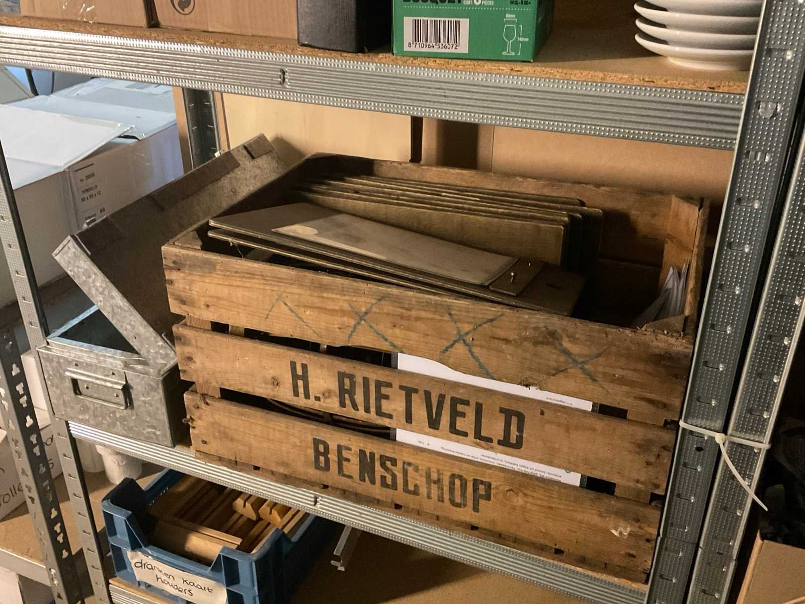 Bestaande uit: Oa menukaarthouders, krijtbord, theeglazen, verpakkingsmaterialen, etc