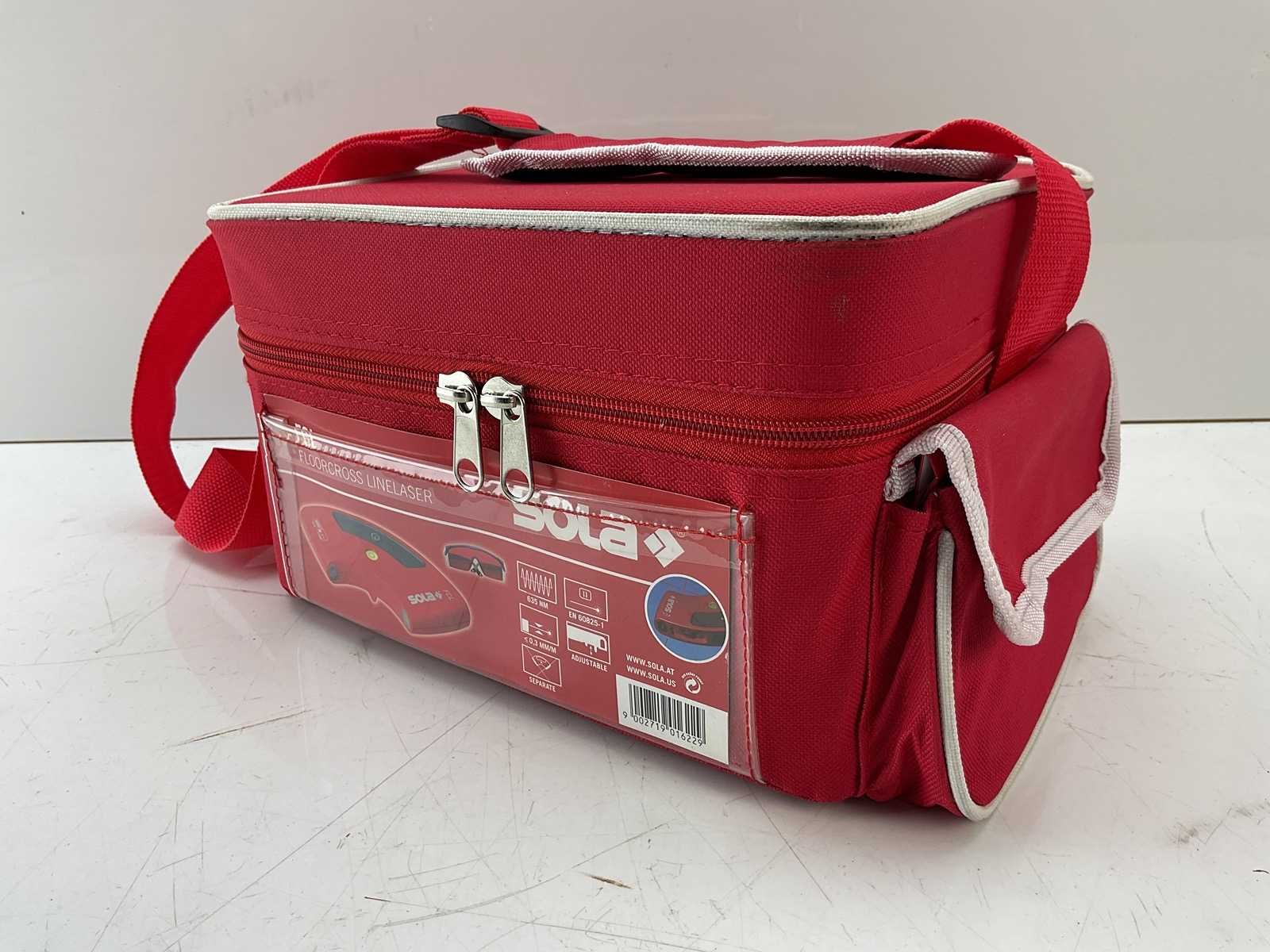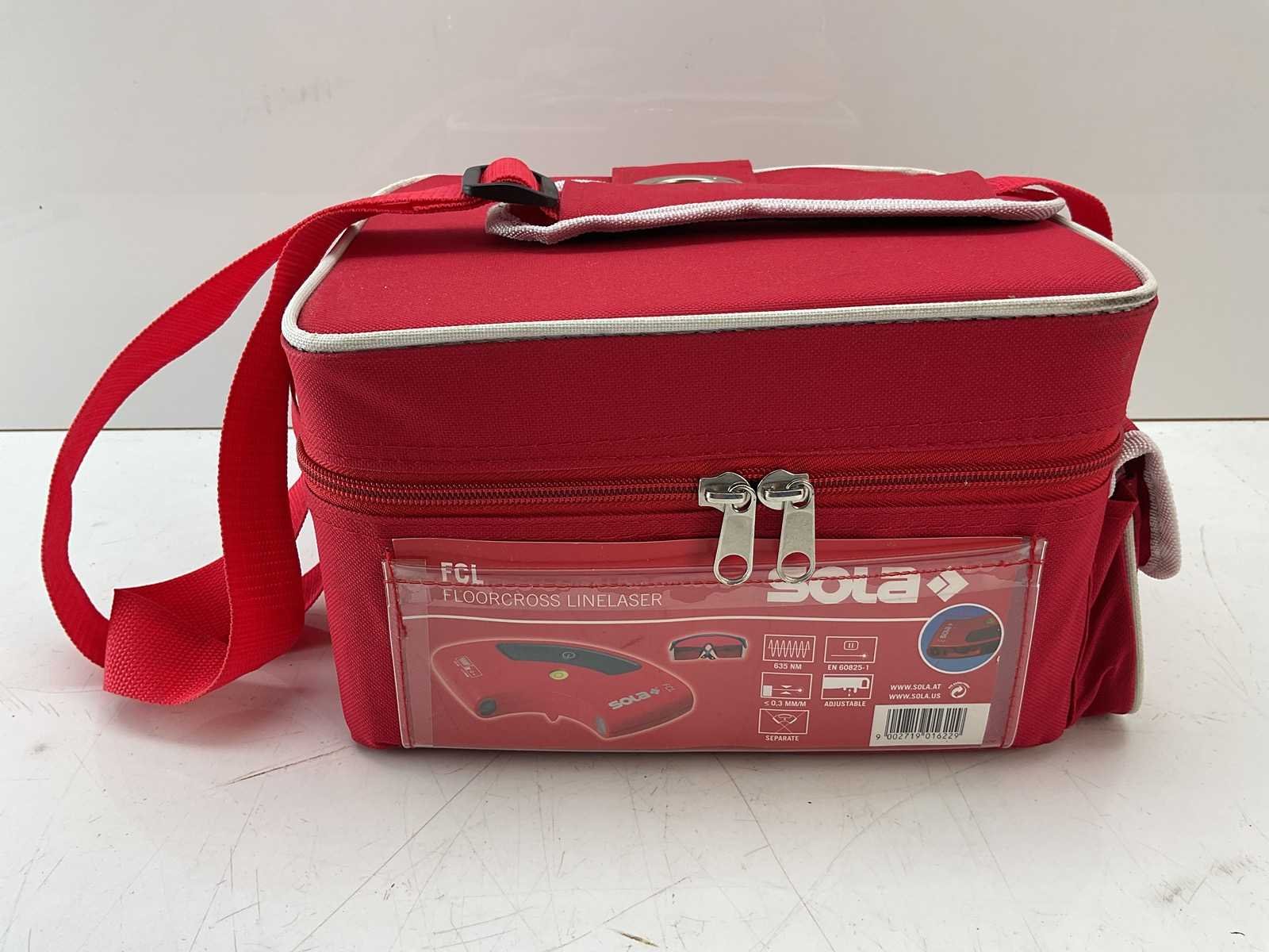 Deze kruislijnlaser met 4 lijnen van 90° is ideaal om tegelwerk in één meting uit te zetten. Hij beschikt over 4 diodes met een golflengte van 635 nm (klasse 2). Dankzij 2 verstelbare voetjes met draaiknop kan het toestel nauwkeurig worden afgesteld op een oneffen ondergrond. Het bereik bedraagt 10 meter per lijn, met een maximale afwijking van 0,3 mm per meter. De voeding gebeurt via 4 AA-batterijen (1,5 V), goed voor ongeveer 15 uur gebruik. Wordt geleverd met een beschermbril en een draagtas. Merk: Sola Type: Floorcross linelaser FCL Met koffer: true