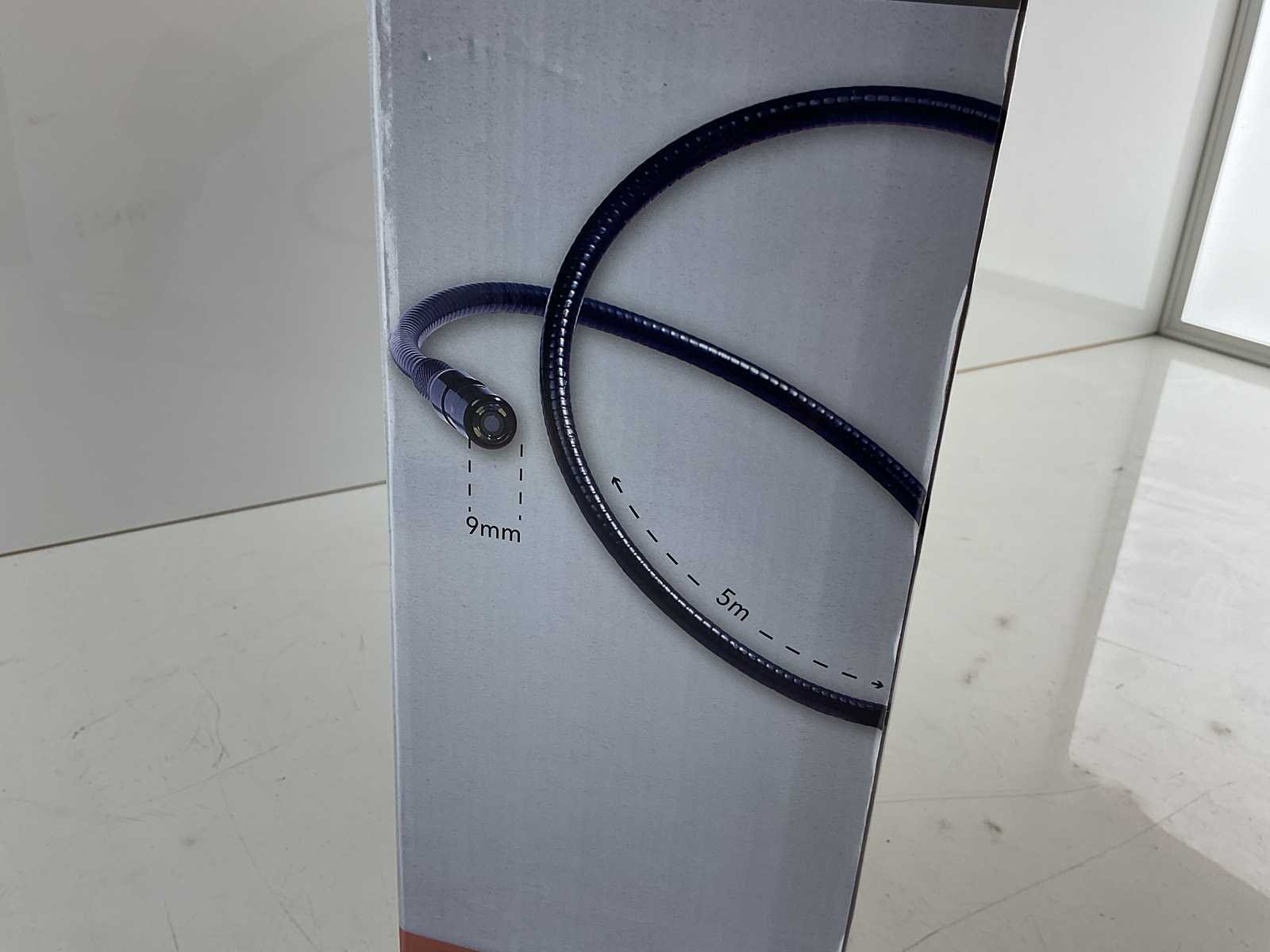 Inspectiecamera met 3,5”-TFT-display en een resolutie van 640x480. De 9 mm-camera op de 5 m lange zwanenhals heeft bovenaan 4 LED-lampjes en een scherpstelbereik tussen 5 en 15 cm. Afbeeldingen en video’s kunnen worden opgeslagen. Merk: Futech Type: Tubecorder 5.9