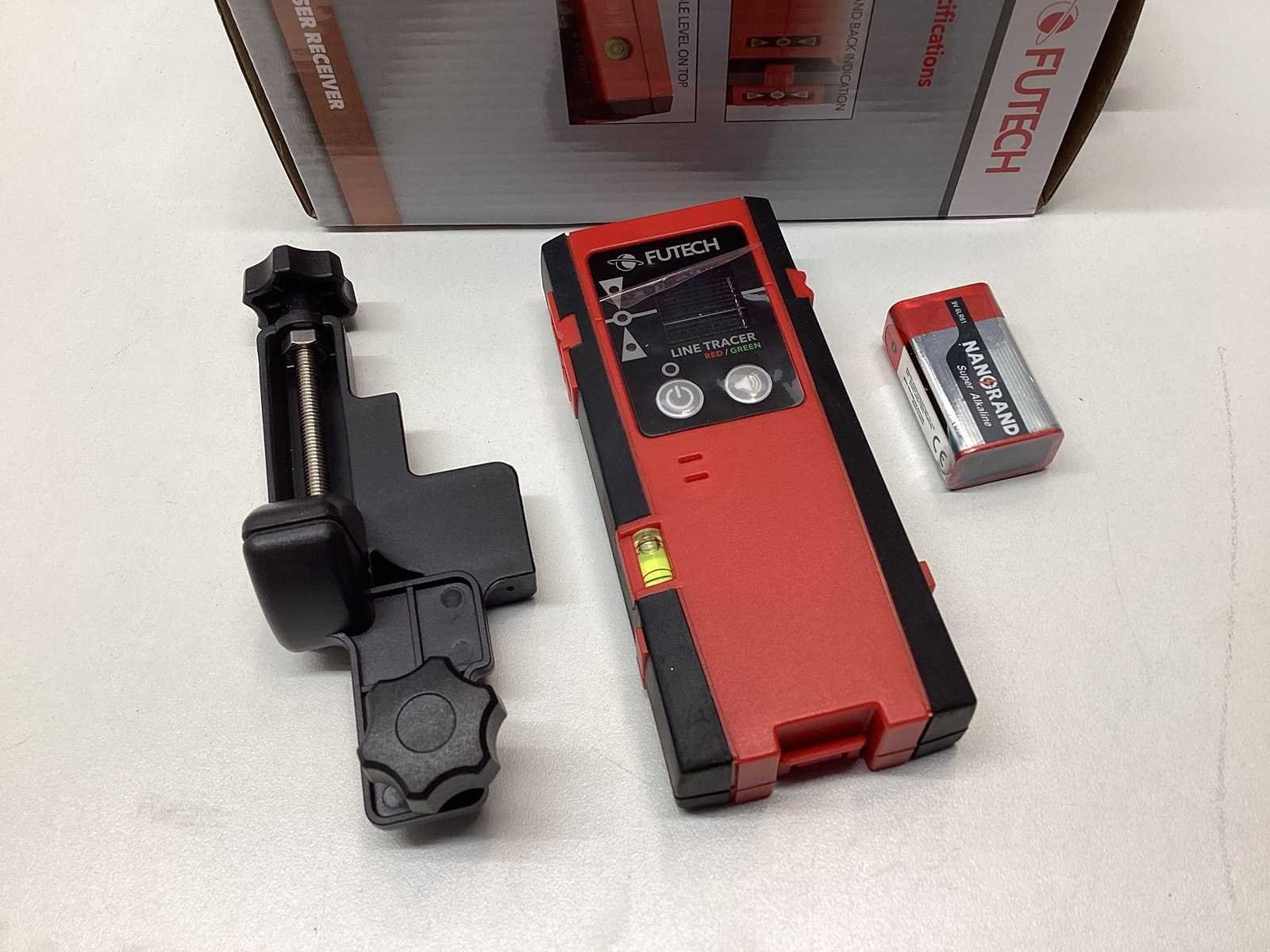 Deze ontvanger is geschikt voor rode en groene lijnlasers, 3D kruislijnlasers en standaard kruislijnlasers, mits compatibel met het betreffende model. Het apparaat vergroot het werkbereik van de laser tot maximaal 50 meter, waardoor nauwkeurig werken op grotere afstanden mogelijk wordt. De ontvanger beschikt over een ontvangstveld van 22 mm en geeft duidelijke signalen via leds en geluidssignalen, zodat de laserlijn snel en eenvoudig kan worden gelokaliseerd. Wordt geleverd inclusief handige bevestigingsklem voor eenvoudige montage. Merk: Futech Type: Line tracer Red/Green