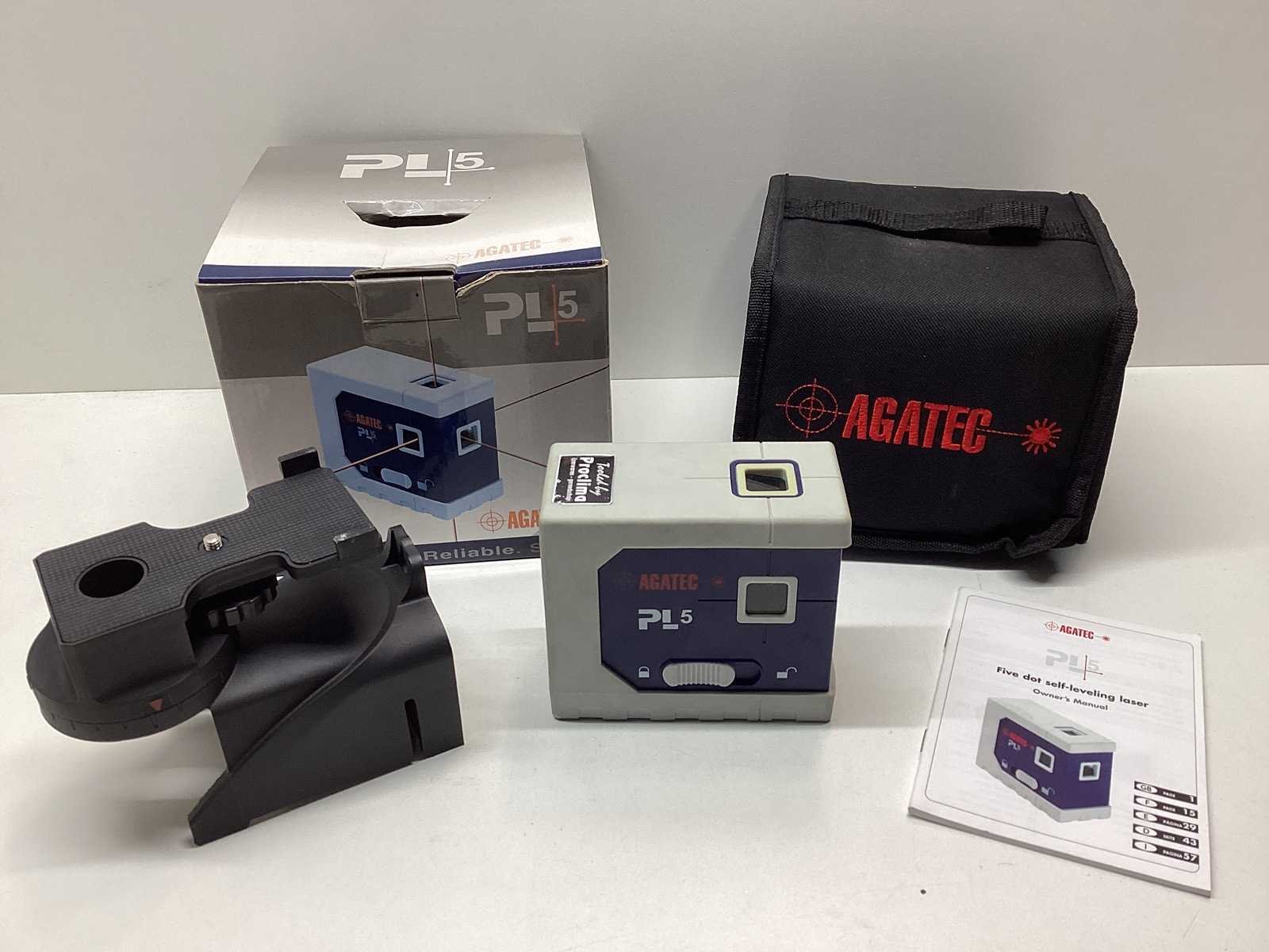 Zelfnivellerende 5-puntslaser met schietlood-, waterpas- en vierkant-stralenbundels. Laserpunten zijn loodrecht op elkaar geplaatst op 30mm van iedere kant. Geleverd met universele adapter, speciaal bestemd voor droge muursporing, vloer-tot-plafond loodschieten, hoeken en toepassingsspecifieke trefpunten uitzetten, nuttig bij controle van hellingshoeken of verticale lijnen. Merk: Agatec Type: CP5 5-puntslaser