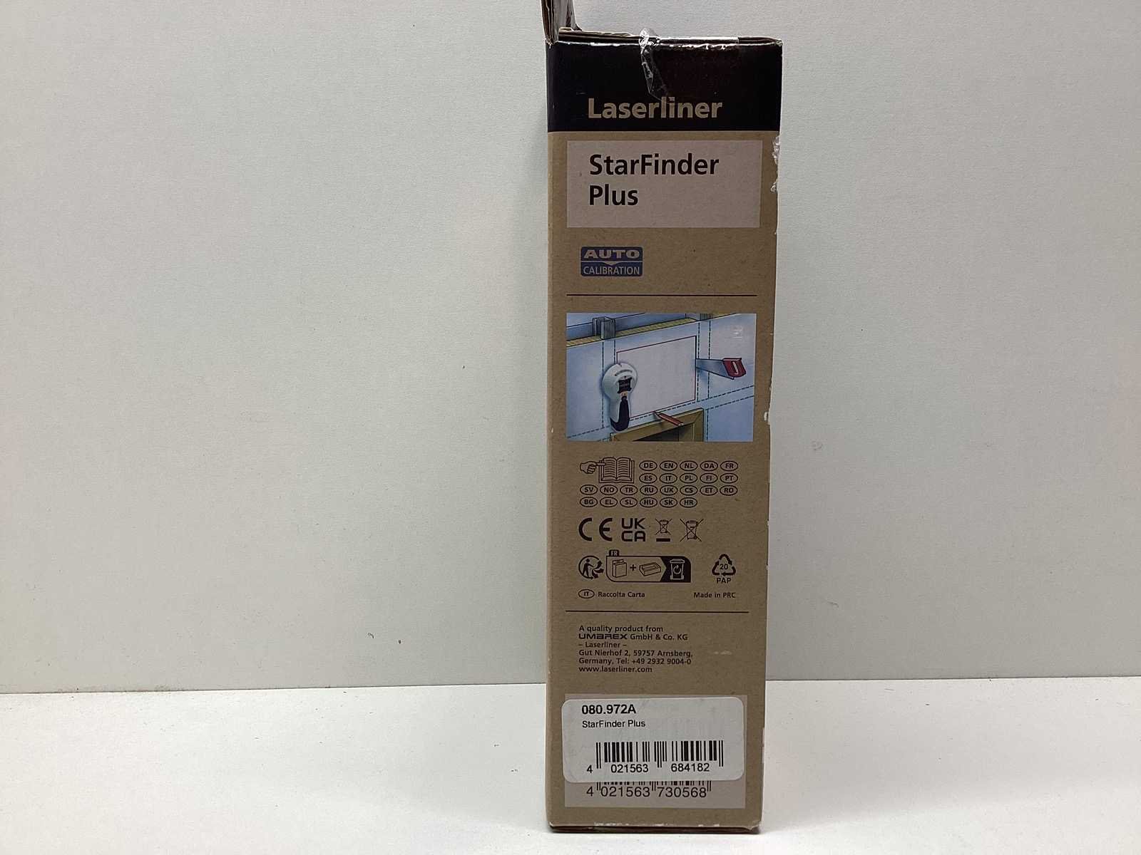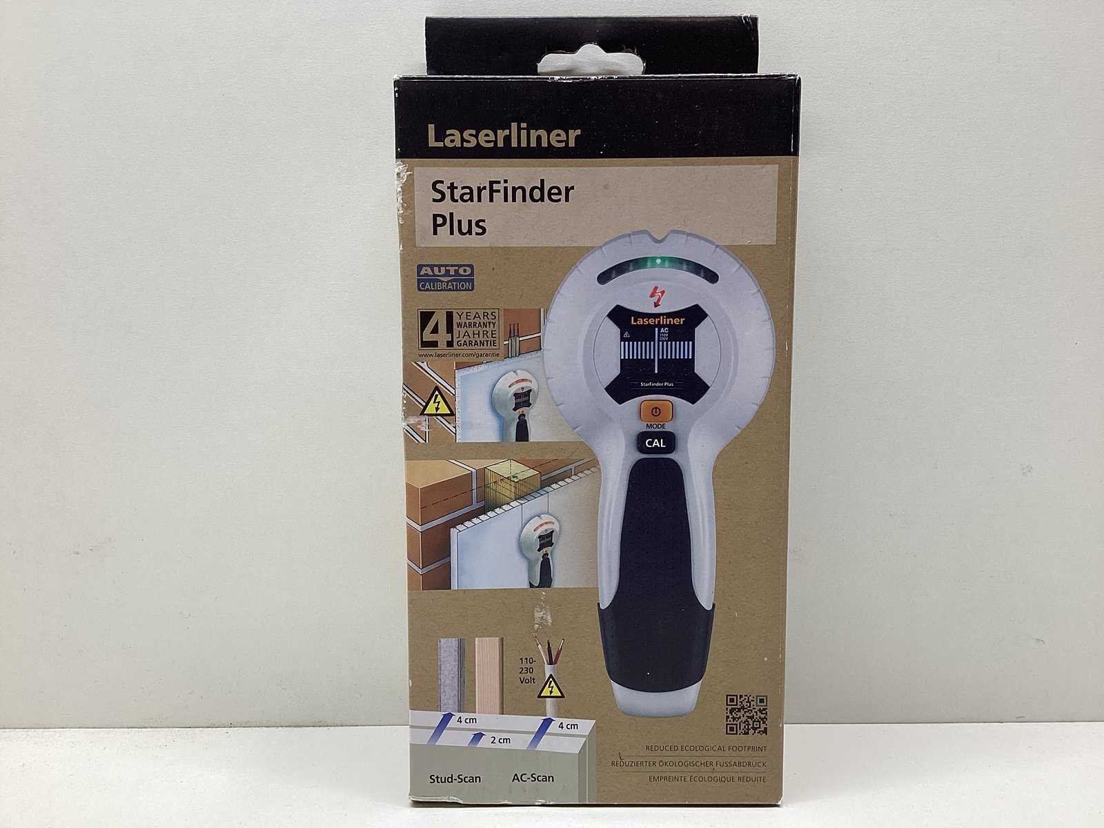 De Laserliner StarFinder Plus Detector** is een elektronische detector voor het opsporen van spanningvoerende leidingen, wand- en dwarsbalken. Met één druk op de knop wissel je eenvoudig tussen de meetmodi. Het apparaat beschikt over een duidelijk LC-display, automatische kalibratie bij het inschakelen en geeft zowel akoestische als optische signalen bij detectie. De permanente spanningswaarschuwing verhoogt de veiligheid en maakt het mogelijk om positie en looprichting van leidingen nauwkeurig vast te stellen. Ideaal voor het veilig bevestigen van bijvoorbeeld keukenkasten of het bepalen van vrije ruimtes in plaatwanden voor doorgangen. Het meet AC-spanning van 110–230V (50–60 Hz), werkt bij temperaturen van 0 tot 40°C en wordt gevoed door één 9V-batterij. Het compacte apparaat weegt 163 gram en meet 85 x 180 x 38 mm. Merk: Laserliner Type: StarFinder Plus