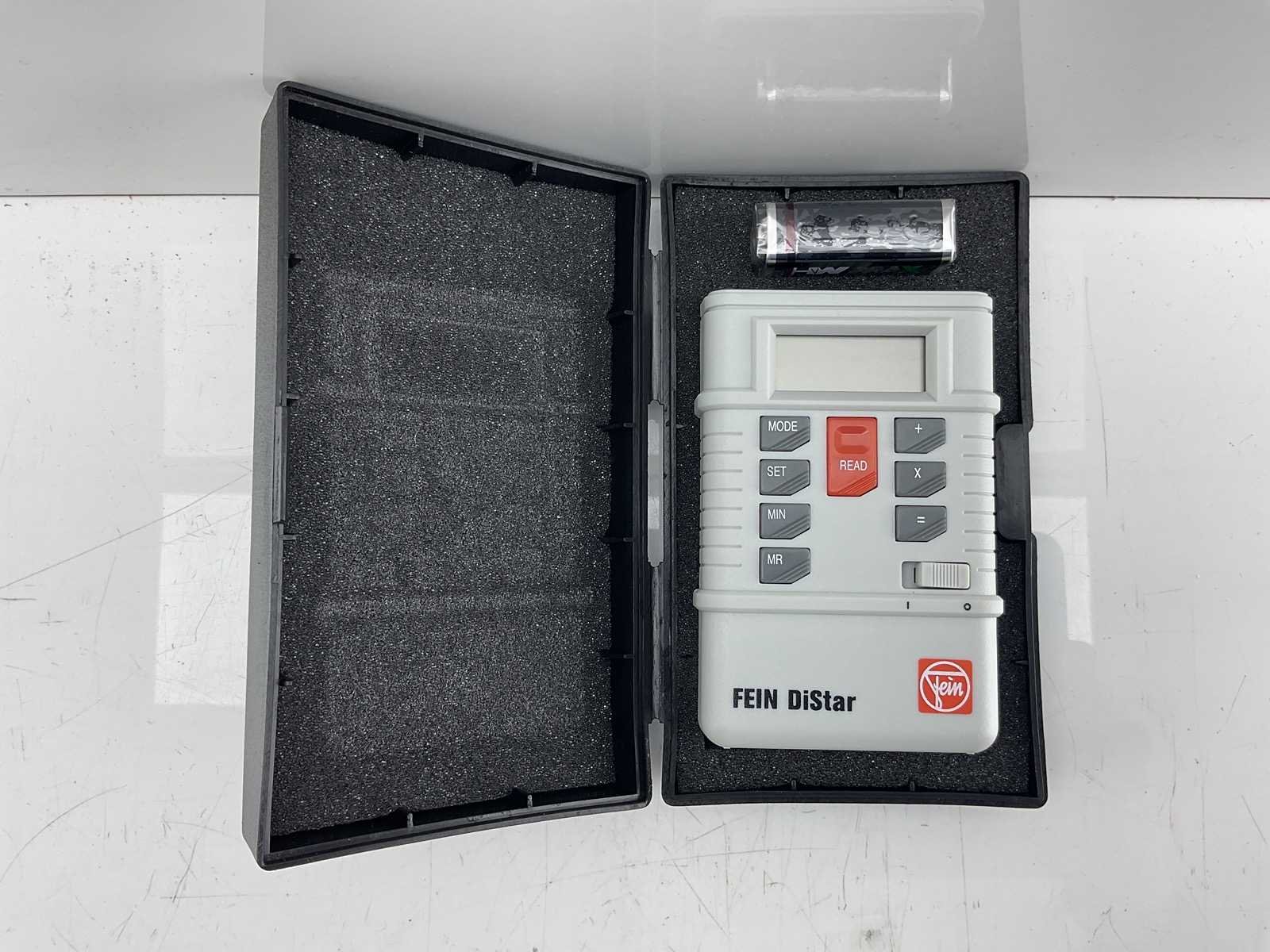 Ultrasone laser-afstandsmeter voor professioneel gebruik van het prestigieuze Duitse merk FEIN, model Distar. Laser van 1 mW, 650 nm, klasse 2. Meet afstanden van 0,6 m tot 12,5 m met een nauwkeurigheid van 1 cm. Voorzien van een 5-cijferig LCD-display. Maakt het mogelijk om metingen op te slaan en berekeningen en waardeconversies uit te voeren met deze metingen. Merk: Fein Type: Distar