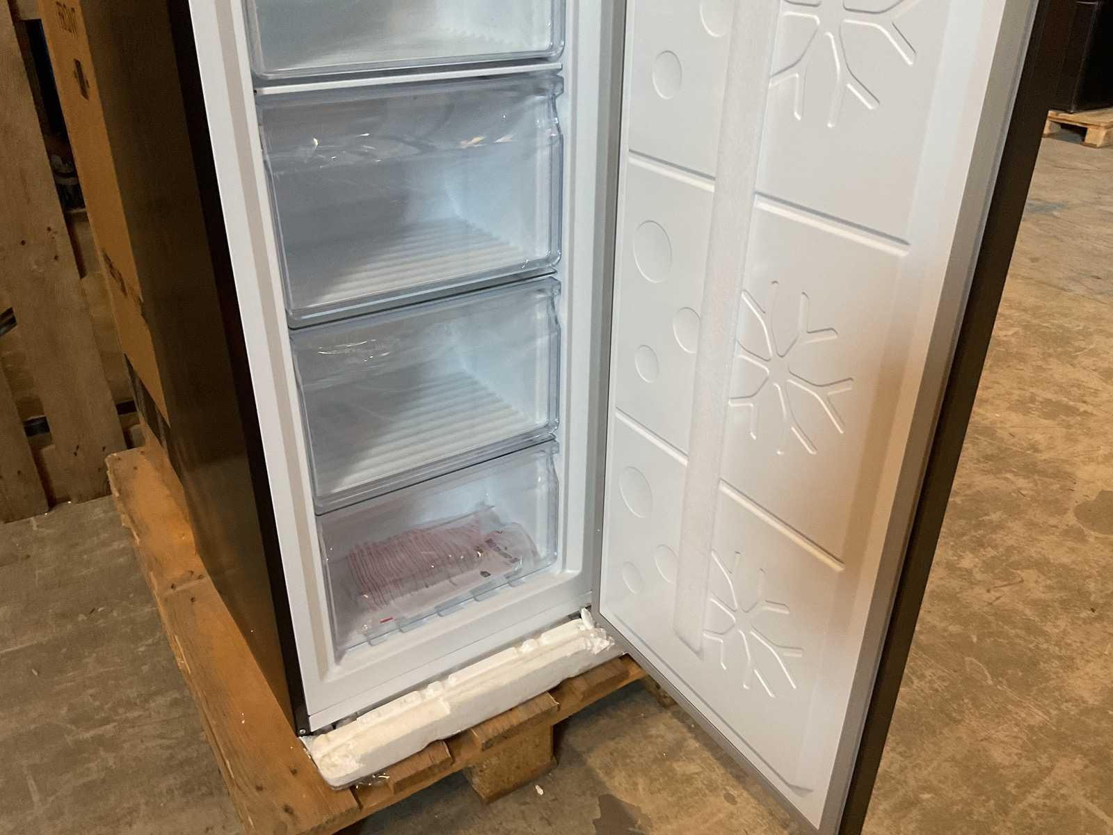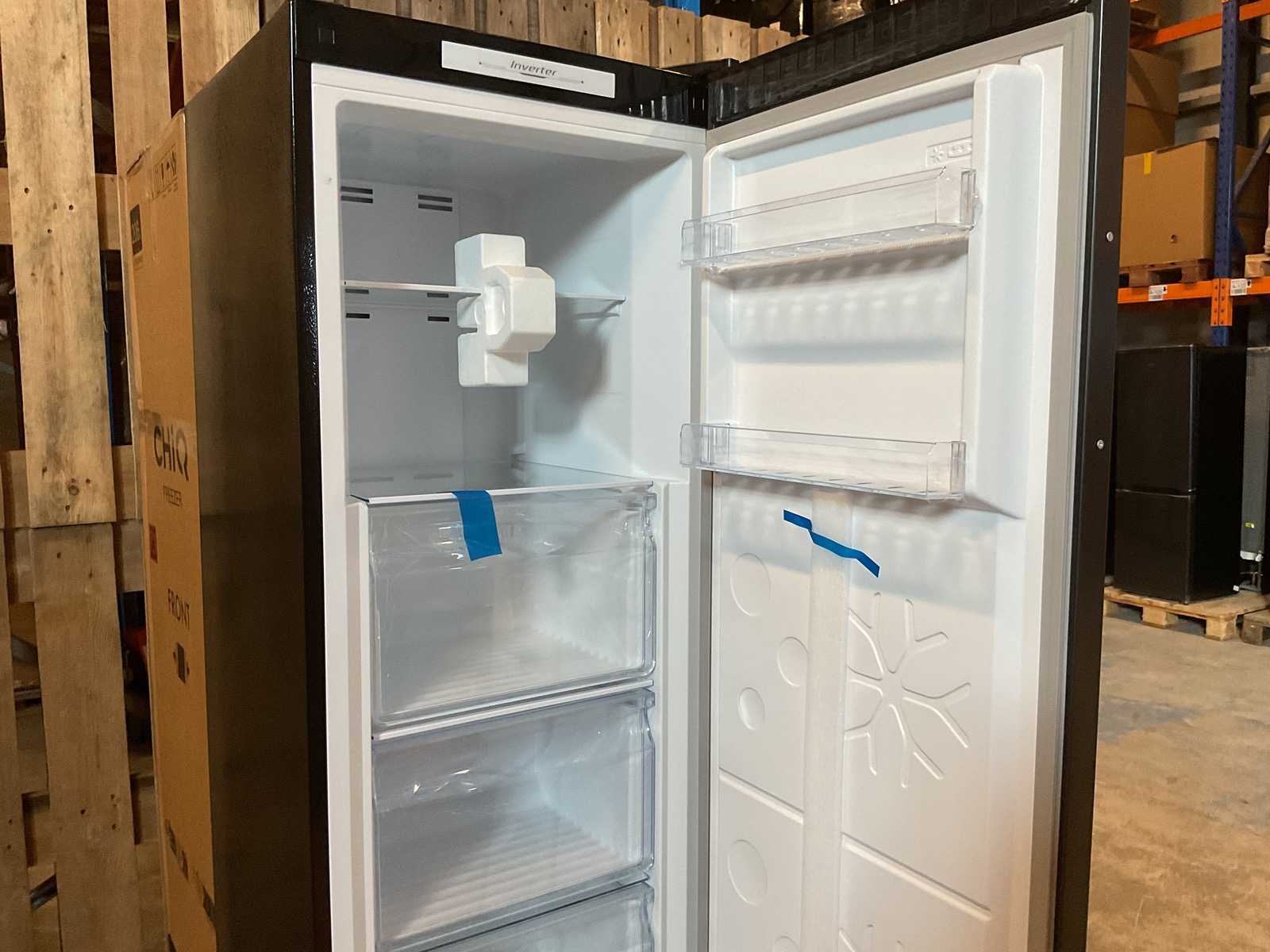 Nieuw, met transport schade Merk: Chiq Model: CSD206NEID Totaal netto inhoud: 206l Lengte: 54.70cm Breedte: 59.90cm Hoogte: 170.50cm
