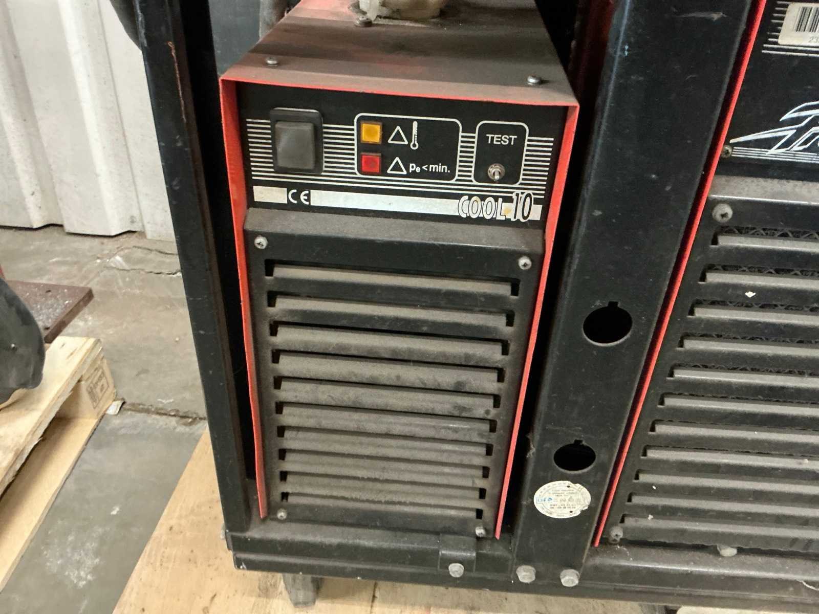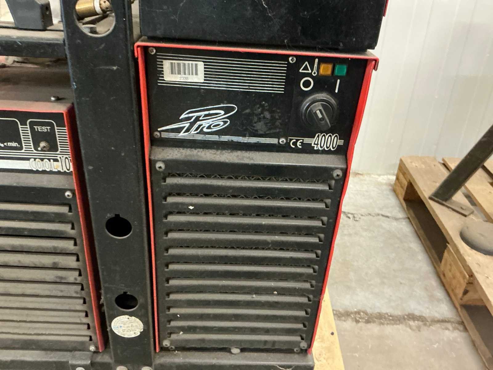 Kemppi MIG 510 draadaanvoerunit; Kemppi Cool 10 koelunit; met 2x aangebroken rol lasdraad; 2x laskap; 1x bankschroef op staander; 1x lasmanipulator op staander Merk: Kemppi Type: Pro 4000 Serienummer: 6131400 Max. lasvermogen: 400A Aansluiting: 400V Draadaanvoerunit: true Afmeting l: 1000mm Afmeting b: 700mm Afmeting h: 1300mm