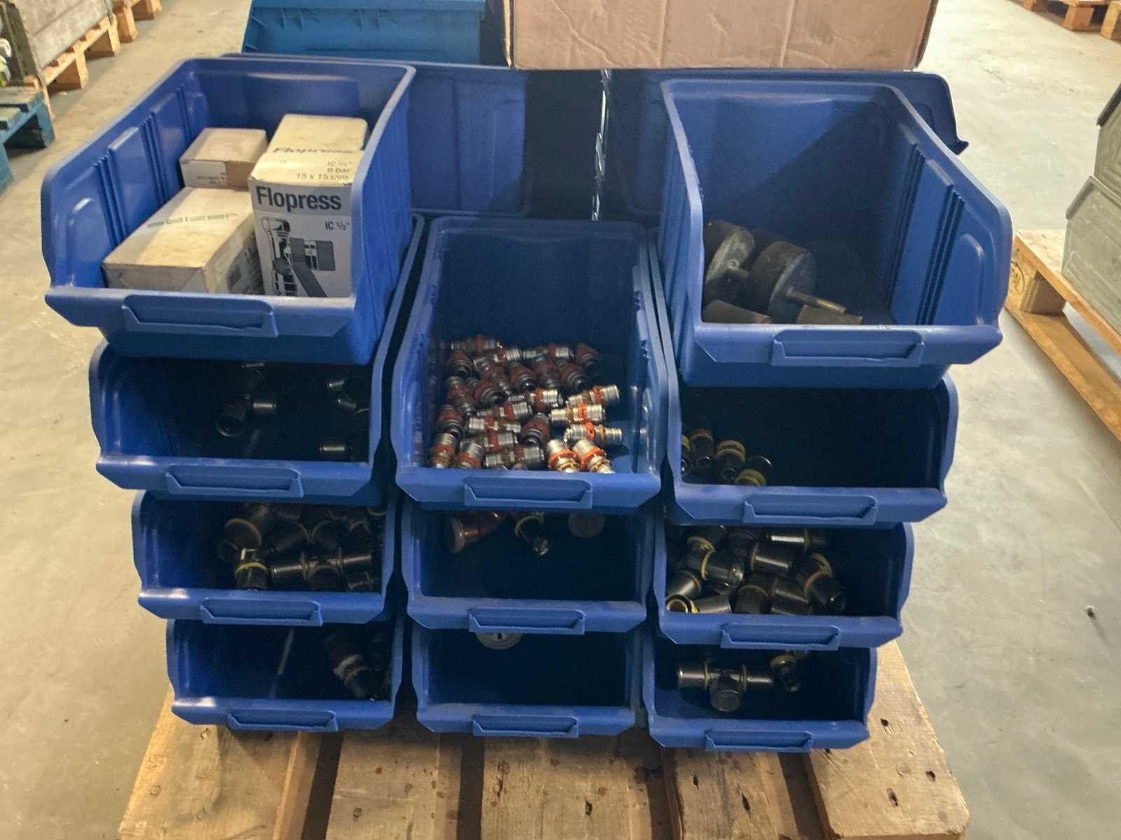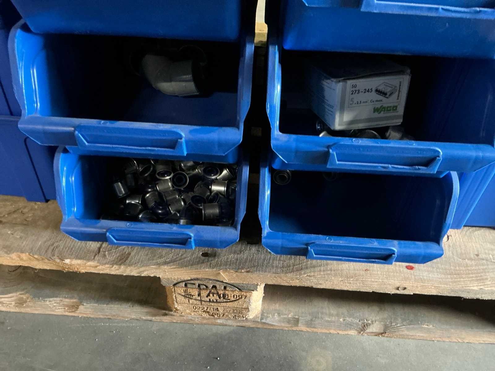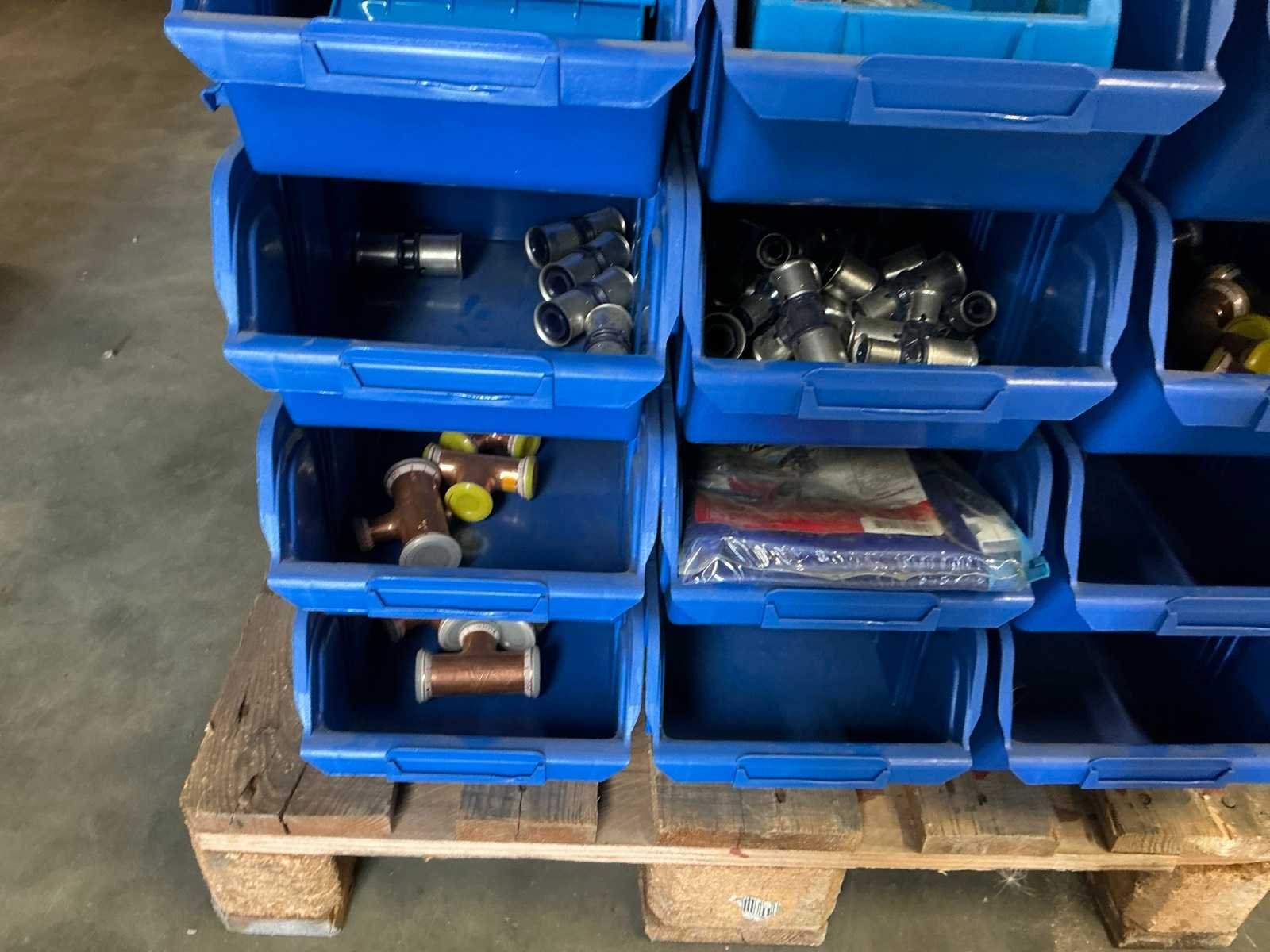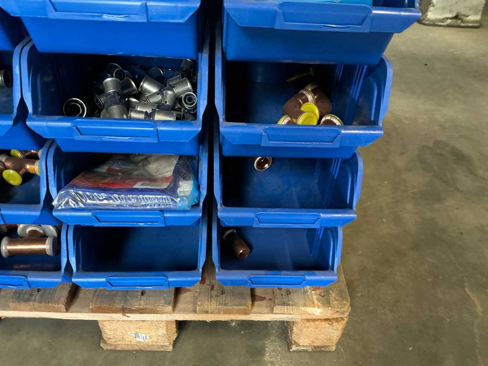 Diverse koppelingen; in ca. 35x kunststof magazijnbak
