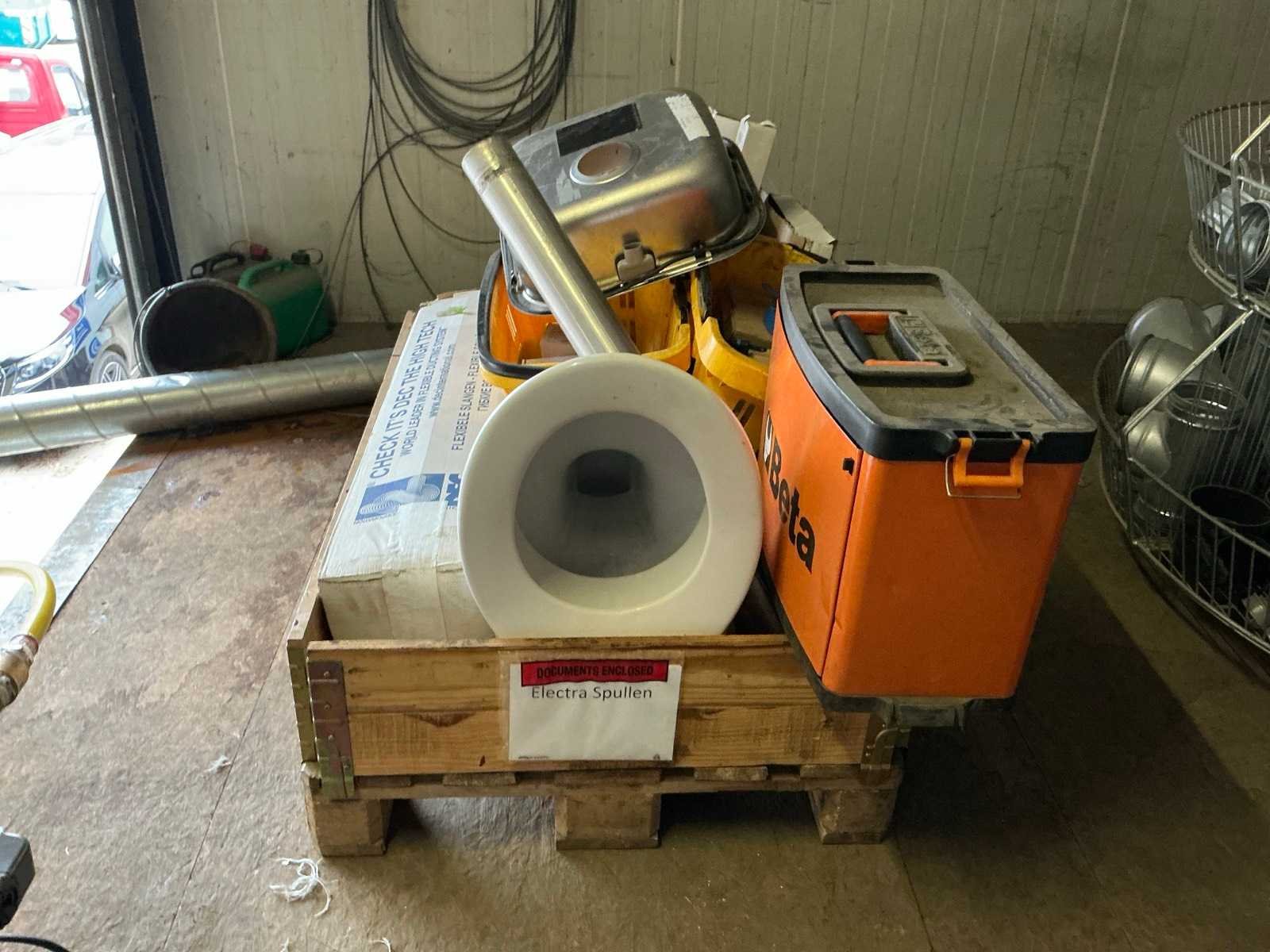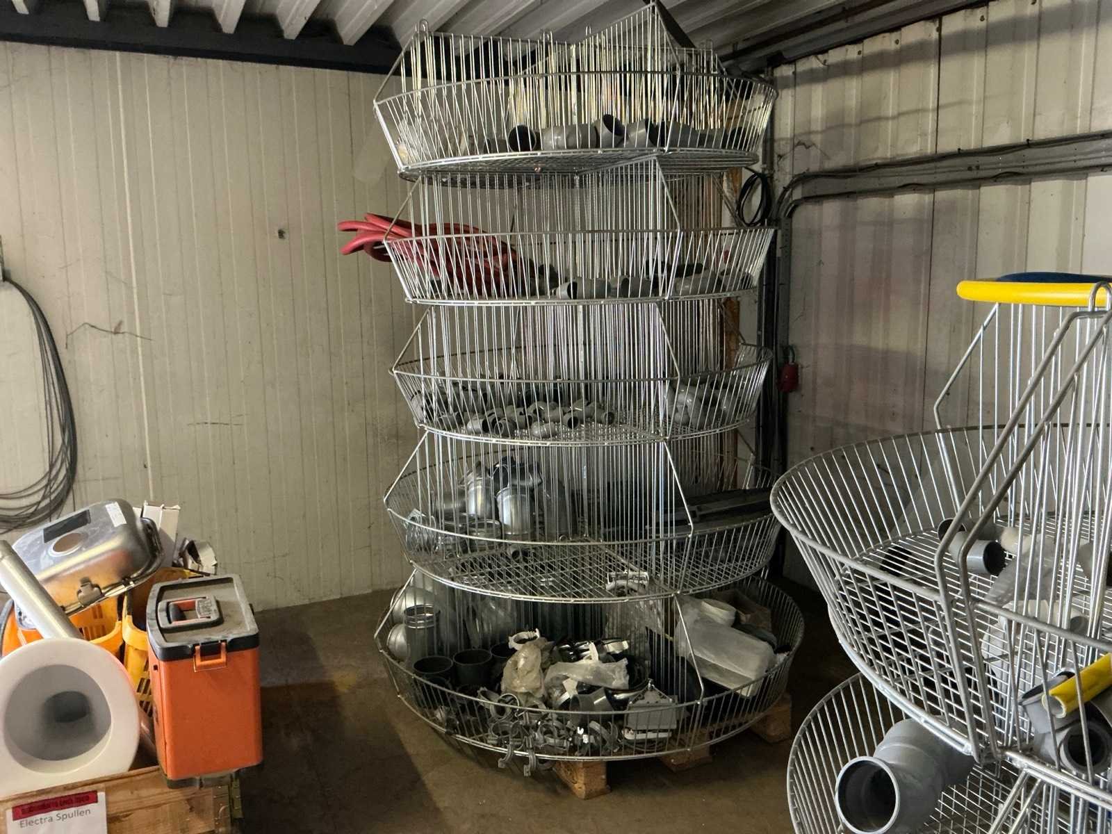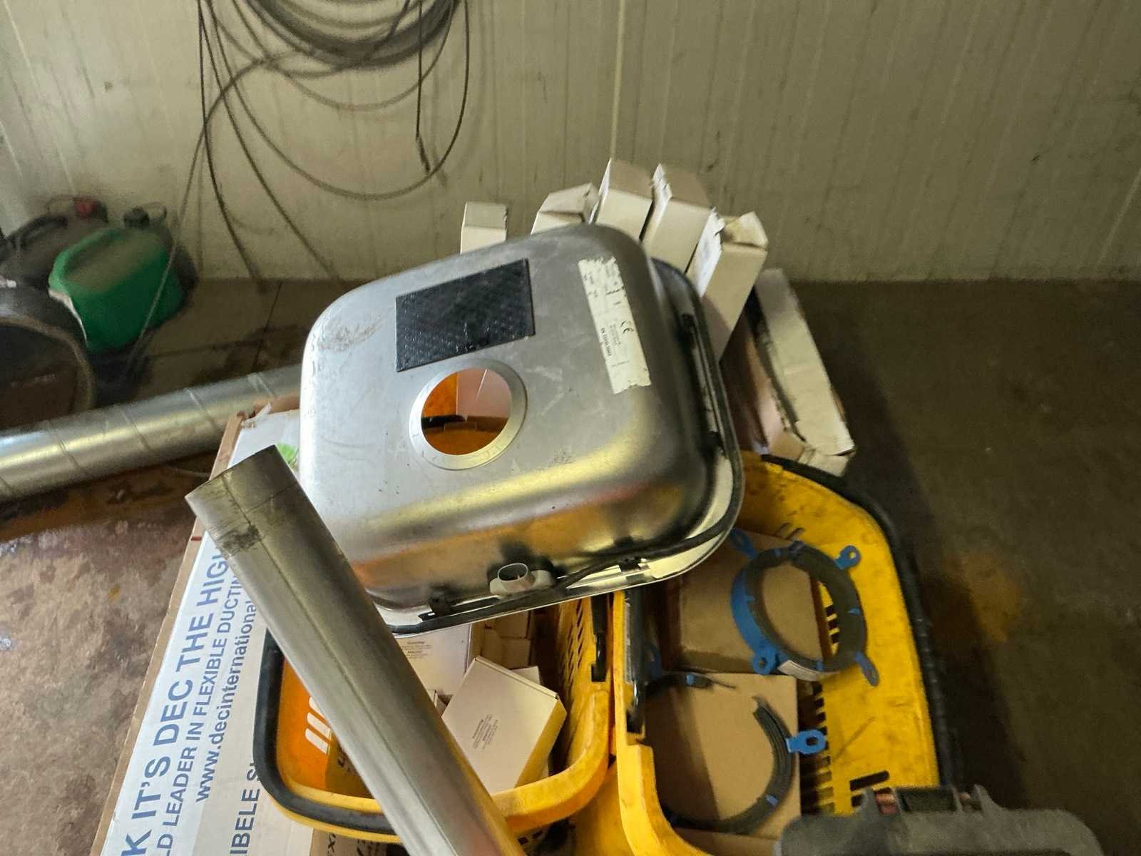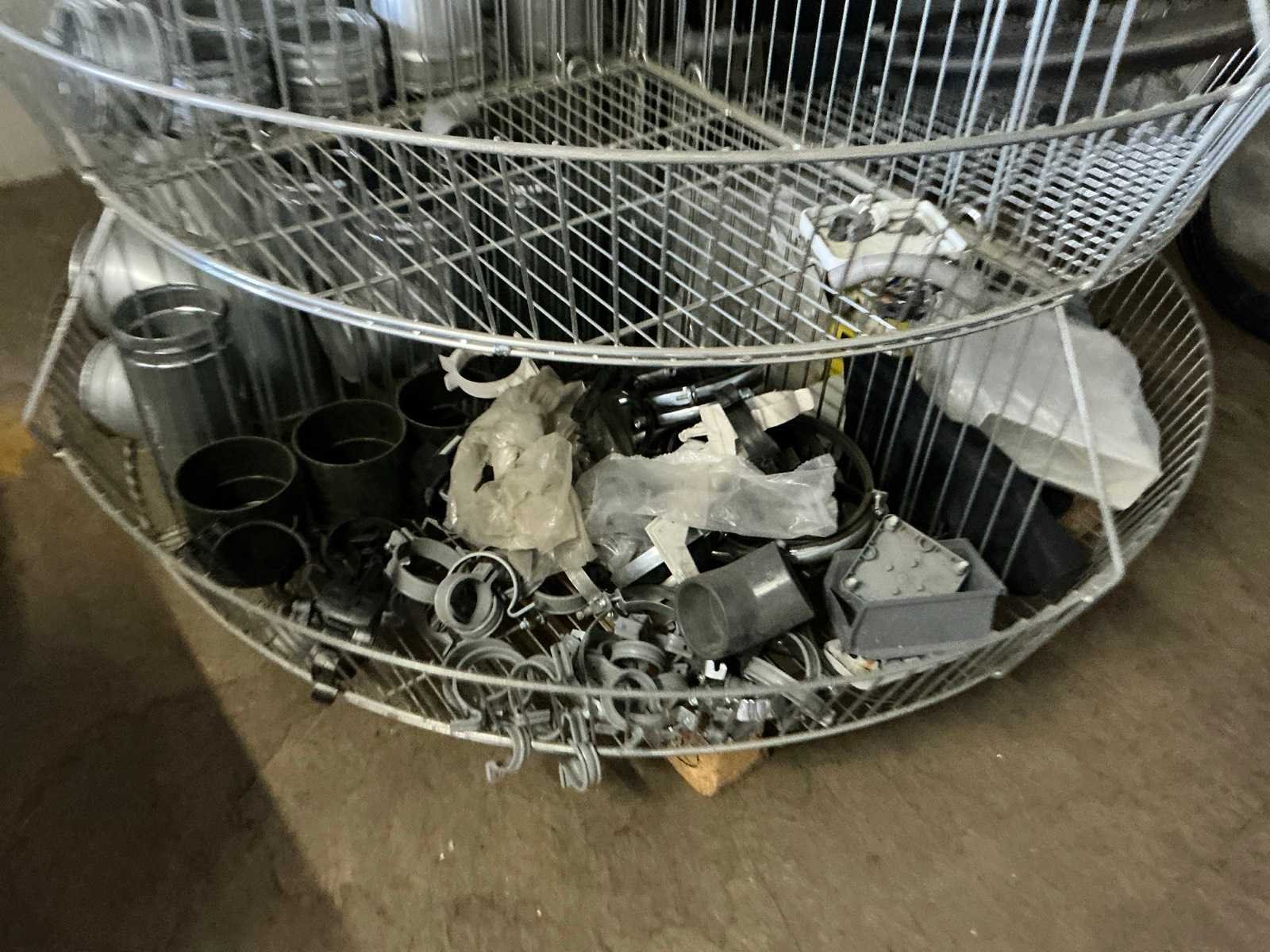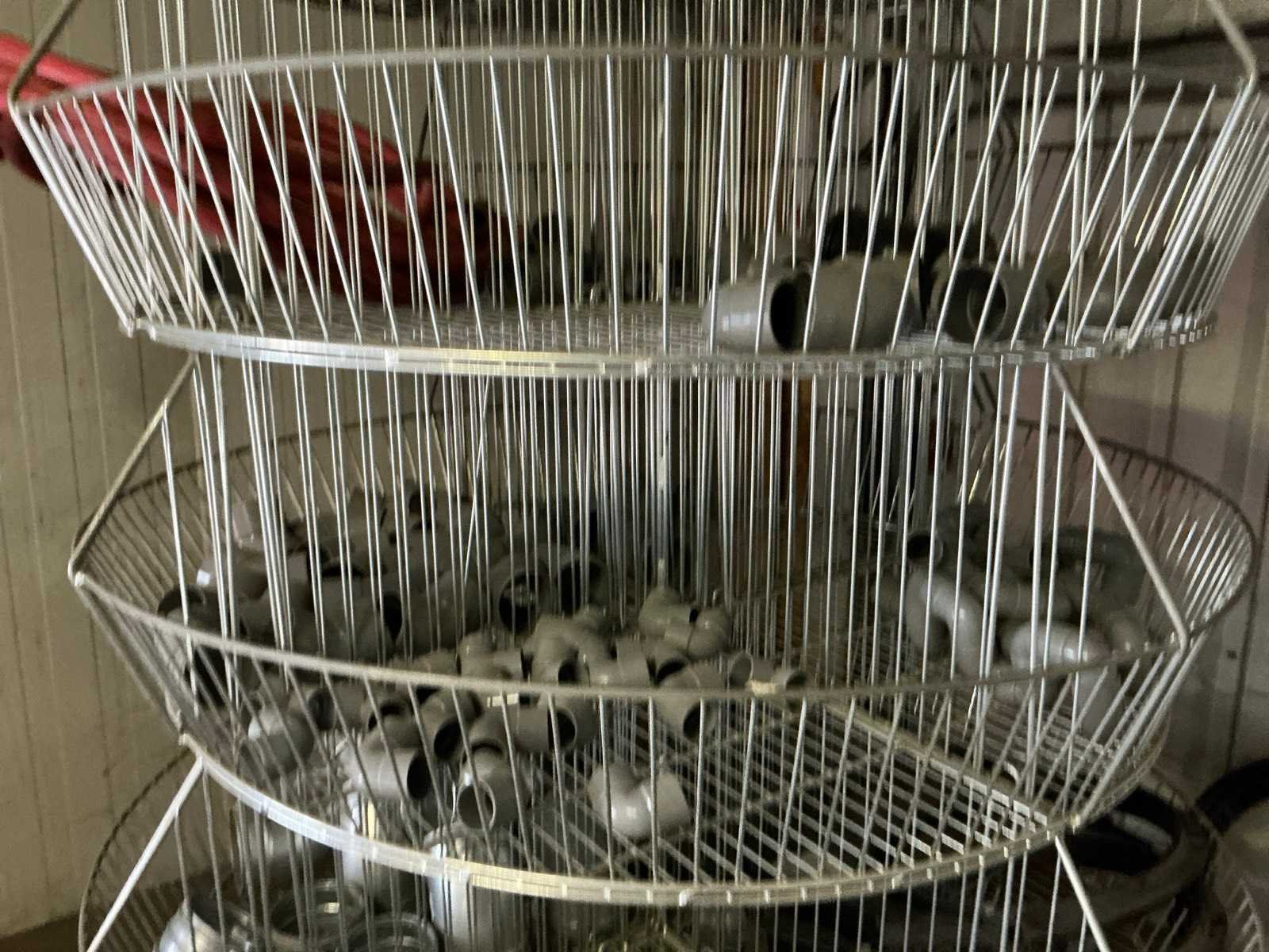 Diverse pvc koppelingen; toilet; wc bril; totaal in 2 ronde stellingen en 1x pallet; inclusief stellingen