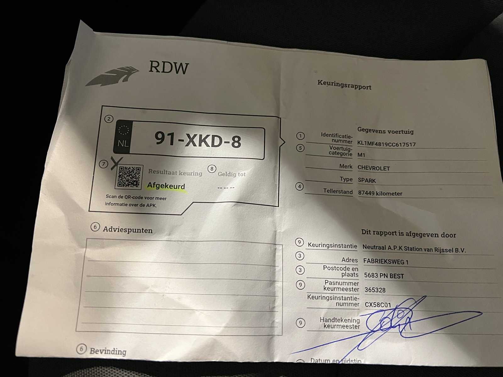 Kenteken: 91-XKD-8 Merk: Chevrolet Model: Spark Type: 1.0 16V LS Bi-Fuel Afgelezen kilometerstand: 87548km Cilinderinhoud: 995cc Vermogen (kW): 50kW Brandstof: Benzine Chassisnummer: KL1MF4819CC617517 NAP status: Logisch Datum eerste toelating: 2012-06-22 Datum eerste toelating (NL): 2012-06-22 APK vervaldatum: 2025-12-08 Vermogen (pk): 67hp Aantal zitplaatsen: 5 Kleur: wit Transmissie: H5 Gasinstallatie: true Stuurwiel: links Emissieklasse: 5 Aantal deuren: 4 Aantal sleutels: 2 Ledig gewicht: 929kg Aantal cilinders: 4 Carrosserie: Hatchback Onderhoudshistorie: onbekend Carfax Link: https://was.carfax.eu/v0/api/ccdid/5100016408/svc/201/vinreg/91XKD8/checksum/eyJhbGciOiJIUzI1NiIsInR5cCI6IkpXVCJ9.eyJleHAiOjE3NzUyOTQ2Mjh9.-dBX-ExVsqIfX8gROR_p97SVGC2kfT-qmRhjos1qvzk