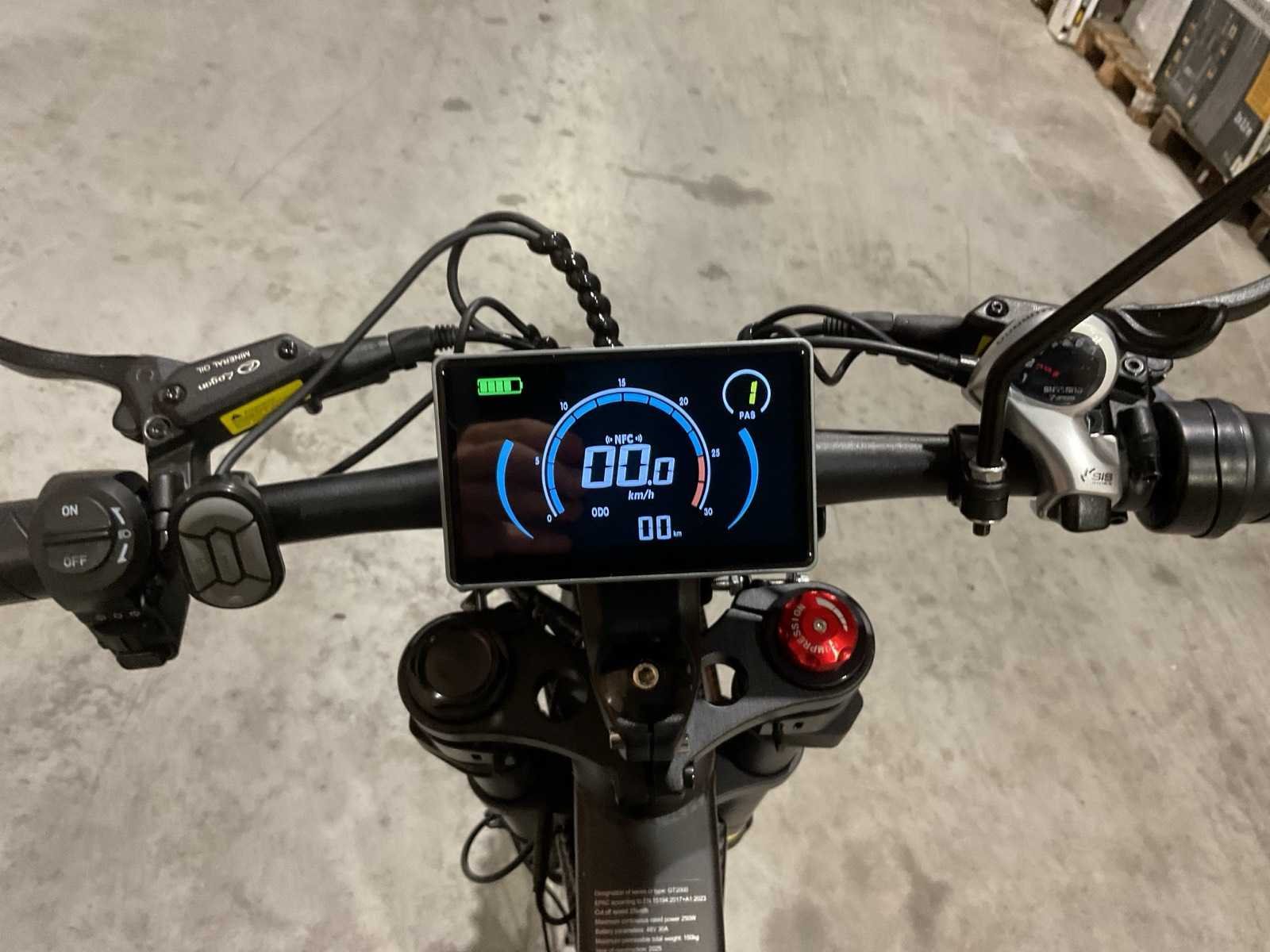 Voorzien van Nominaal motorvermogen: ca. 2000W; Accu: 48 V 30 Ah lithium-ion (verwisselbaar); Batterijcapaciteit: ca. 1440 Wh; topsnelheid: 25km/h; 19 inch wielen; schrijfremmen; Shimano 7-speed versnellingen; LCD-display; LED-koplamp, achterlicht; ongebruikt in doos Merk: Ouxi Model: GT2000 ZWART/ORANJE Product type: E-BIKE KING Remsysteem: Hydraulisch remsysteem Achtervering: true Voorvering: true Versnellingen: 7 Kleur: ZWART/ORANJE Gewicht: 64.5kg Lengte: 188cm Breedte: 63cm Hoogte: 115cm