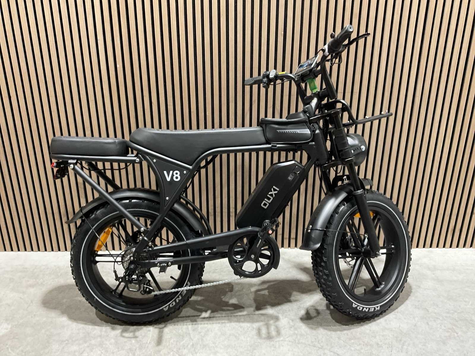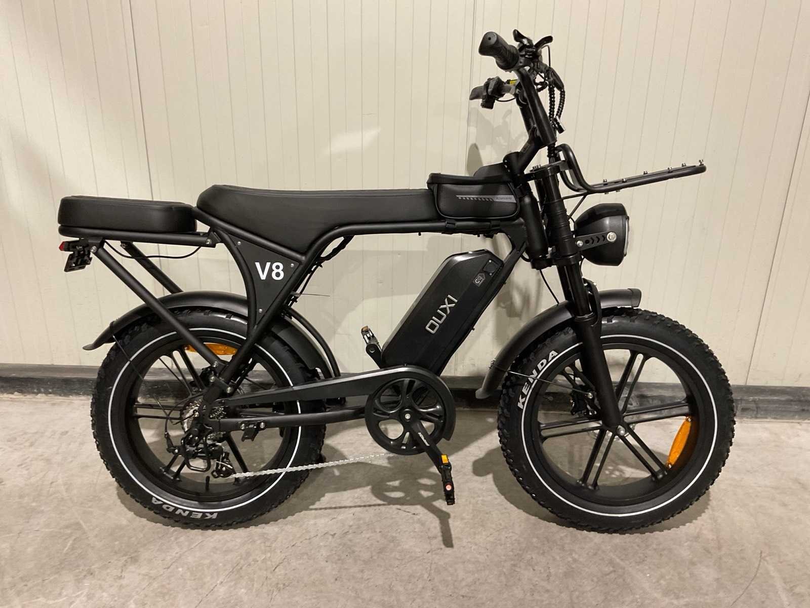 Voorzien van 250W motor; 25Km/u topsnelheid; 150 kg max. belasting; 48V verwijderbare lithium-ion accu; ca 5-7 uur Oplaadtijd; Hydraulische voorvorkvering; LCD display; Shimano 7-speed derailleur; Ongebruikt in doos Merk: Ouxi Model: V8 met rekje Product type: Zwart
