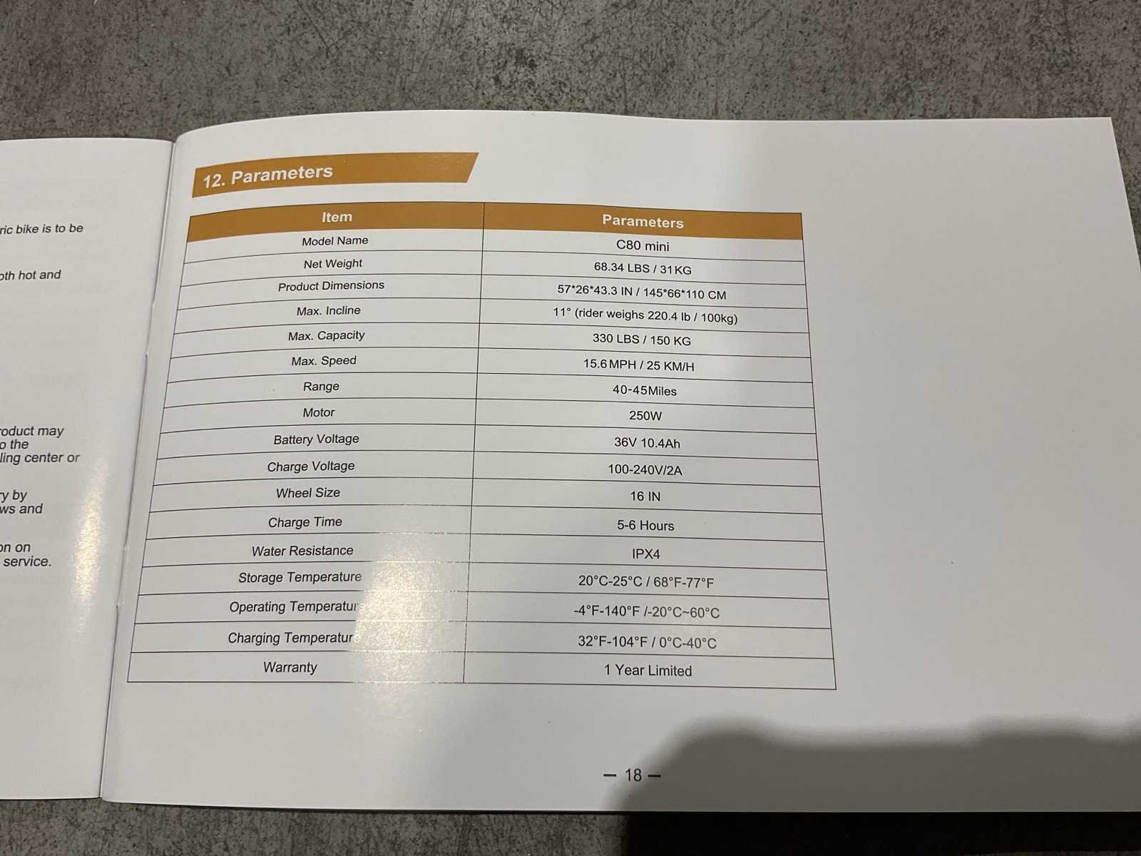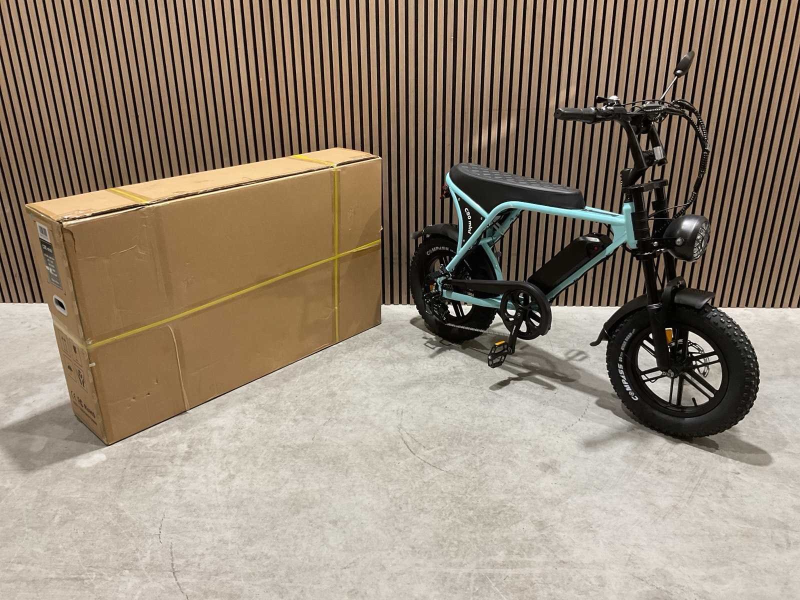 Voorzien van Aandrijving: Elektrisch met trapondersteuning; Motorvermogen: 250 W; Motortype: Borstelloze elektromotor; Max. ondersteunde snelheid: 25 km/u; Aandrijving: Achterwielmotor; Accu: 36V Lithium-ion; Accucapaciteit: 10.4 Ah; Laadspanning: 100–240 V / 2A; Wielmaat: 16 inch; Transport gewicht: 39kg; Ongebruikt in doos Merk: C80 Model: Mini Product type: Light blue