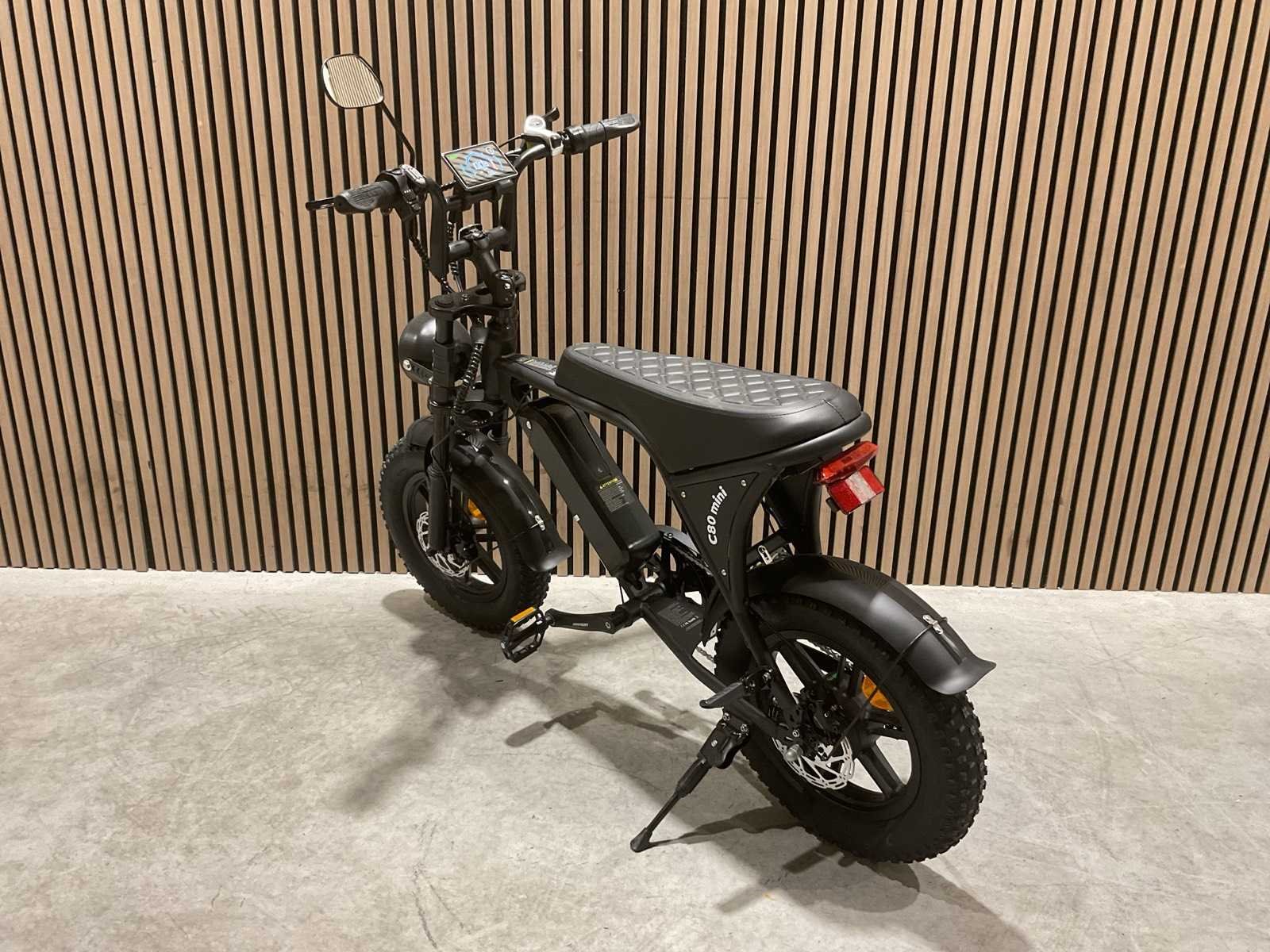Voorzien van Aandrijving: Elektrisch met trapondersteuning; Motorvermogen: 250 W; Motortype: Borstelloze elektromotor; Max. ondersteunde snelheid: 25 km/u; Aandrijving: Achterwielmotor; Accu: 36V Lithium-ion; Accucapaciteit: 10.4 Ah; Laadspanning: 100–240 V / 2A; Wielmaat: 16 inch; Transport gewicht: 39kg; Ongebruikt in doos Merk: C80 Model: Mini Product type: Black