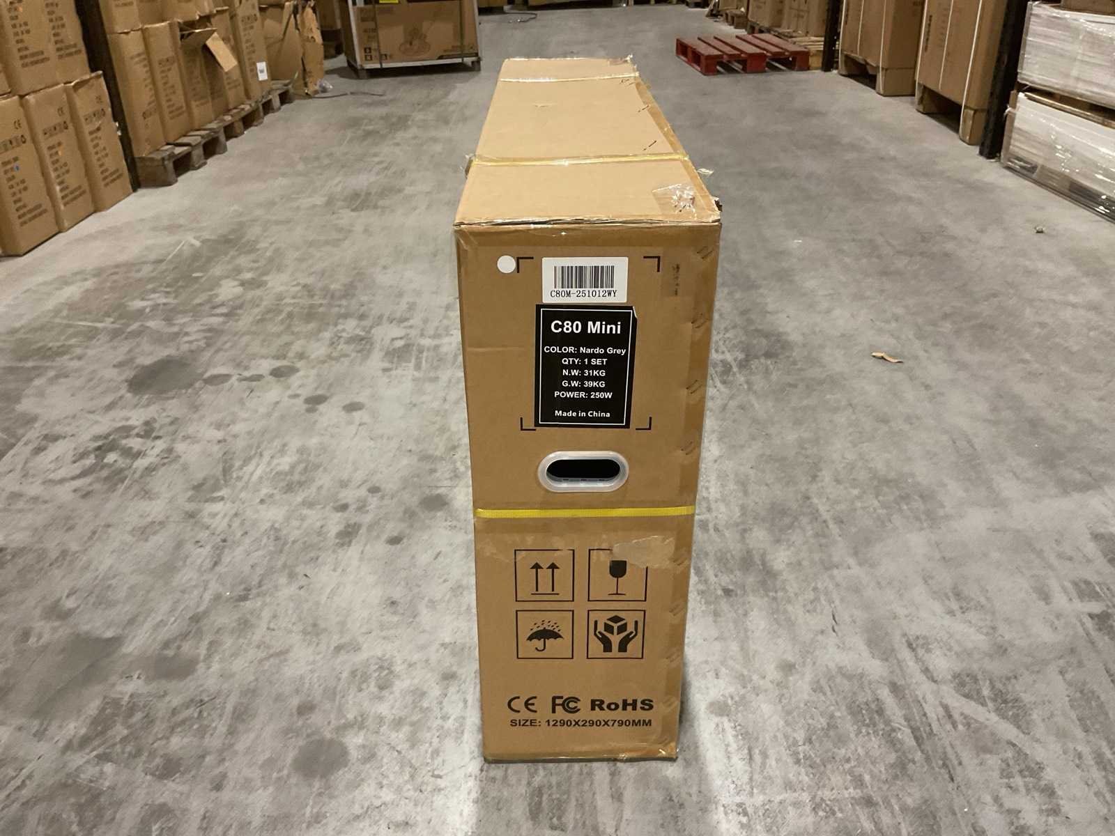 Voorzien van Aandrijving: Elektrisch met trapondersteuning; Motorvermogen: 250 W; Motortype: Borstelloze elektromotor; Max. ondersteunde snelheid: 25 km/u; Aandrijving: Achterwielmotor; Accu: 36V Lithium-ion; Accucapaciteit: 10.4 Ah; Laadspanning: 100–240 V / 2A; Wielmaat: 16 inch; Transport gewicht: 39kg; Ongebruikt in doos Merk: C80 Model: Mini Product type: Nardo Grey