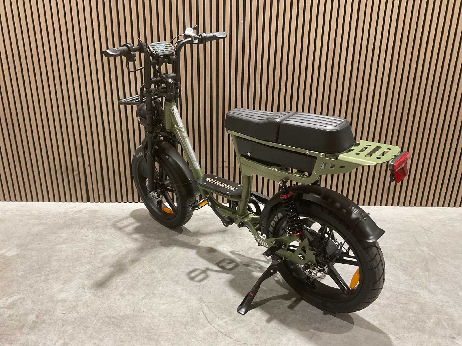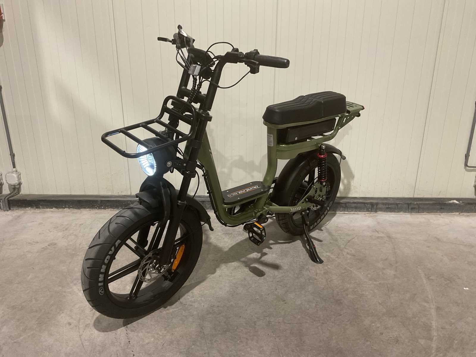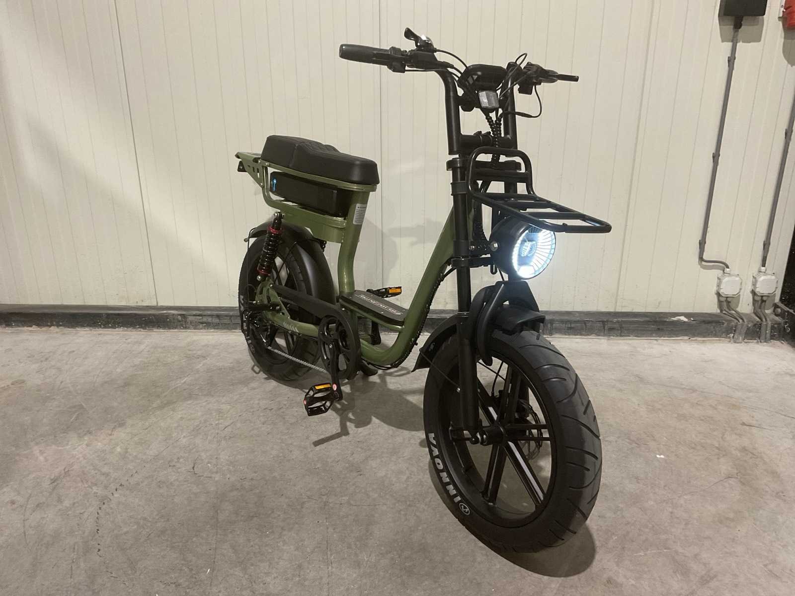 250W; Accu (Batterij) 48V/15Ah (of 15.6Ah); Maximumsnelheid 25 km/u (legaal in Nederland); Actieradius Ongeveer 60 km (gemiddelde ondersteuning); Hydraulische schijfremmen; Wielmaat 20 inch; Versnellingen 7 versnellingen; Frame Aluminium frame; Maximaal gewicht Tot 150 kg Merk: C28 Model: Groen
