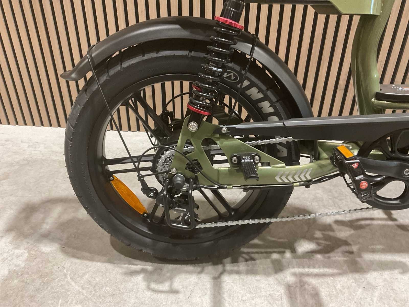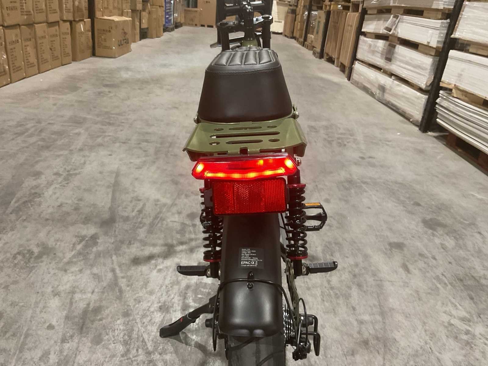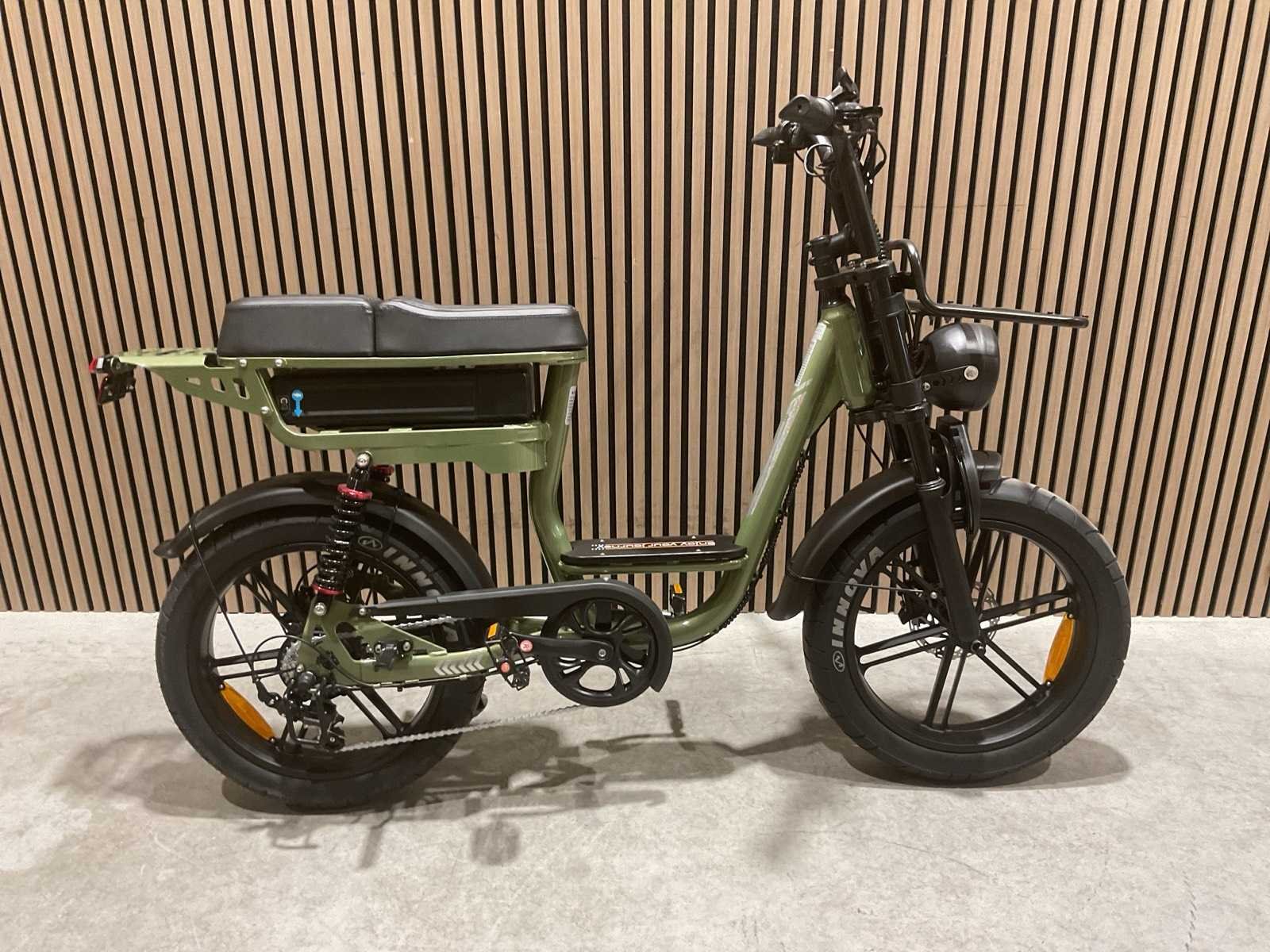 250W; Accu (Batterij) 48V/15Ah (of 15.6Ah); Maximumsnelheid 25 km/u (legaal in Nederland); Actieradius Ongeveer 60 km (gemiddelde ondersteuning); Hydraulische schijfremmen; Wielmaat 20 inch; Versnellingen 7 versnellingen; Frame Aluminium frame; Maximaal gewicht Tot 150 kg Merk: C28 Model: Groen