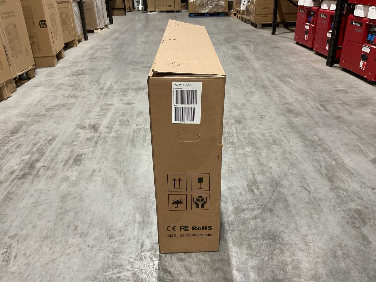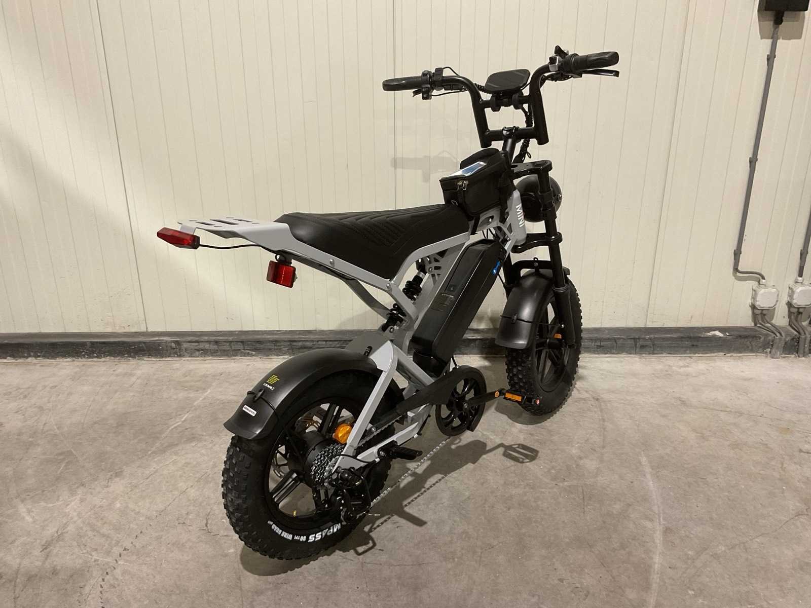 Voorzien van Elektrische aandrijving; Accu: 36V 13Ah; Lader: AC–DC 42V 2A; Ingangsspanning: 100–240V AC; Laadaansluiting: DC 5.5 × 2.1; Max. snelheid: 25 km/u; Max. draagvermogen: 150 kg; Schijfremmen; Bandmaat: 16 × 4.0 inch; Frame materiaal: Staal; Transport 1260x260x790 39,2 kg; Ongebruikt in doos Merk: V20 Model: Mini Product type: Grey Achtervering: true Voorvering: true Versnellingen: 7 Gewicht: 38.8kg Lengte: 143cm Breedte: 65cm Hoogte: 111cm
