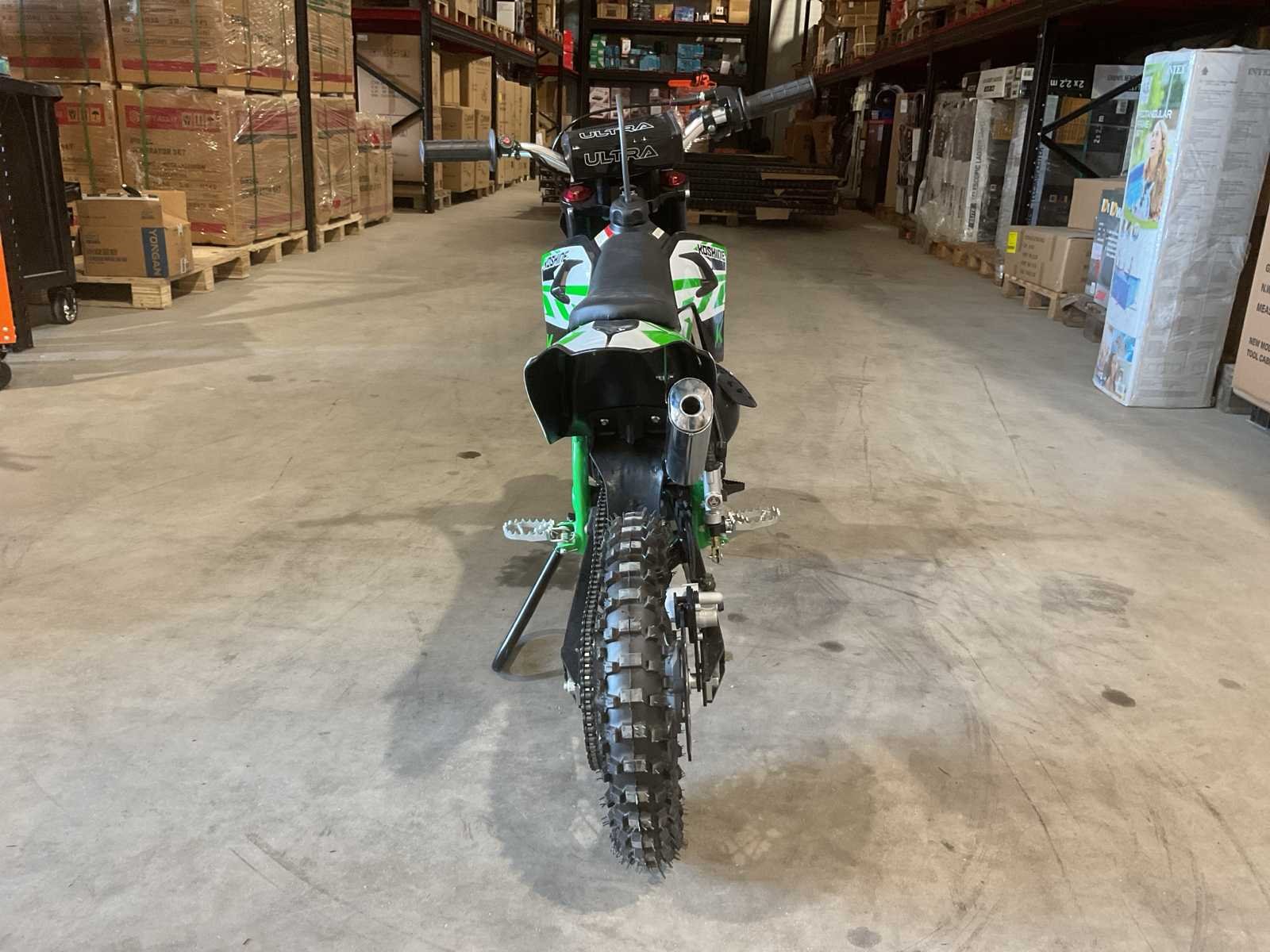 Voorzien van 50cc motor; 2 takt; 9 HP; hydraulische schijfremmen; bandenmaat voor 12” inch achter 10” inch; KTM look a like; ongebruikt in doos (transport afmetingen 115x40x65 cm 53kg) Merk: Ultra Motocross Type: Koshine 50cc 12/10” GR Brandstof: Benzine 2 Takt Cilinderinhoud: 50cc Gewicht: 46kg Kleur: Groen Transmissie: Automaat Aantal sleutels: 2 Bouwjaar: 2025