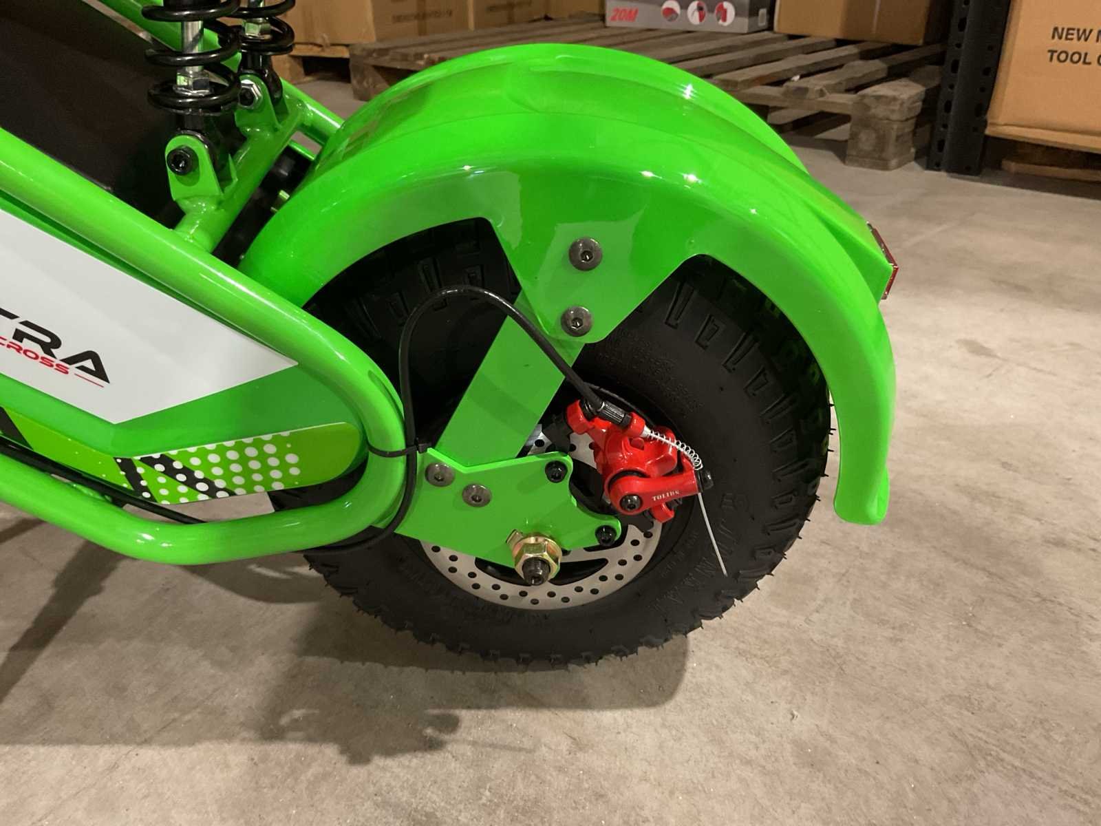 Voorzien van 48V 1000W motor; Led verlichting voor en achter; Led dashboard met kilometerteller; 3 snelheid standen; Topsnelheid circa 45kmh; Actieradius +-20km; Zadelhoogte: 62cm; Electromotor direct op het achterwiel!; Afmeting gemonteerd: 130x70x90cm (LxBxH); Maximaal toelaatbaar gewicht: 100KG; Ongebruikt in doos (Verzend afmetingen: 1200x320x640, gewicht 41kg) Merk: Ultra Motocross Model: Viper MUL TX 50 Type: GR Brandstof: Elektrisch Kleur: Groen Bouwjaar: 2025