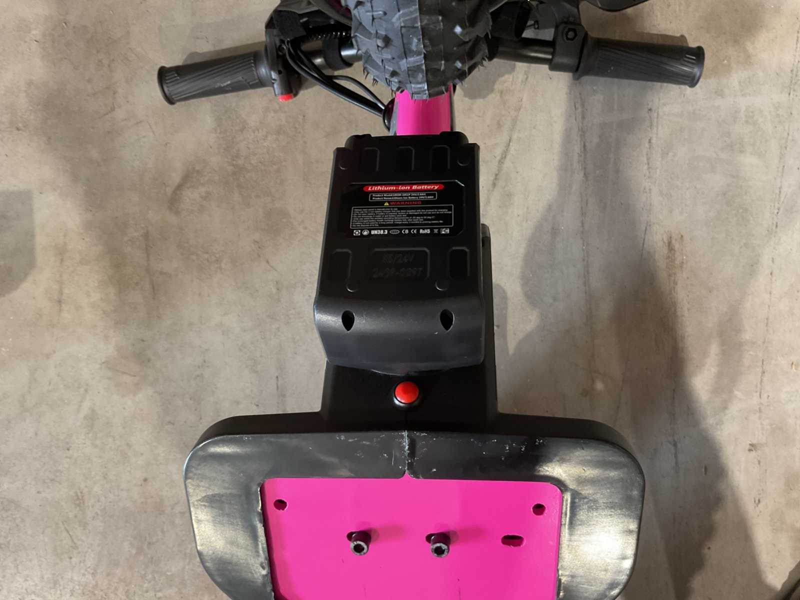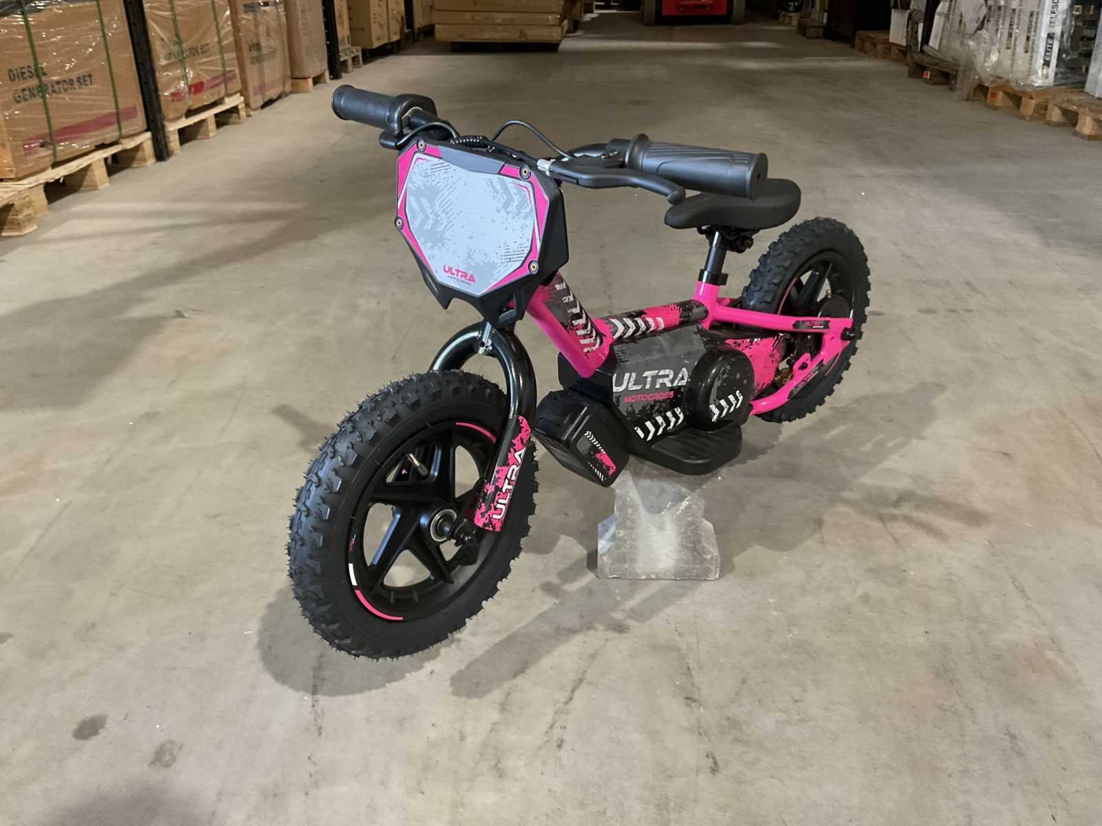 Voorzien van 200W elektrische motor; 2 verschillende snelheden; verstelbaar zadel; verwijderbare accu; bandenmaat 12” inch; ongebruikt in doos (transport afmetingen 90x25x45 cm) Merk: Ultra Motocross Product type: TRX200 RZ Kleur: Roze Gewicht: 10kg Lengte: 90cm Breedte: 25cm Hoogte: 45cm