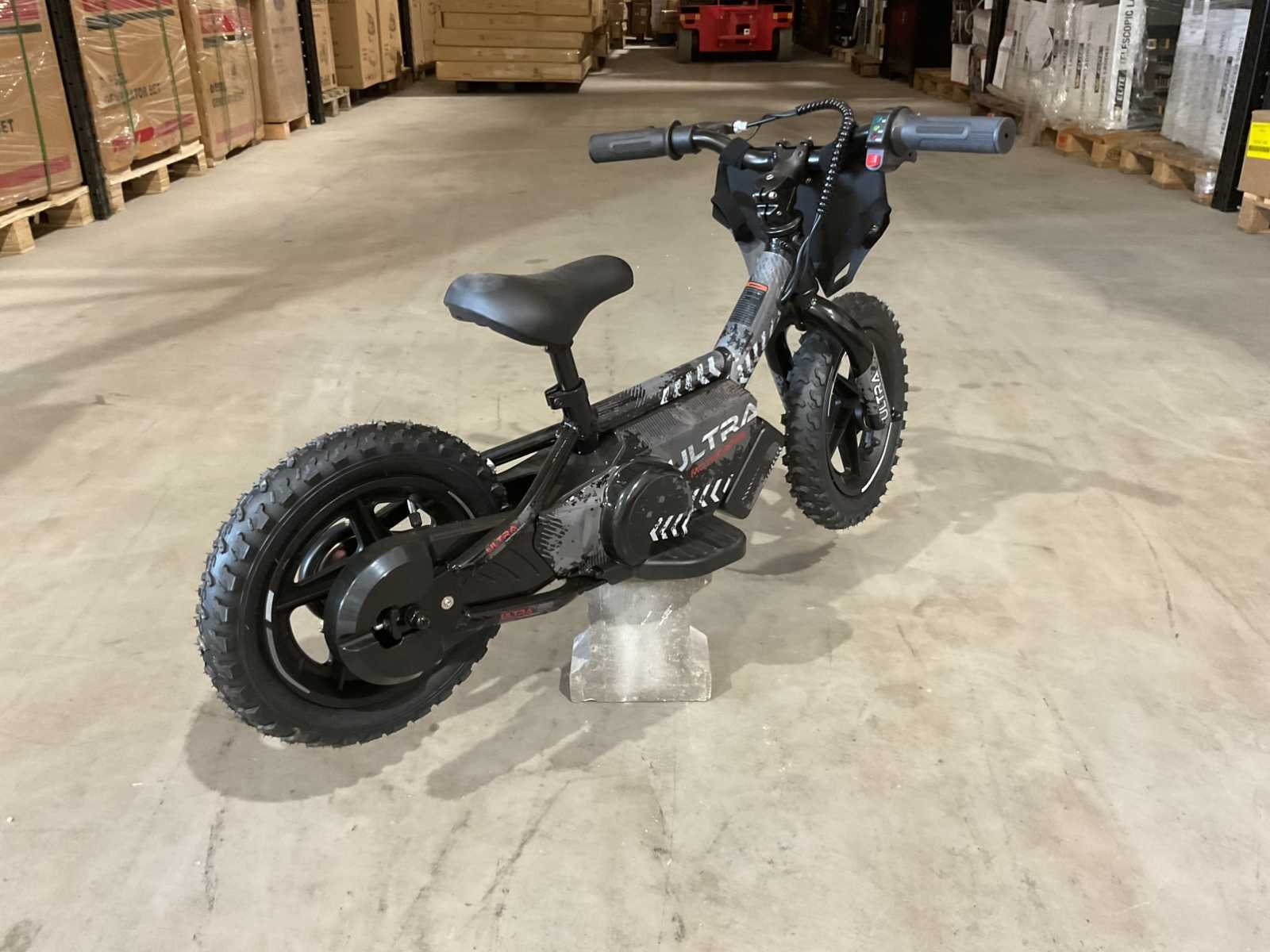 Voorzien van 200W elektrische motor; 2 verschillende snelheden; verstelbaar zadel; verwijderbare accu; bandenmaat 12” inch; ongebruikt in doos (transport afmetingen 90x25x45 cm) Merk: Ultra Motocross Product type: TRX200 ZW Kleur: Zwart Gewicht: 10kg Lengte: 90cm Breedte: 25cm Hoogte: 45cm