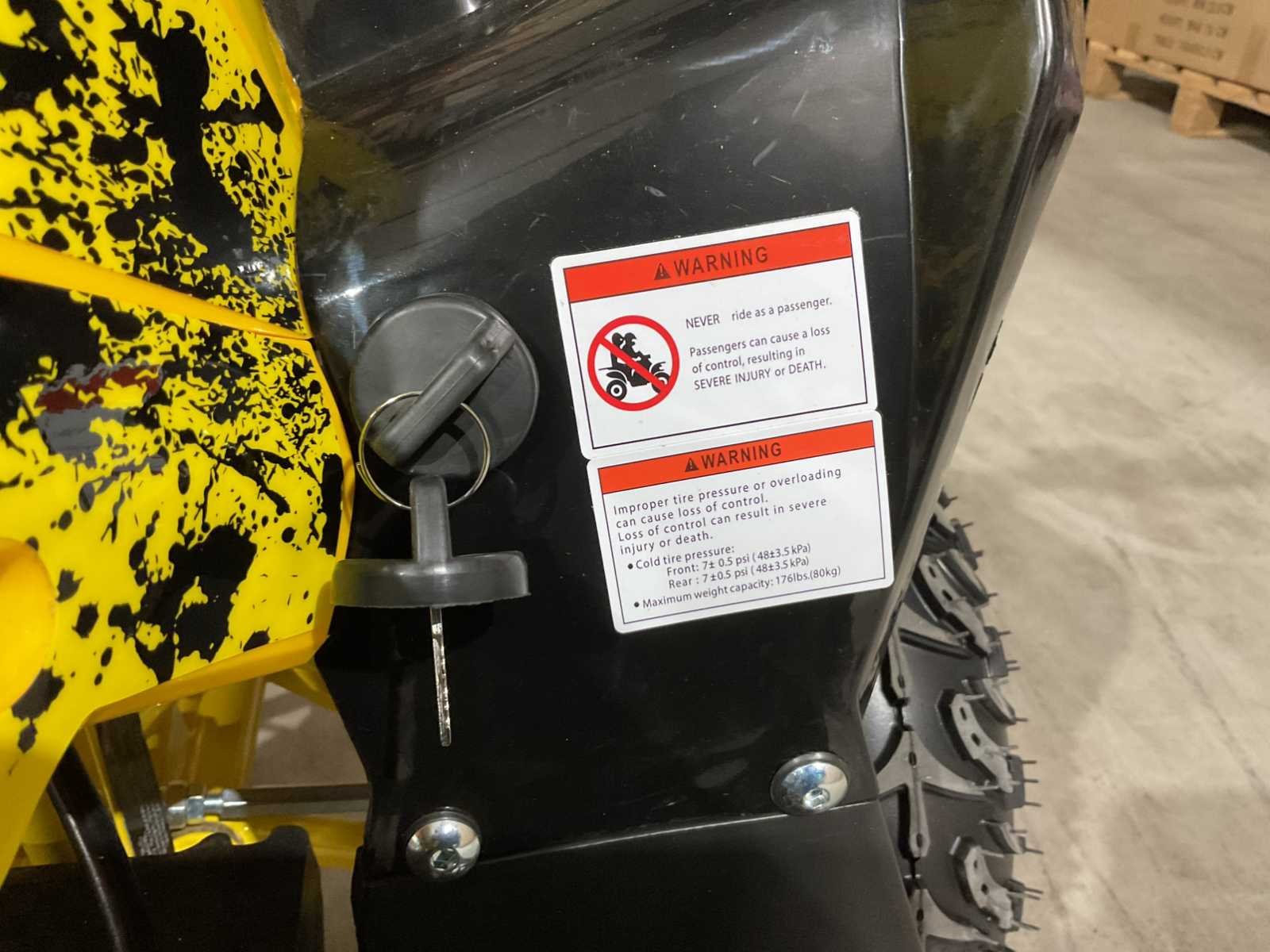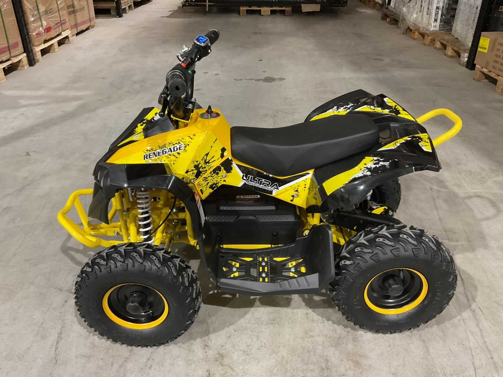 Voorzien van 1000W 48V elektrische motor; ouderen sleutel 3 verschillende snelheden; achterwielaandrijving; bandenmaat 6” inch; 2 sleutels; ongebruikt in doos (transport afmetingen 105x65x55 cm 59kg) Merk: Ultra Motocross Model: MA07E Product type: ATX 1000 GE Gewicht: 55kg Aantal sleutels: 2 Transmissie: Automaat Bouwjaar: 2025 Vermogen (kW): 1kW Brandstof: Elektrisch Kleur: Geel