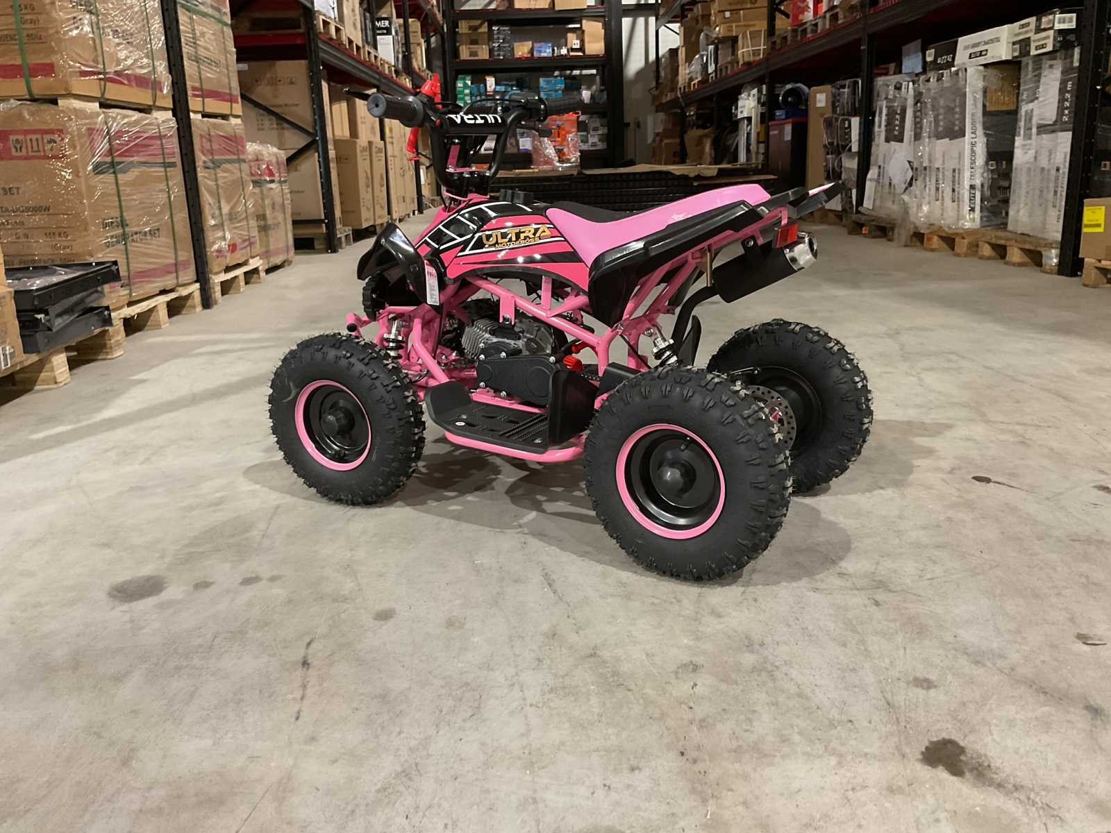 Voorzien van 49cc benzine motor; 2 takt; trek start; 3 verschillende snelheden; kill-switch; bandenmaat 6” inch; 2 sleutels; ongebruikt in doos (transport afmetingen 100x55x45 cm 36kg) Merk: Ultra Motocross Model: MA03 Product type: ATX 49 RZ Gewicht: 34kg Aantal sleutels: 2 Transmissie: Automaat Bouwjaar: 2025 Cilinderinhoud: 49cc Brandstof: Benzine 2 Takt Kleur: Roze