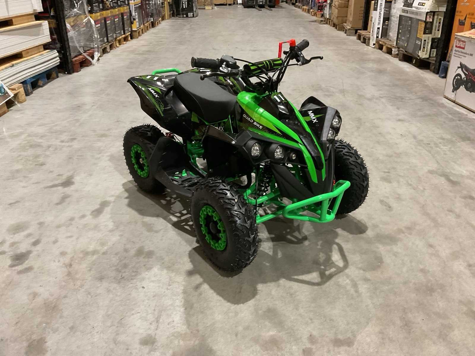 Voorzien van 49cc benzine motor; luchtgekoeld; trekstart; automaat; trekstart; schijfremmen; twee sleutels; ongebruikt in doos Merk: MMX Model: TWHHATV-008 Product type: Groen