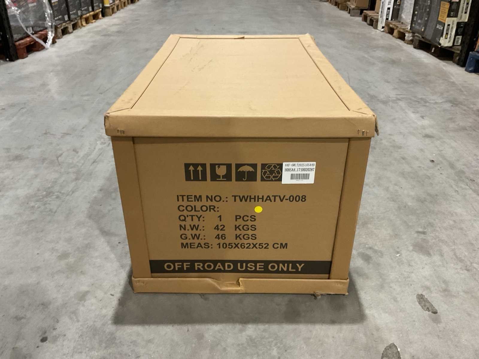 Voorzien van 49cc benzine motor; luchtgekoeld; trekstart; automaat; trekstart; schijfremmen; twee sleutels; Transport afmetingen: 105x62x52 cm; transport gewicht: 46kg; ongebruikt in doos Merk: MMX Model: TWHHATV-008 Product type: Geel Gewicht: 42kg Aantal sleutels: 2 Transmissie: Automaat Lengte: 120cm Breedte: 70cm Hoogte: 74cm