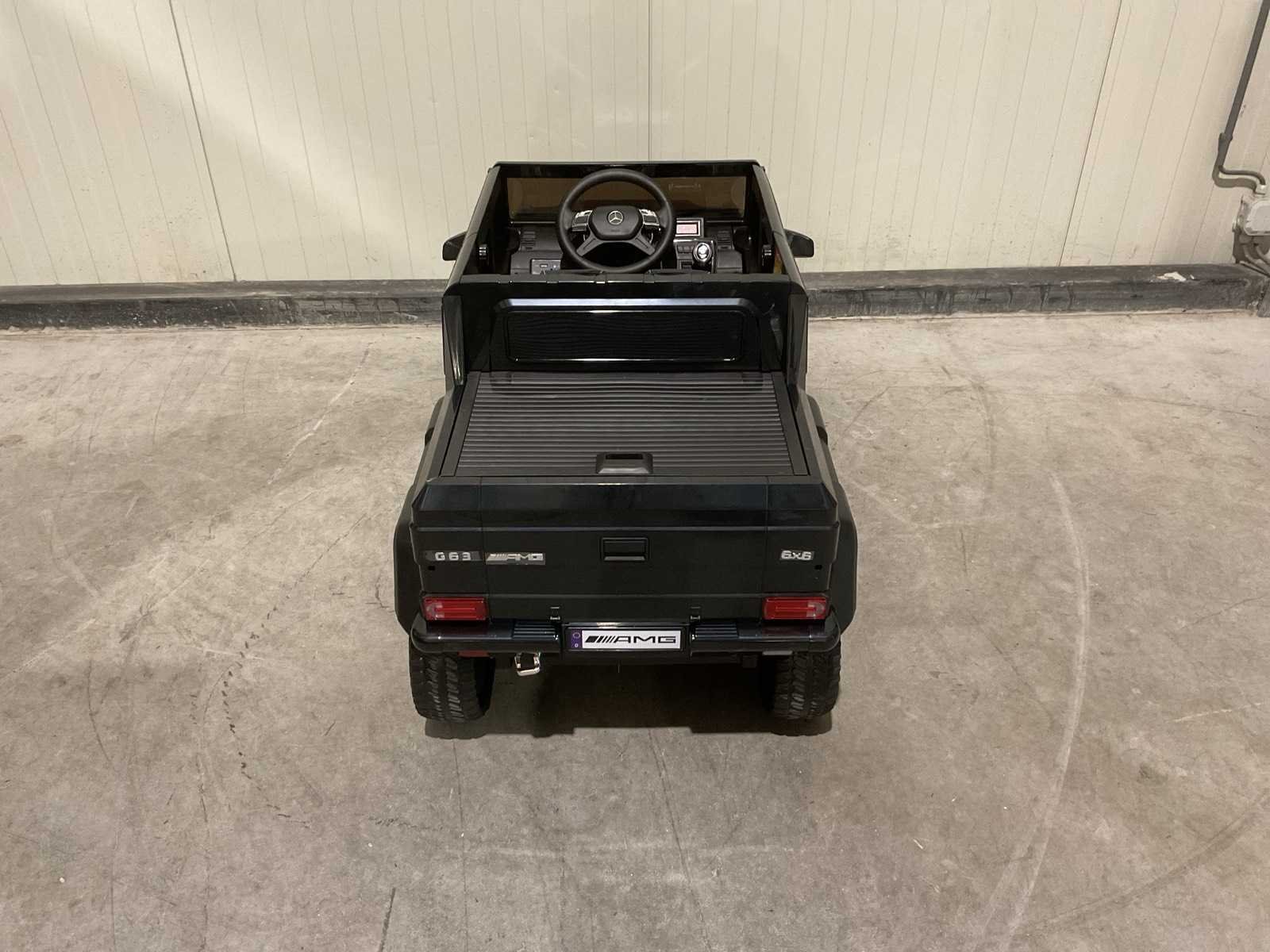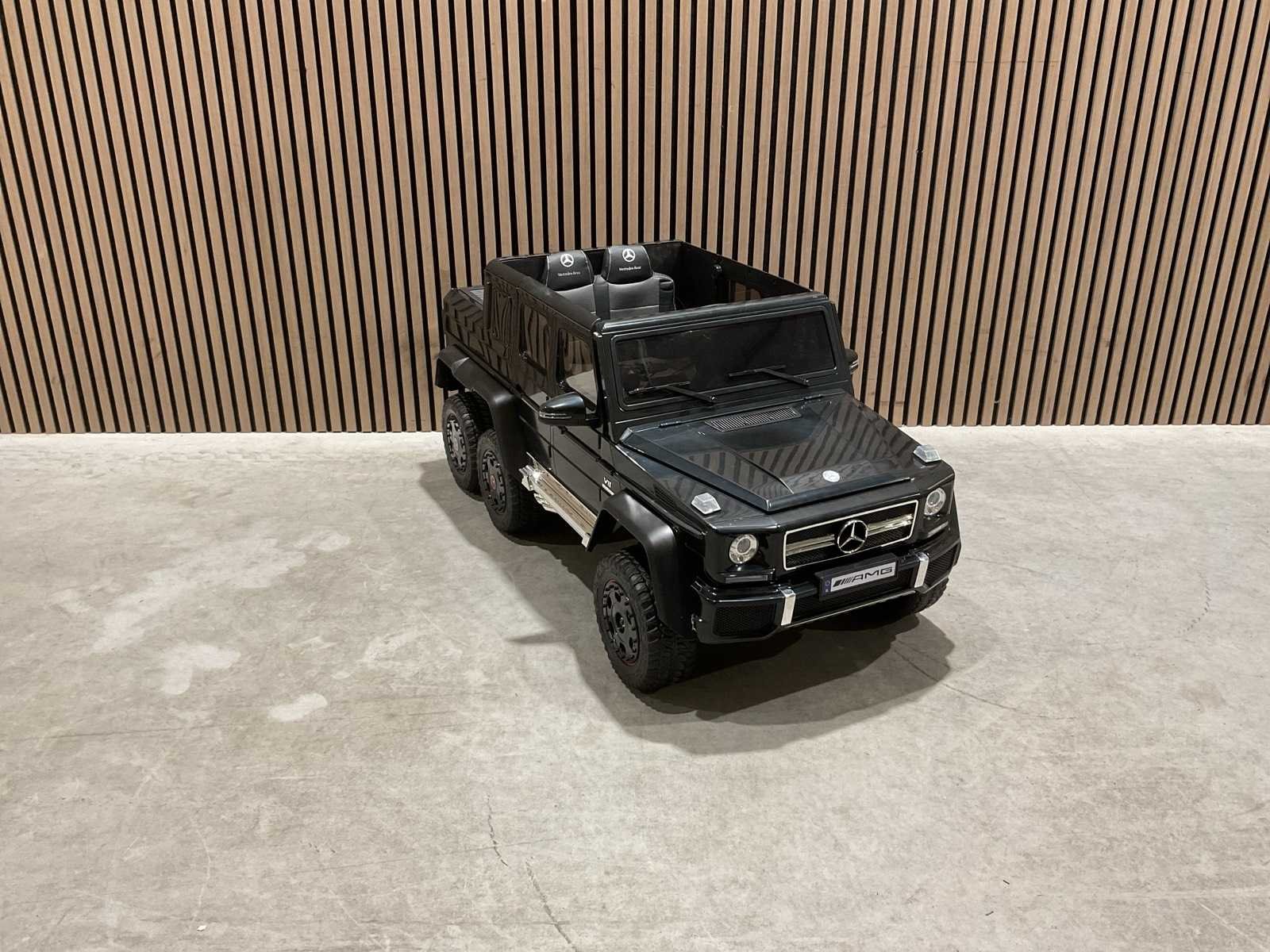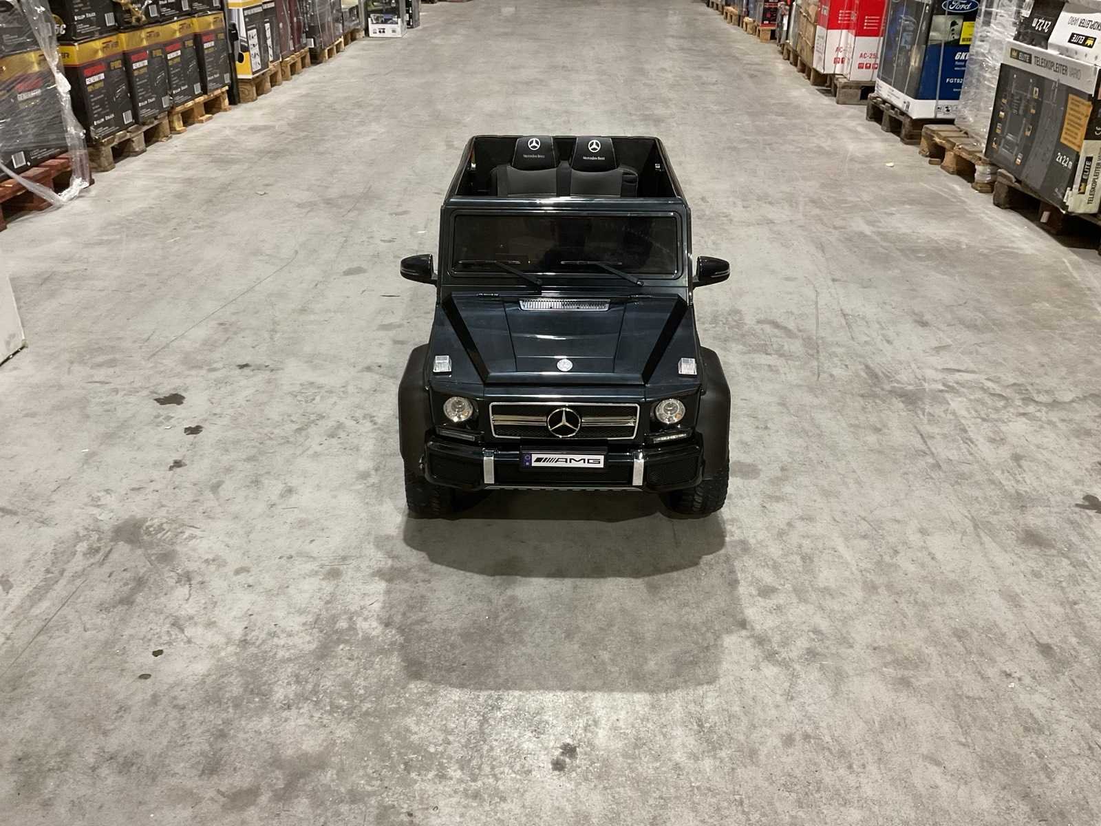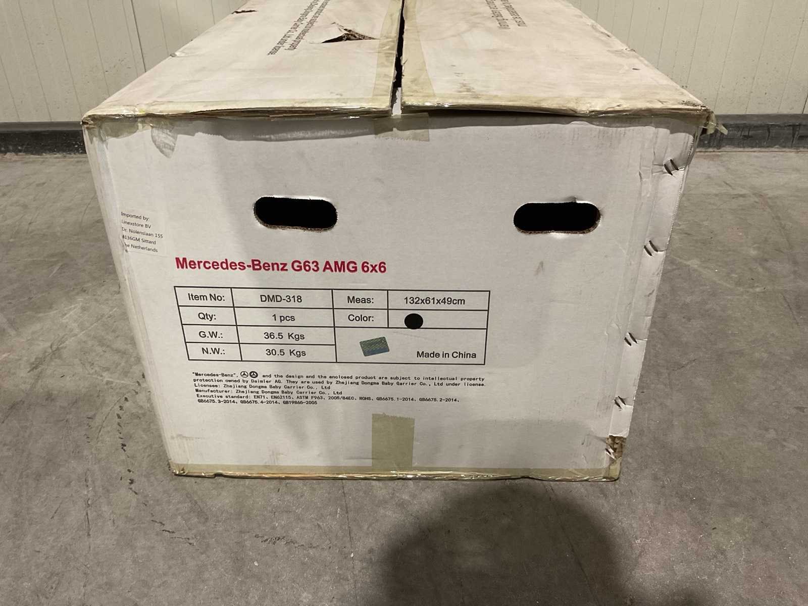 Voorzien van 1 zitplaats; Elektrische aandrijving; Banden: Kunststof banden met grof profiel; Stuur: Functioneel stuur; Design: Realistische G63 AMG 6×6 look; Afstandsbediening; Lichten; Geluidseffecten; Transport gewicht: 36.5 kg; Transport afmetingen: 132x61x49 cm; Ongebruikt in doos Merk: Mercedes Benz Model: DMD-318 Wit Product type: G63 AMG 6x6