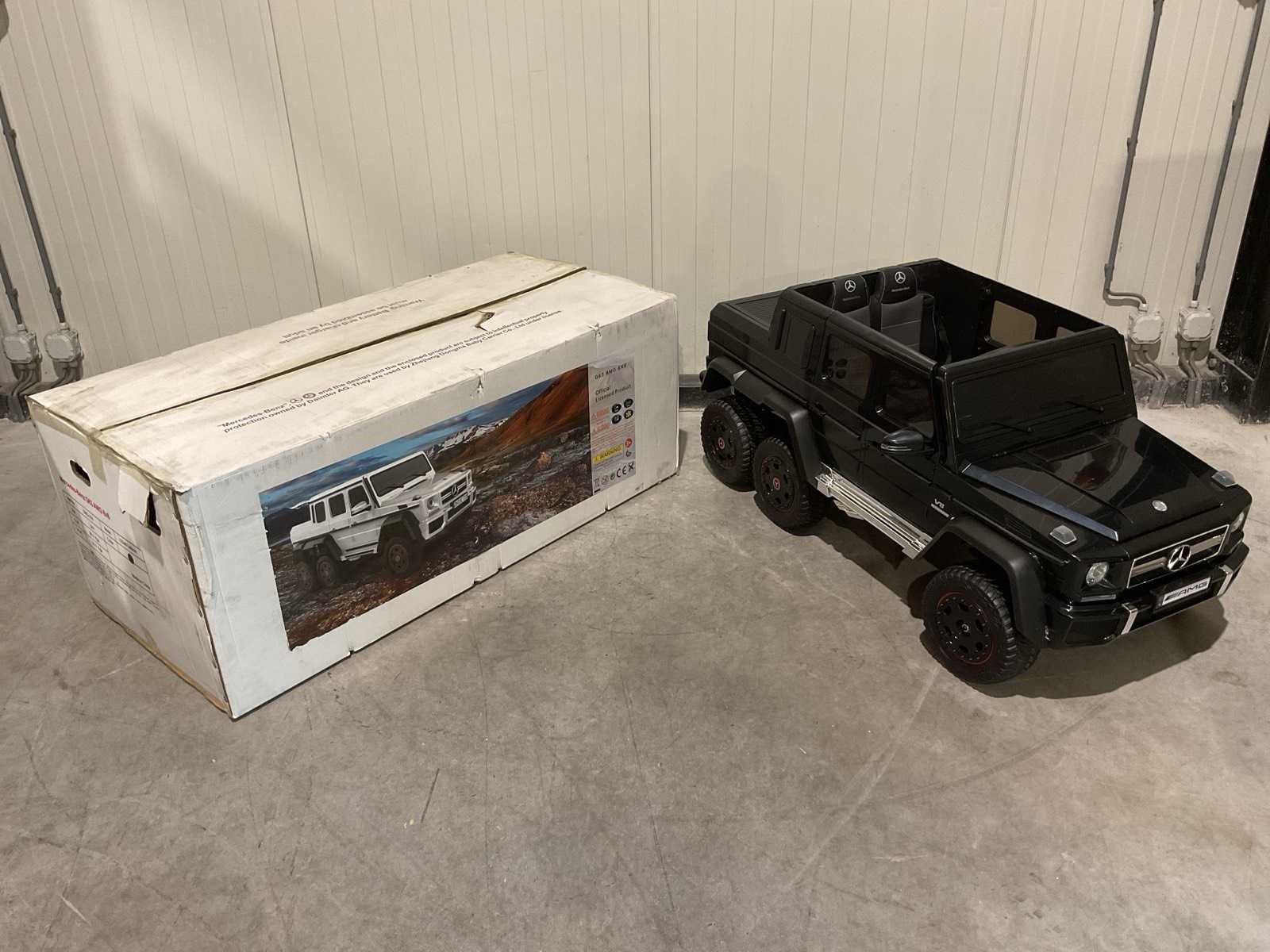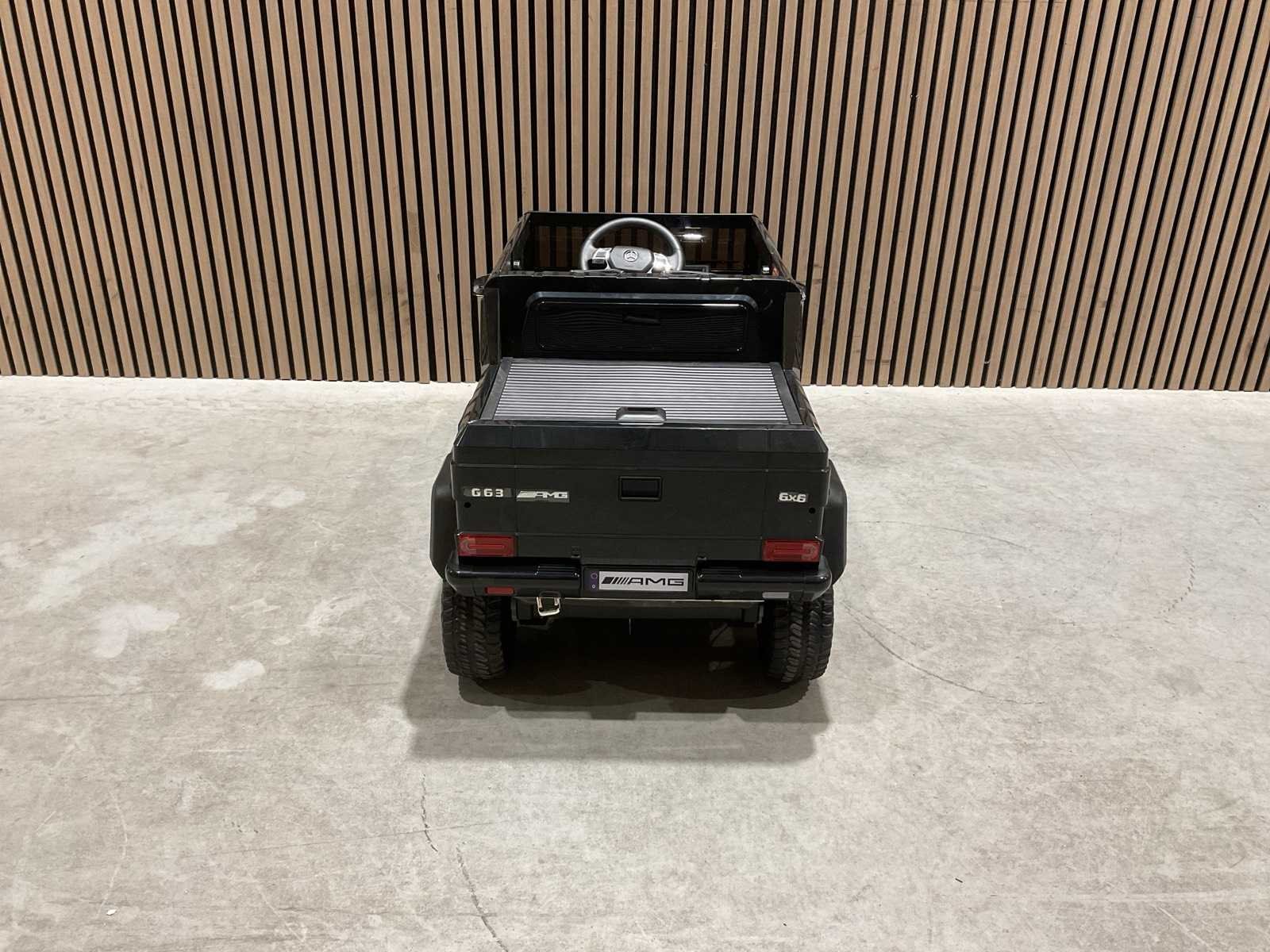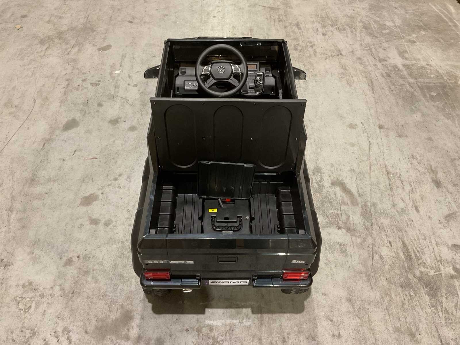 Voorzien van 1 zitplaats; Elektrische aandrijving; Banden: Kunststof banden met grof profiel; Stuur: Functioneel stuur; Design: Realistische G63 AMG 6×6 look; Afstandsbediening; Lichten; Geluidseffecten; Transport gewicht: 36.5 kg; Transport afmetingen: 132x61x49 cm; Ongebruikt in doos Merk: Mercedes Benz Model: DMD-318 Wit Product type: G63 AMG 6x6