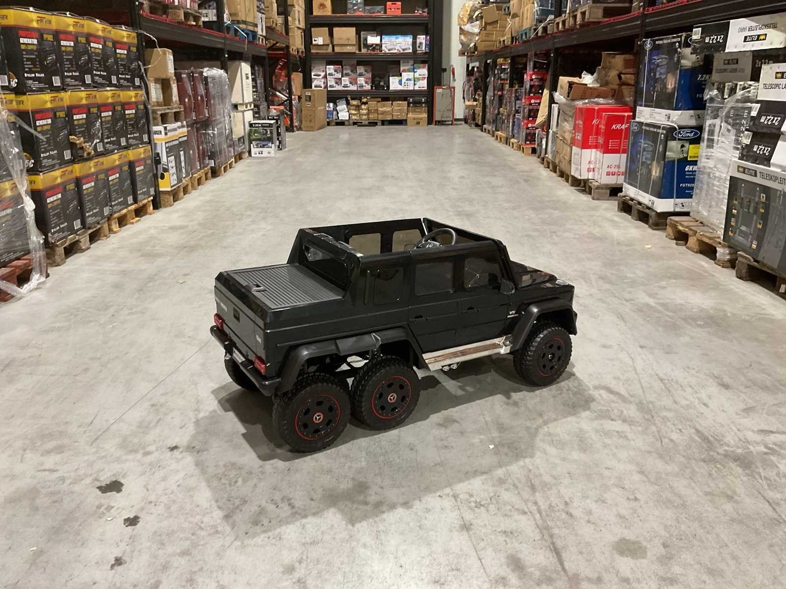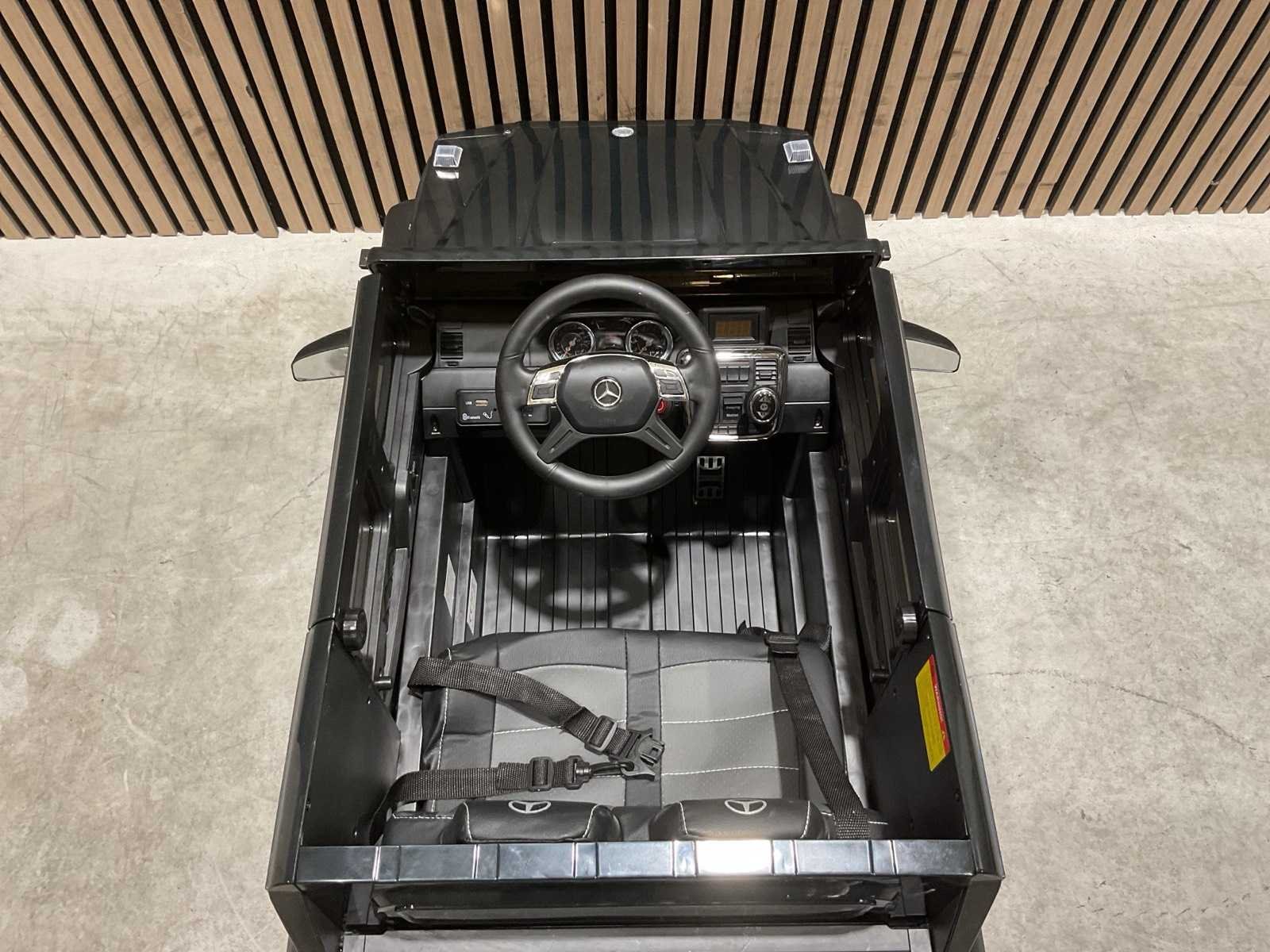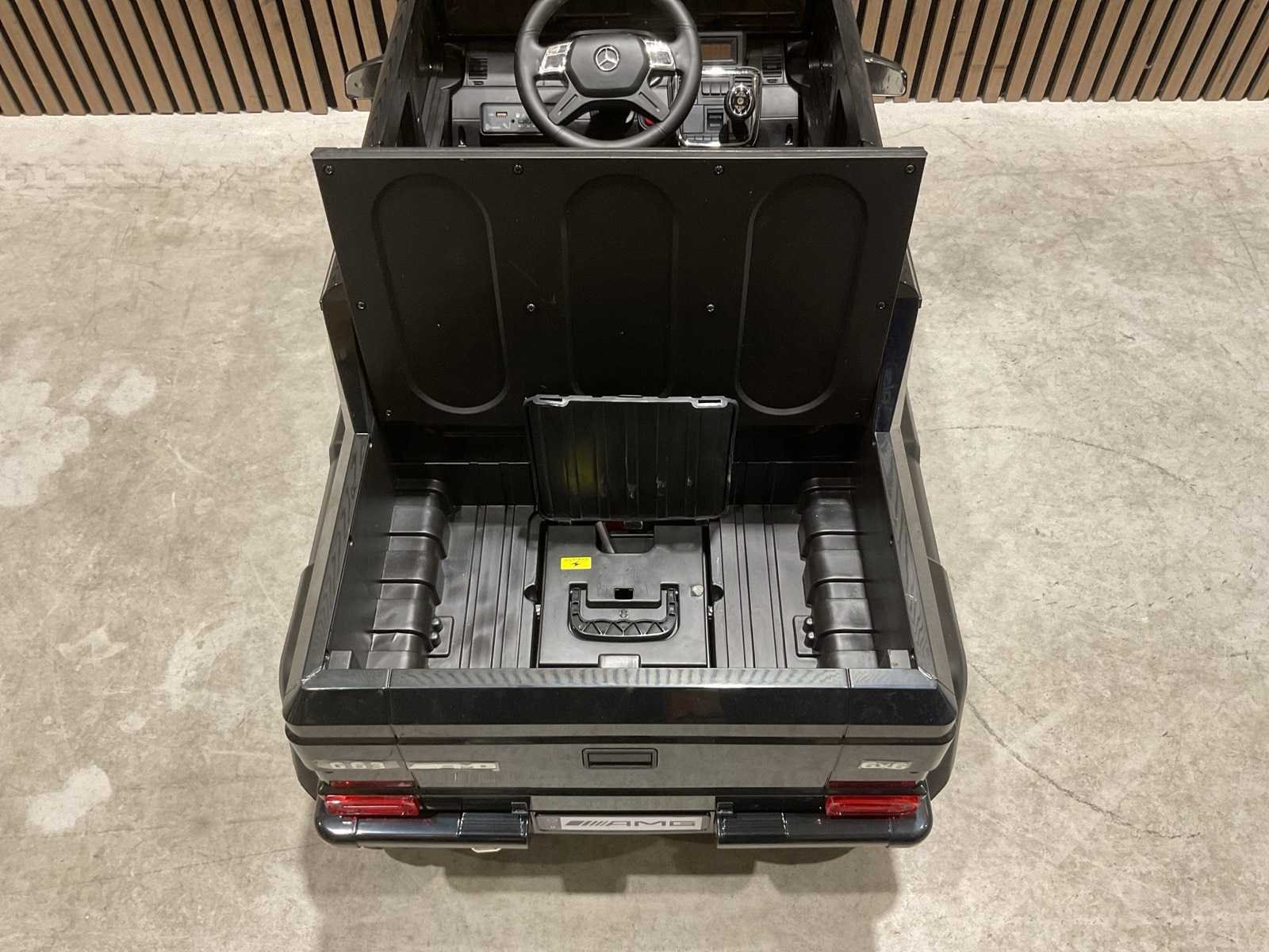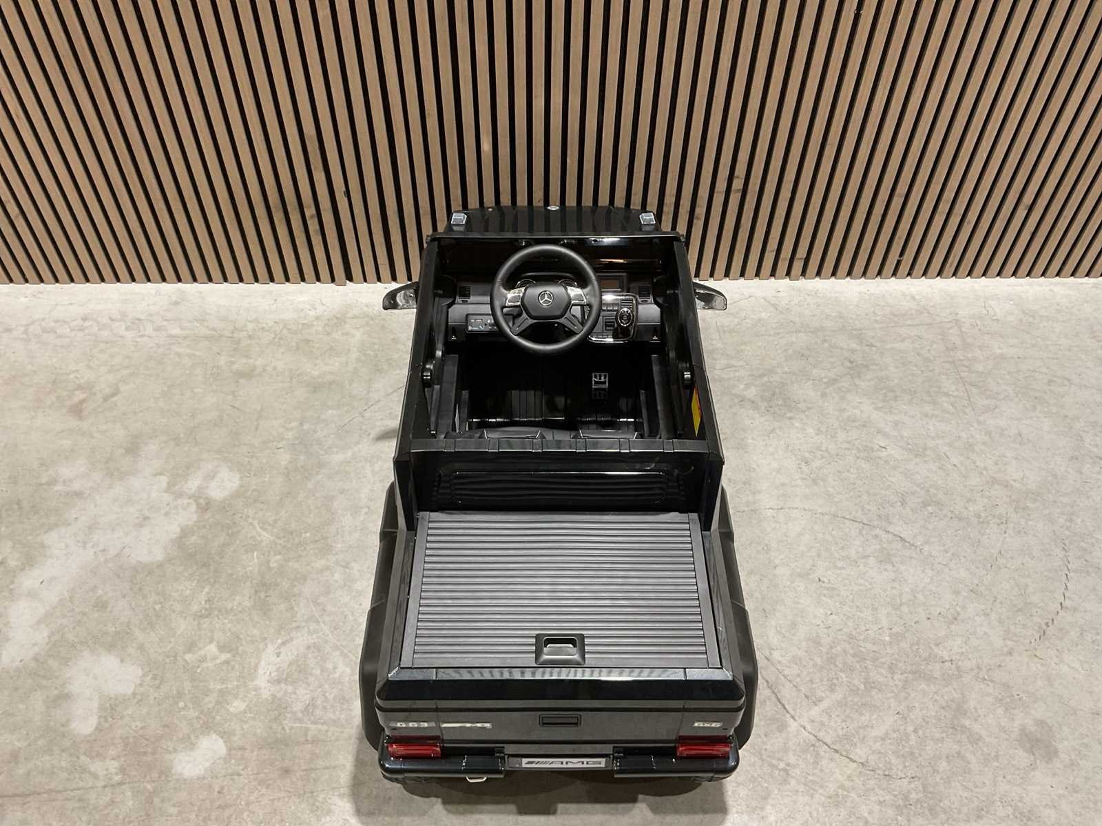 Voorzien van 1 zitplaats; Elektrische aandrijving; Banden: Kunststof banden met grof profiel; Stuur: Functioneel stuur; Design: Realistische G63 AMG 6×6 look; Afstandsbediening; Lichten; Geluidseffecten; Transport gewicht: 36.5 kg; Transport afmetingen: 132x61x49 cm; Ongebruikt in doos Merk: Mercedes Benz Model: DMD-318 Wit Product type: G63 AMG 6x6