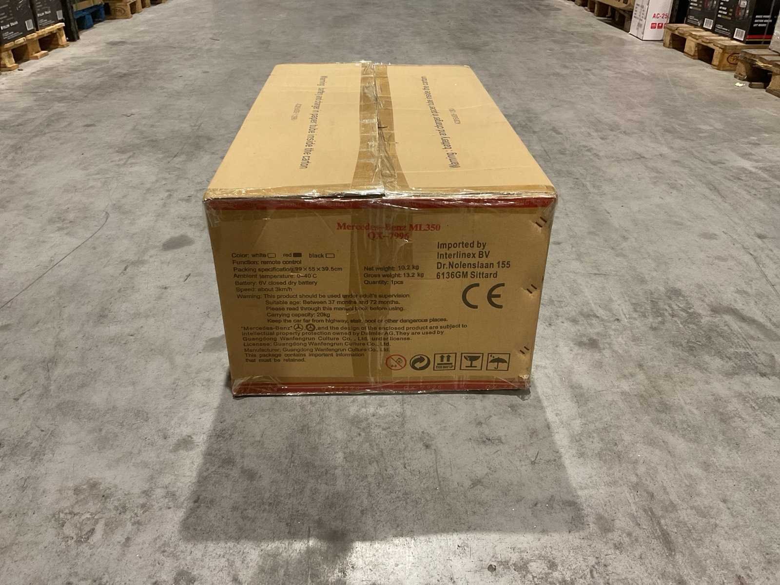 Voorzien van Zitplaatsen:Aandrijving: Elektrisch (accu-aangedreven); Accu: 6V gesloten droge accu; Capaciteit: 1 persoon; Materiaal: Kunststof; Verlichting; Geluidseffecten; Afstandsbediening; Voetpedaal; Draagvermogen: Max. 20 kg; Geschikte leeftijd: 37 tot 72 maanden; Transport gewicht: 13.2 kg; Transport afmetingen: Afmetingen verpakking: 99 × 55 × 39,5 cm; Ongebruikt in doos Merk: Mercedes Model: QX-7996 Rood Product type: ML350