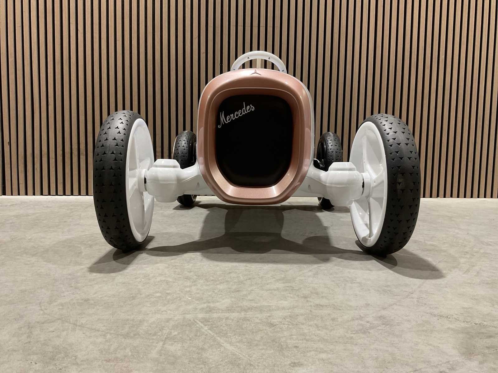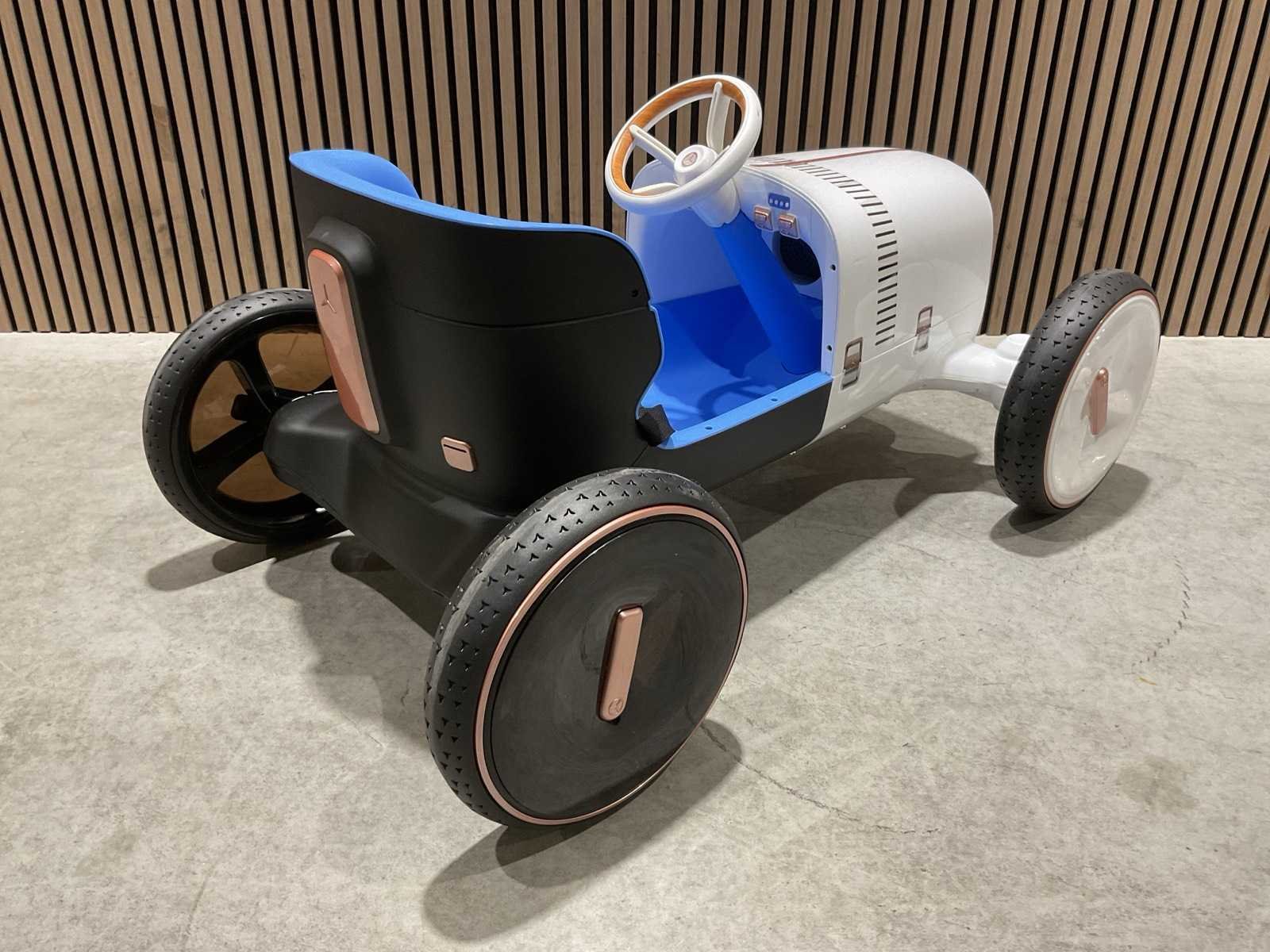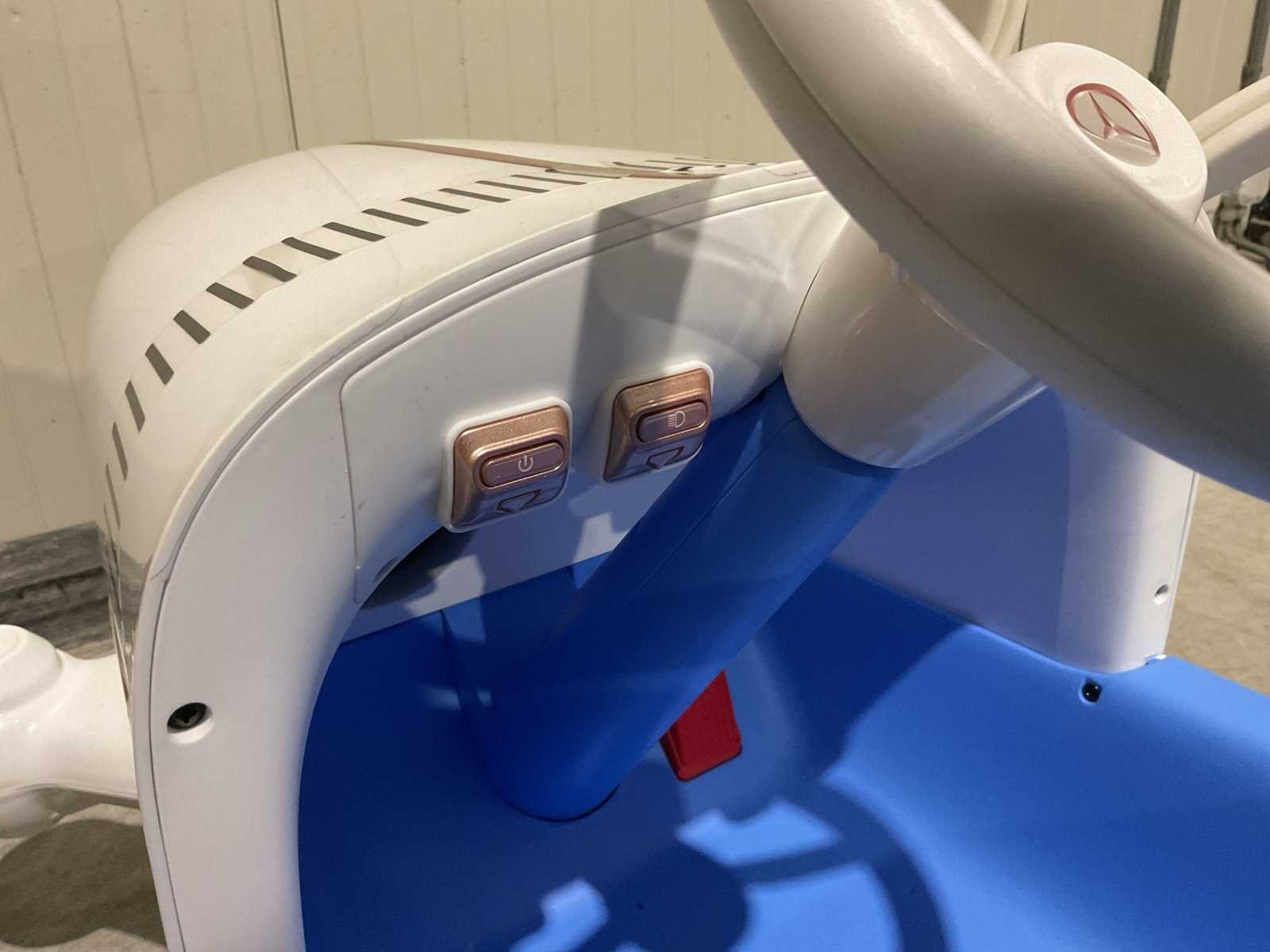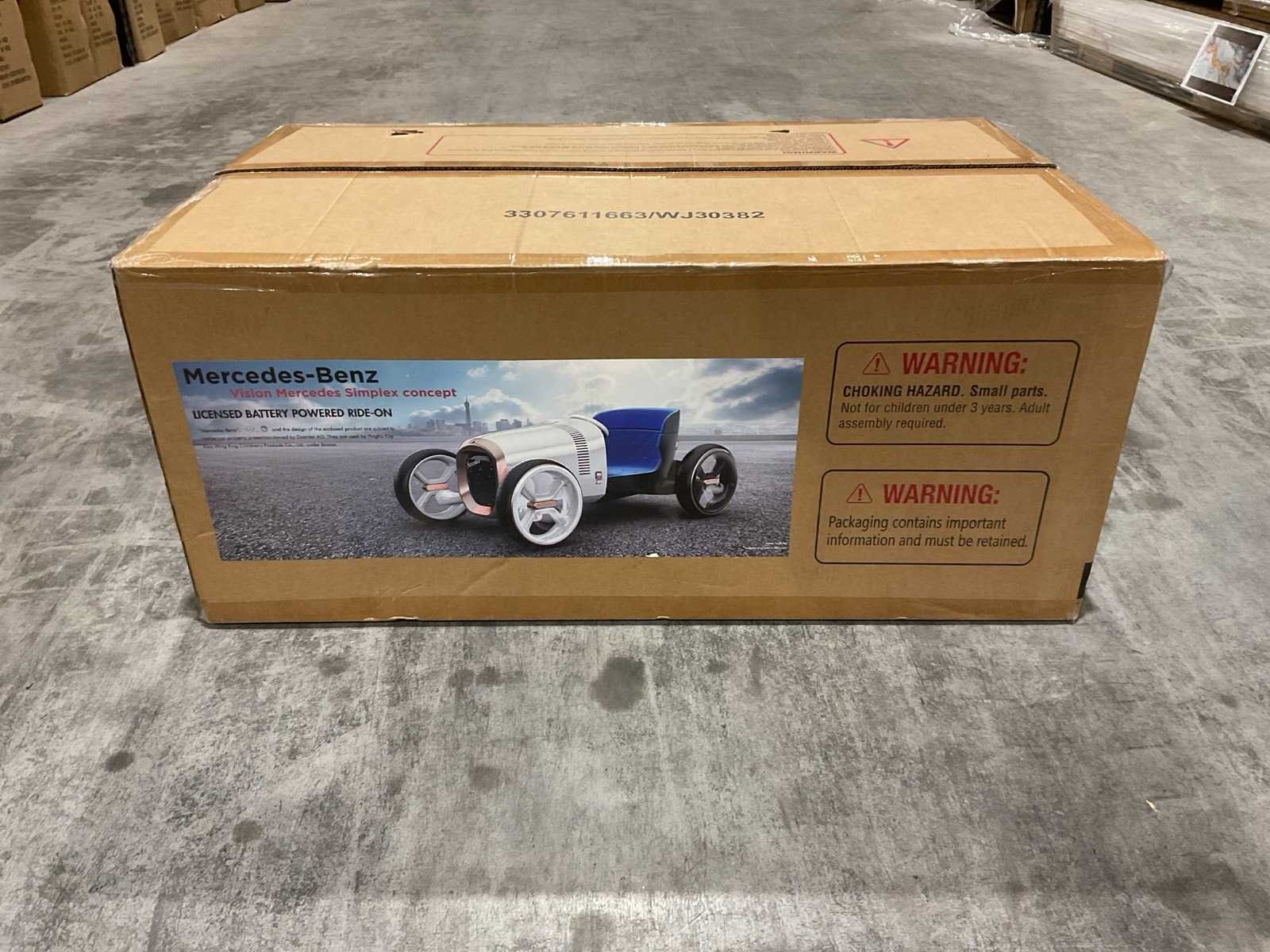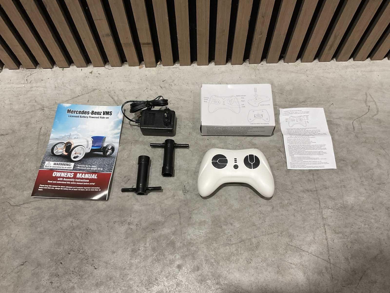 Voorzien van Elektrische motor; 12V voltage; radio; voetpedaal; Afstandsbediening; Rubbere banden; Maximaal belastbaar gewicht: 50kg; Transport gewicht: 21.5; Transport afmetingen: 103x61x44 cm; Ongebruikt in doos Merk: Mercedes-benz Product type: XMX620 Model: Vision Mercedes Simplex Concept