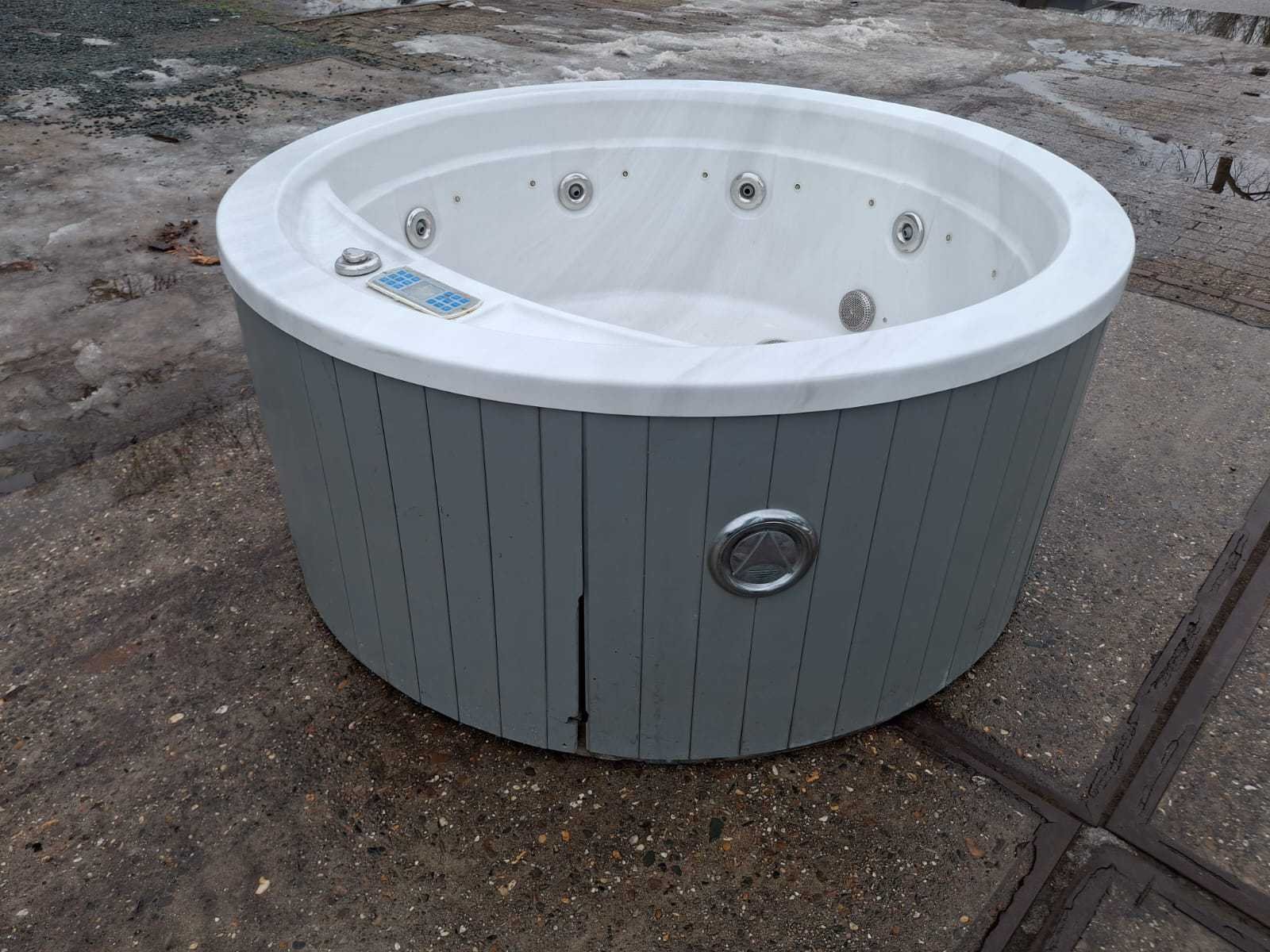 Voorzien van cover; Niet getest op functioneren (Marge, geen BTW) Model: 4 persoons Verlichting: Ja Jets: 6 Aantal personen: 4 Lengte: 150cm Breedte: 150cm Hoogte: 69cm
