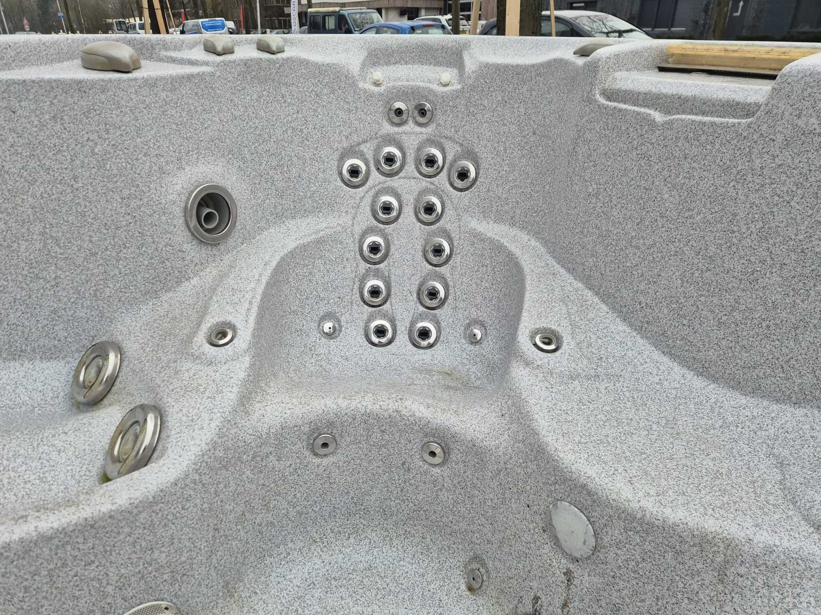 Voorzien van Amerikaanse jacuzzi; nek/schouder massage; 1 lig plaats; 3 zit plaatsen; automatisch filtersysteem; 2 watervallen; kunststof omkasting; niet getest op functioneren (Marge, geen BTW) Merk: Sundance Spa Model: 4 persoons Verlichting: Ja Jets: 51 Aantal personen: 4 Lengte: 270cm Breedte: 230cm Hoogte: 108cm
