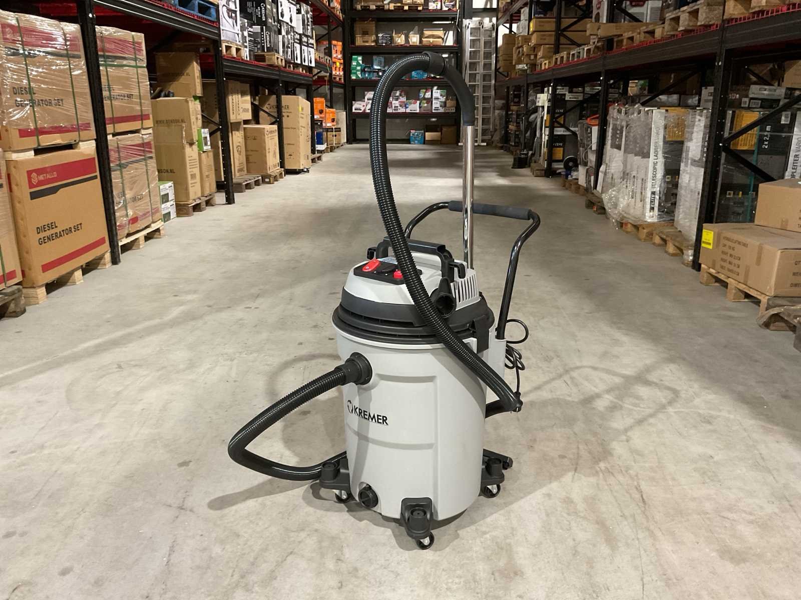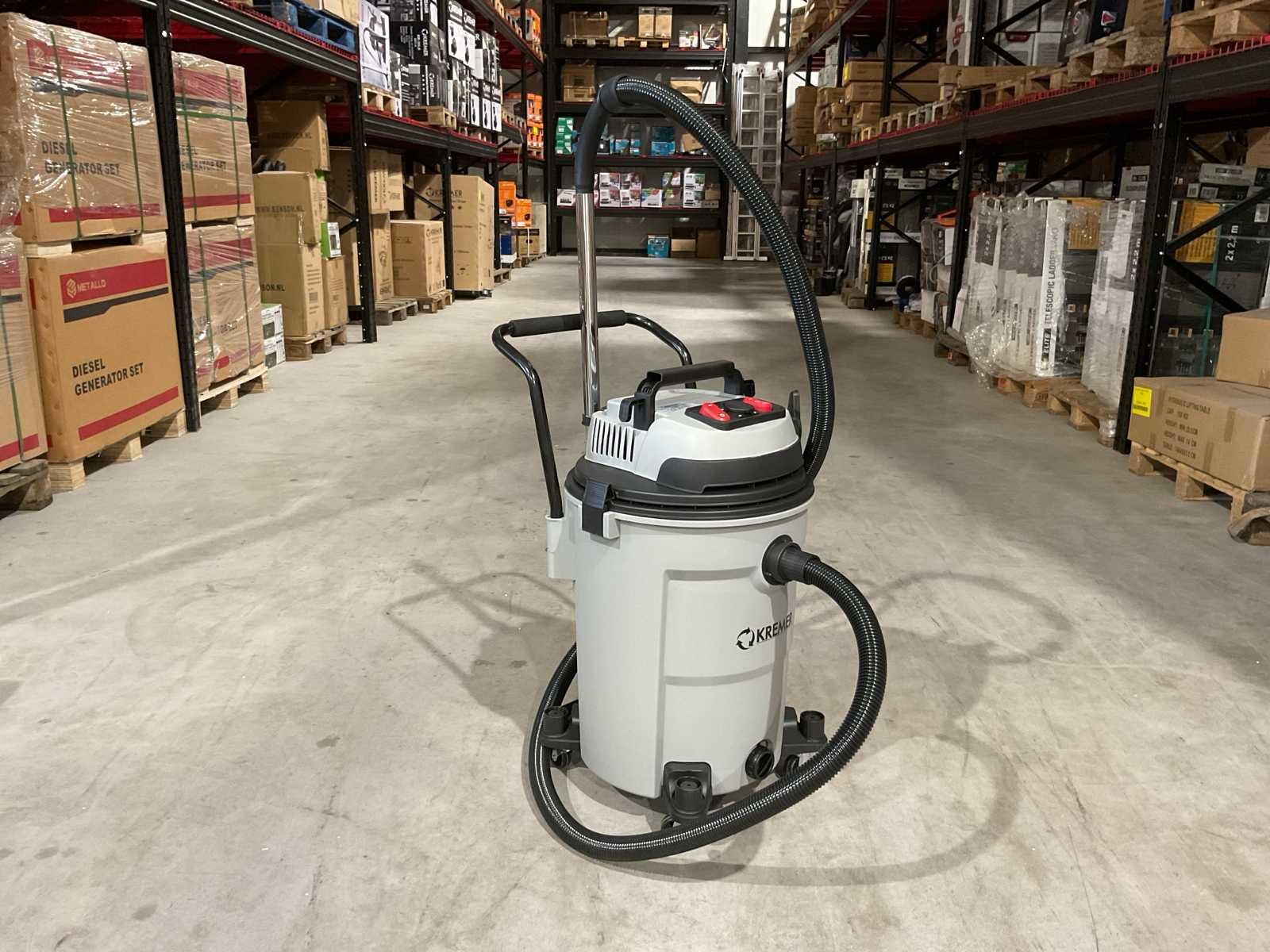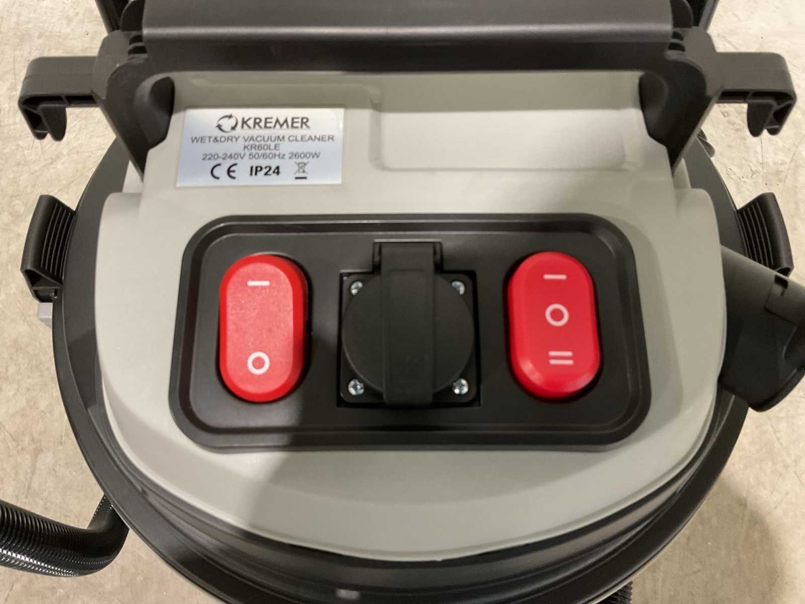 Voorzien van; 4 zwenkwielen; Nat- en droog stofzuiger; Inhoud 60 Liter; Kunststof ketel; 2 Motoren onafhankelijk; 3400W; Blaasfunctie; Stekkerdoos; Stofzuiger slang; Externe machine start; Aflaat dop; 12,5 kg; Ongebruikt in doos (Afmeting transport verpakking 485 x 460 x 745 mm 14,3 kg) Merk: Kremer Type: KR60LE Bouwjaar: 2025 Vermogen: 2600W Zakloos: true Nat/droog zuiger: true Stopcontact: true Aansluiting: 220V