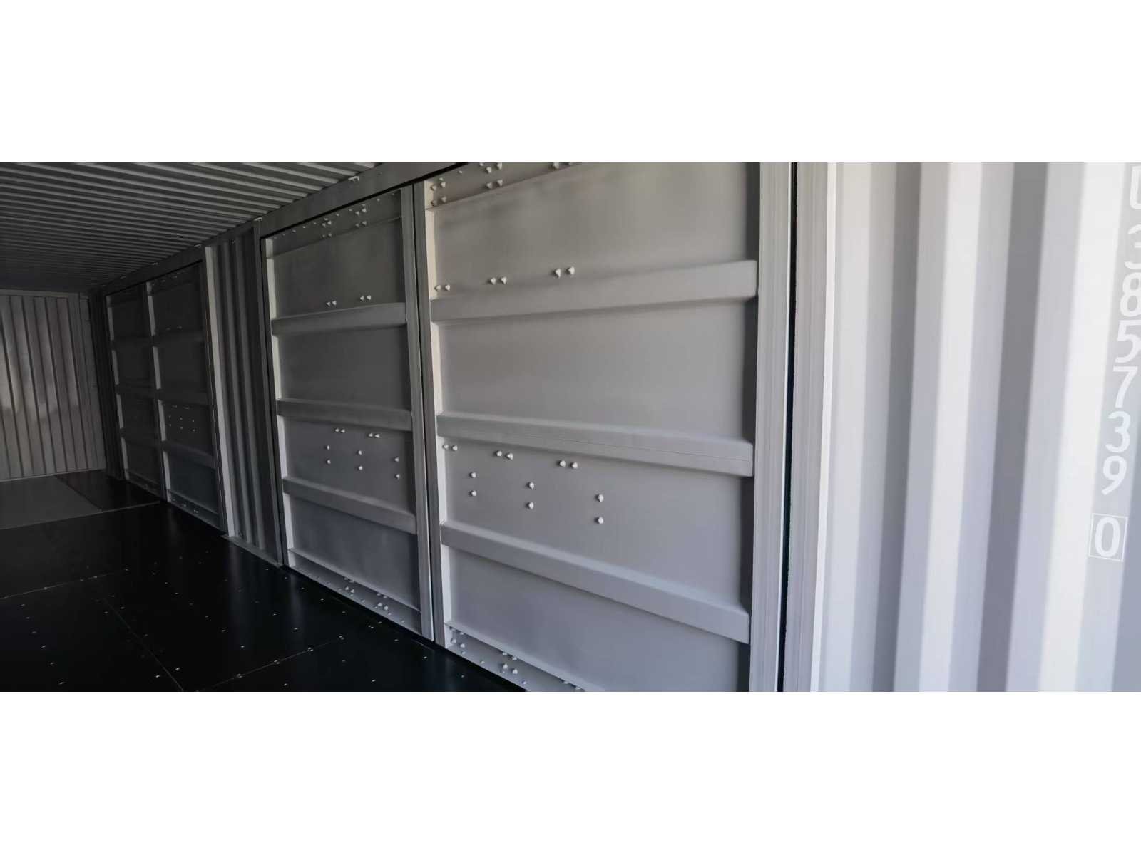 Voorzien van 2 separaat te openen zijdeuren en einddeur; slotkast; ongebruikt Merk: Rhino-Cross-Containers Type: 40ft High Cube zwart Bouwjaar: 2025 Lengte (ft): 40 High cube: true Eigen gewicht: 4260kg Totale afmeting L: 12190mm Totale afmeting Breedte: 2430mm Totale afmeting Hoogte: 2890mm