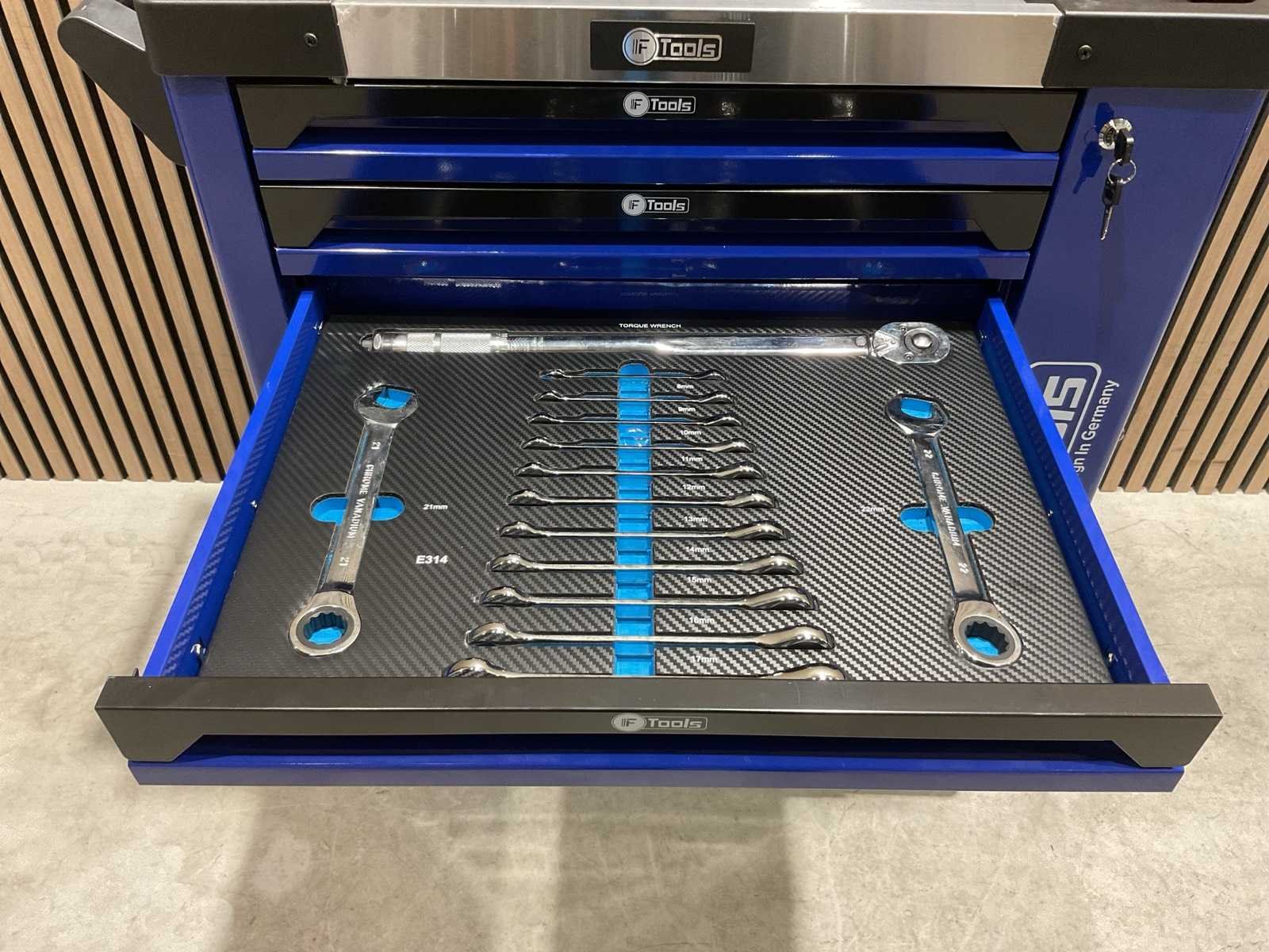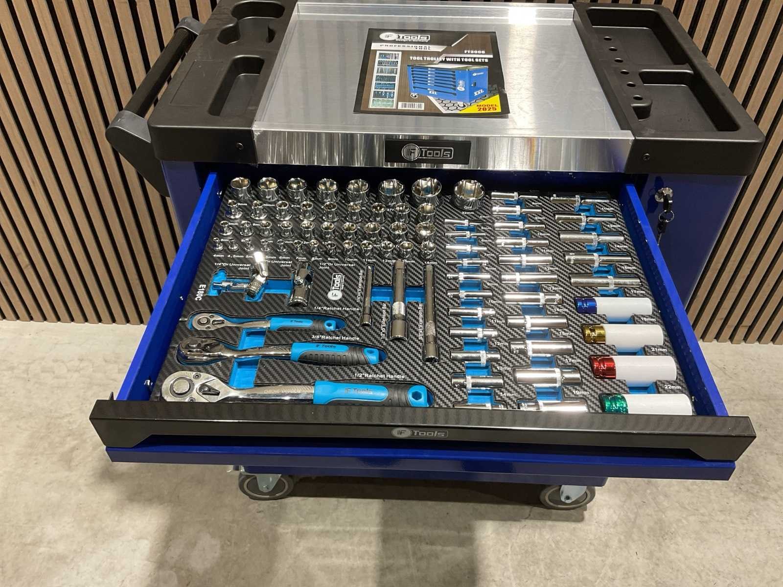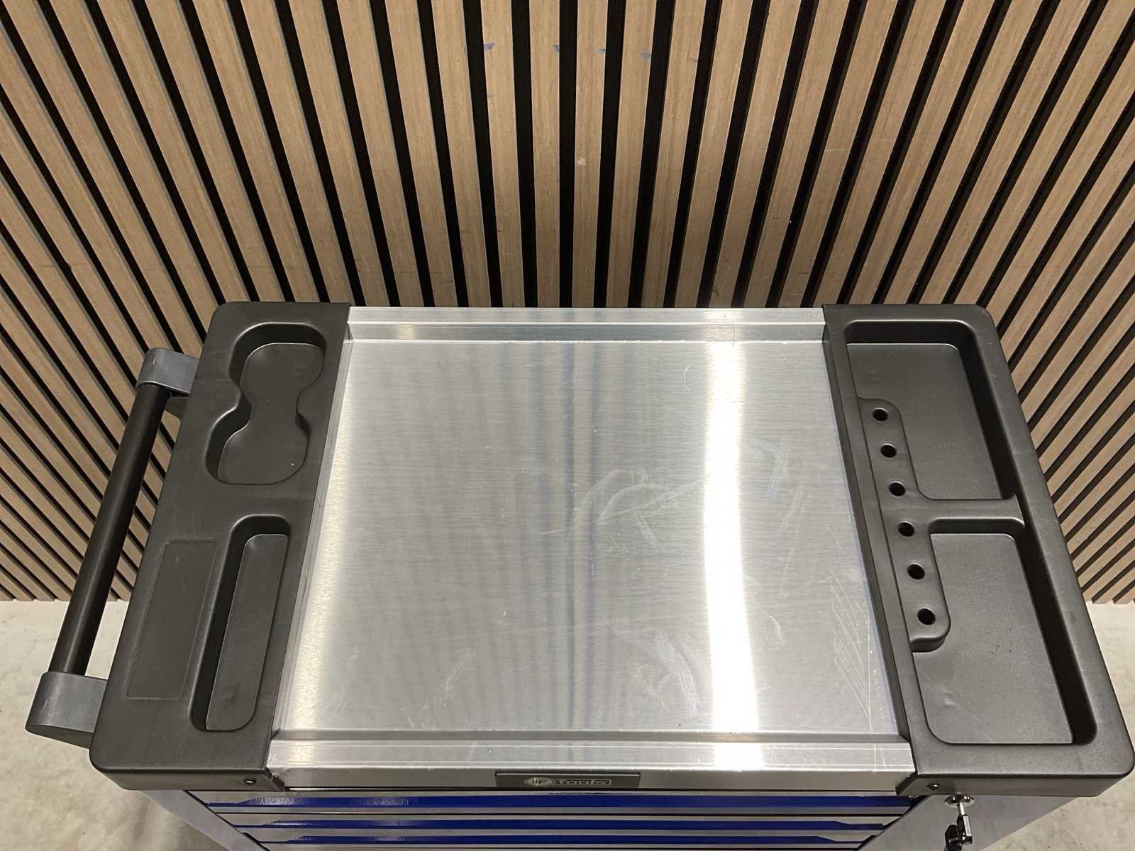 Voorzien van 7 lades gevuld met gereedschap; RVS werkblad; centrale vergendeling; Materiaal gereedschap: Chroom-Vanadium staal (CrV); Kogellager ladegeleiding; Bovenblad met geïntegreerde opbergvakken; Transport gewicht: 76 kg; Transport afmetingen 790x480x860 mm; ongebruikt in doos Merk: Ftools Type: FT3006