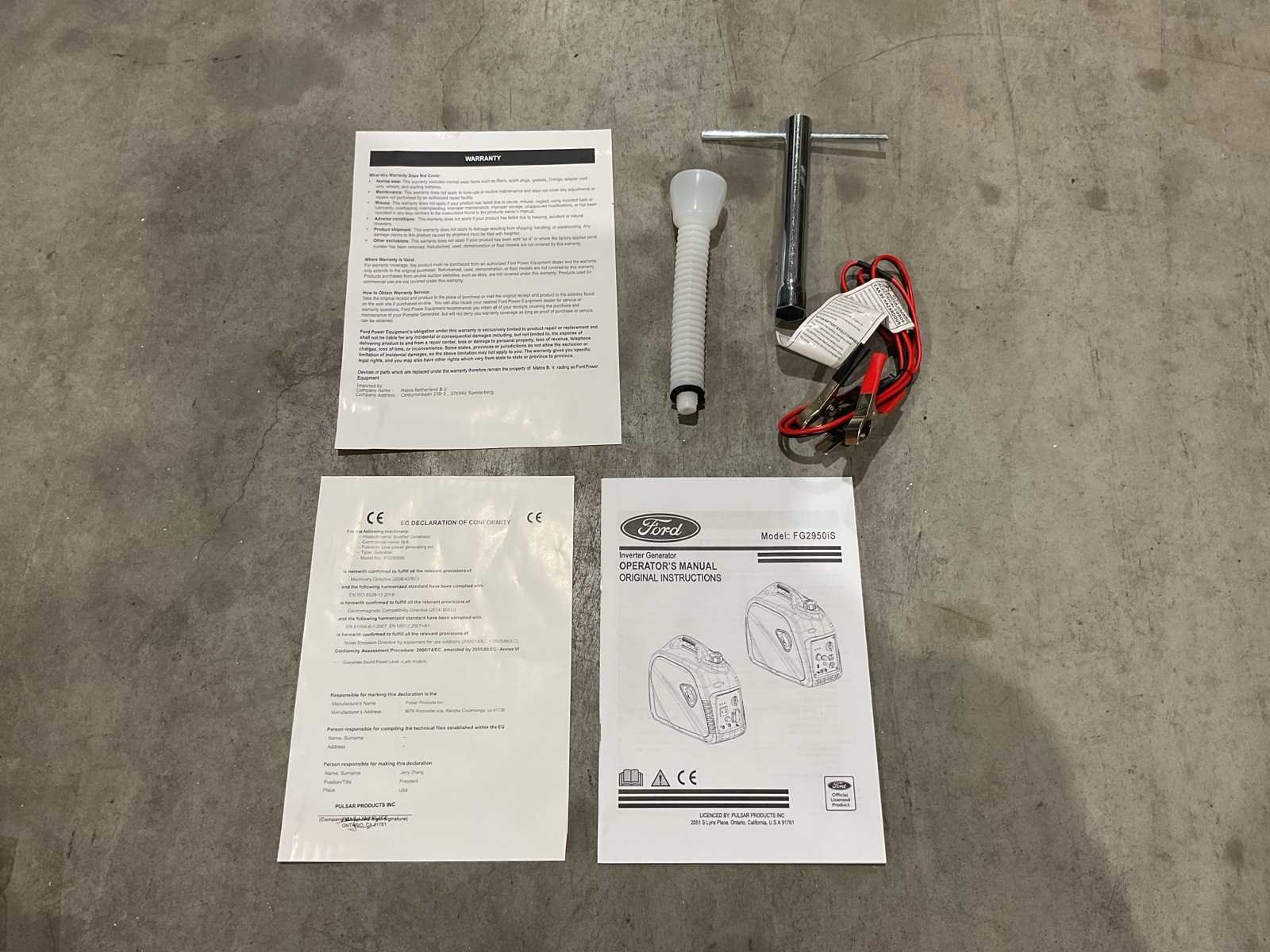 Vermogen (COP): 2000W; Vermogen (MAX): 2200W; Spanning: 230V; Frequentie: 50Hz; Motor: 98cc, 4-takt; luchtgekoeld; Tank: 1,18 gallon / 4,5 liter loodvrije benzine; Olietype: SAE 10W30; Olie-inhoud: 11,8 oz / 350 ml Trekstart; ongebruikt in doos. Merk: Ford Type: FG2950iS Bouwjaar: 2025 Benzine: true Type motor: Ford Aantal cilinders: 1 Luchtgekoeld: true Mobiel: true Machinegewicht: 24.5kg Totale afmeting L: 550mm Totale afmeting Breedte: 330mm Totale afmeting Hoogte: 475mm