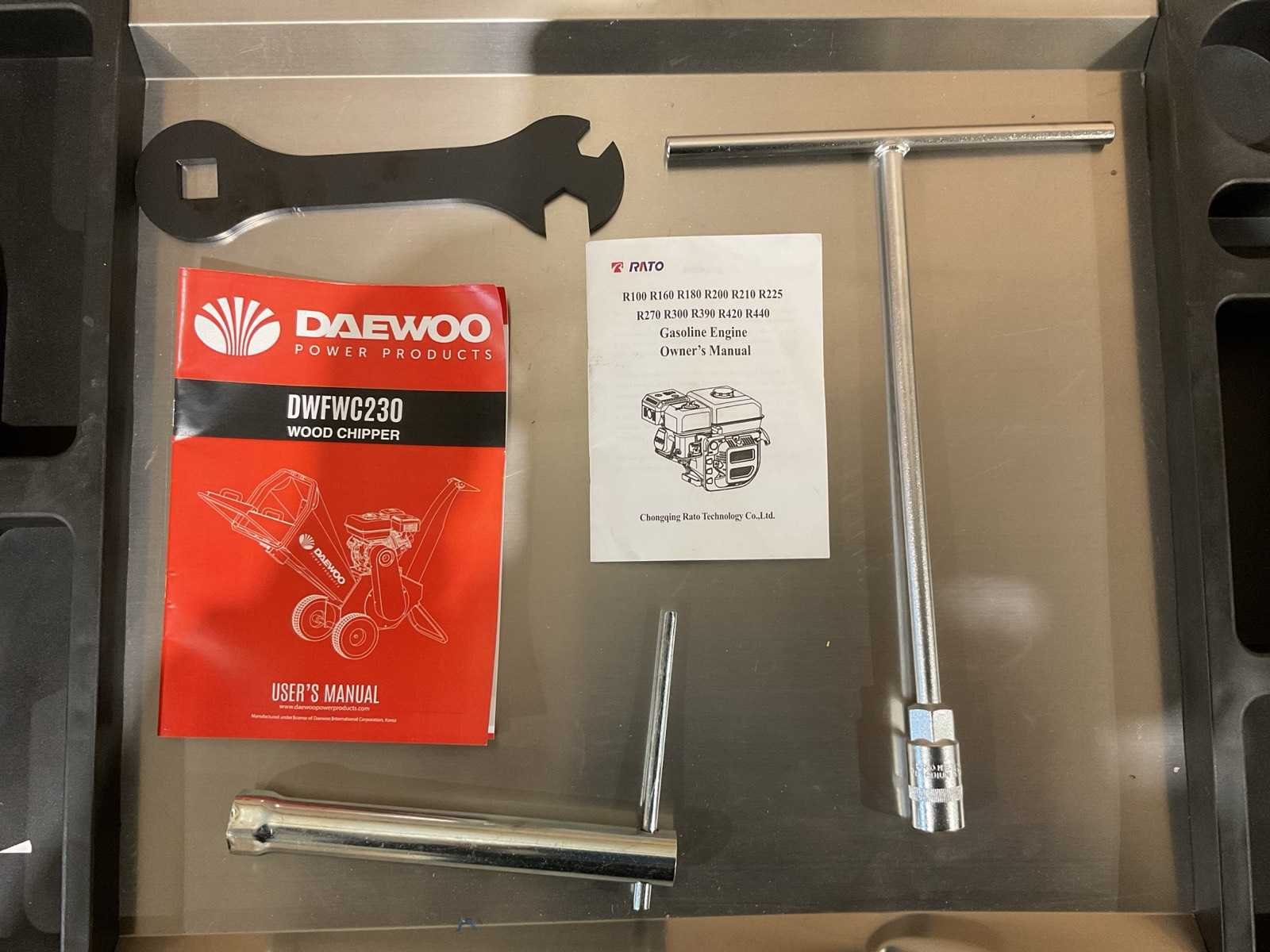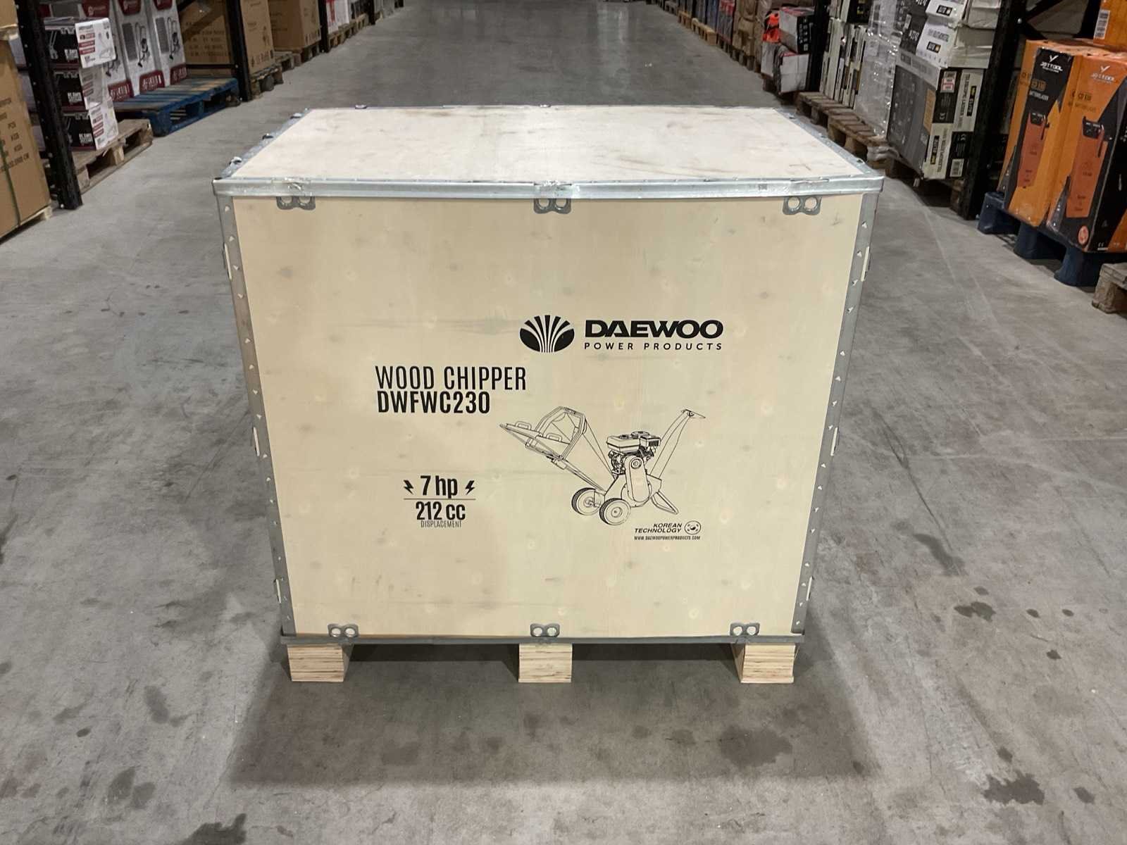 Voorzien van ; Krachtige Daewoo DWFWC230 houtversnipperaar met een 7 pk motor en 212 cm³ verplaatsing. Ideaal voor het verwerken van dikke takken tot 10 cm en groot tuinafval. Voorzien van een double-blade drumsysteem voor efficiënt en snel versnipperen en een dubbele V-riemaandrijving voor betrouwbare krachttransmissie en een lange levensduur.; Ongebruikt Transport afmetingen 885x570x870mm Merk: Daewoo Type: DWFWC230 Bouwjaar: 2025 Brandstofmotor aangedreven: true Brandstof: Benzine Eigen gewicht: 88kg Totale afmeting L: 1650mm Totale afmeting Breedte: 590mm Totale afmeting Hoogte: 1120mm
