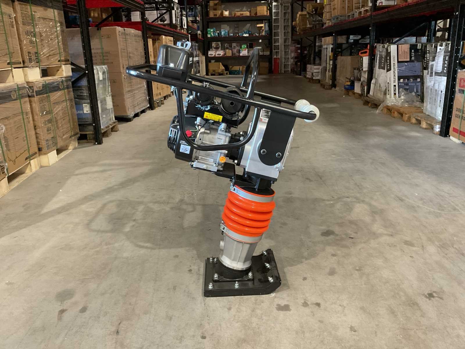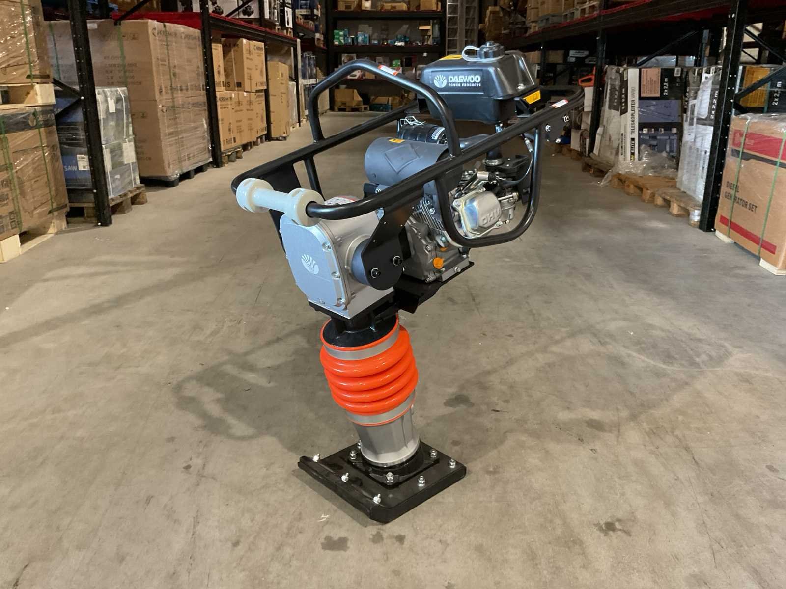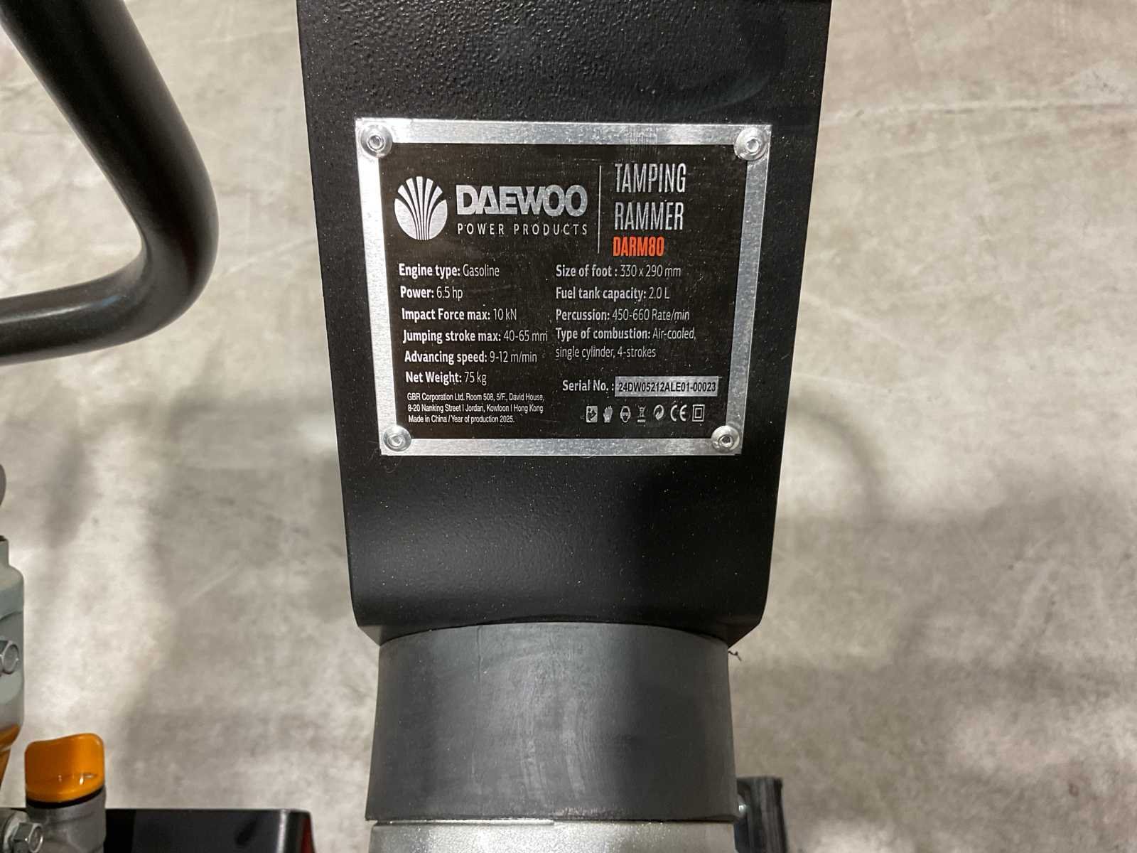 Voorzien van 6.5PK; Benzine motor; Snelheid 9-12m/min; Eigen gewicht: 75 kg; Tankinhoud: 2 L; Jumping stoke max. 40-65mm; Grondplaat afmeting: 330x290 mm; Machine afmeting: 750x480x1080 mm; Centrifugale kracht: 10 kN; Ongebruikt in doos Merk: Daewoo Type: DARM80 Bouwjaar: 2025 Bedrijfsgewicht: 62kg Grondplaat afm. l: 290mm Grondplaat afm. b: 290mm Centrifugale kracht: 10kN Merk motor: Login Brandstof: Benzine Eigen gewicht: 62kg Totale afmeting L: 780mm Totale afmeting Breedte: 500mm Totale afmeting Hoogte: 1150mm