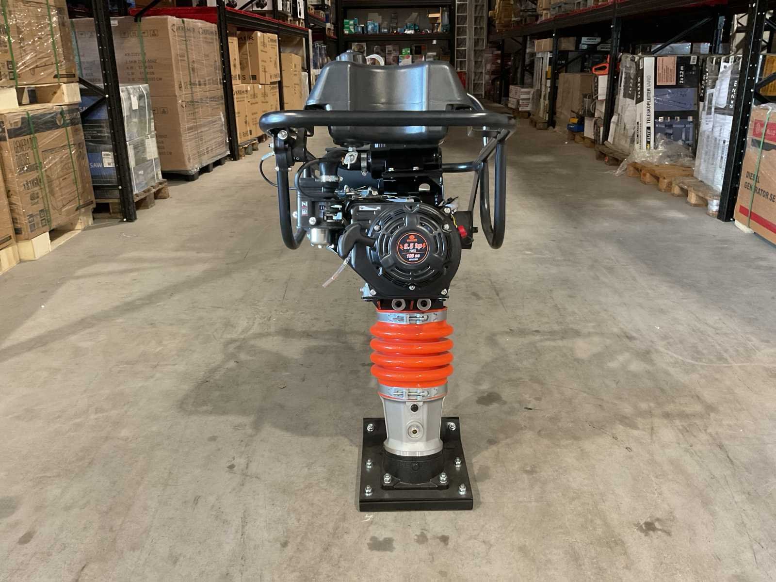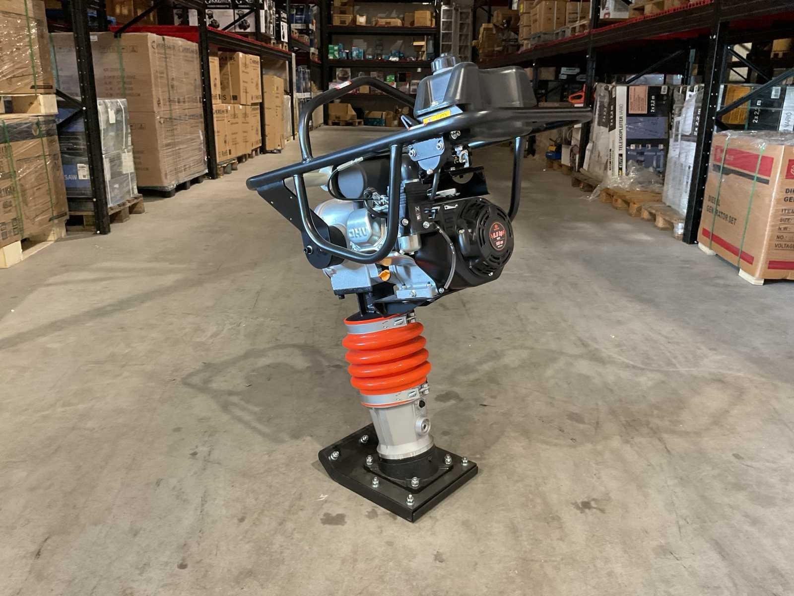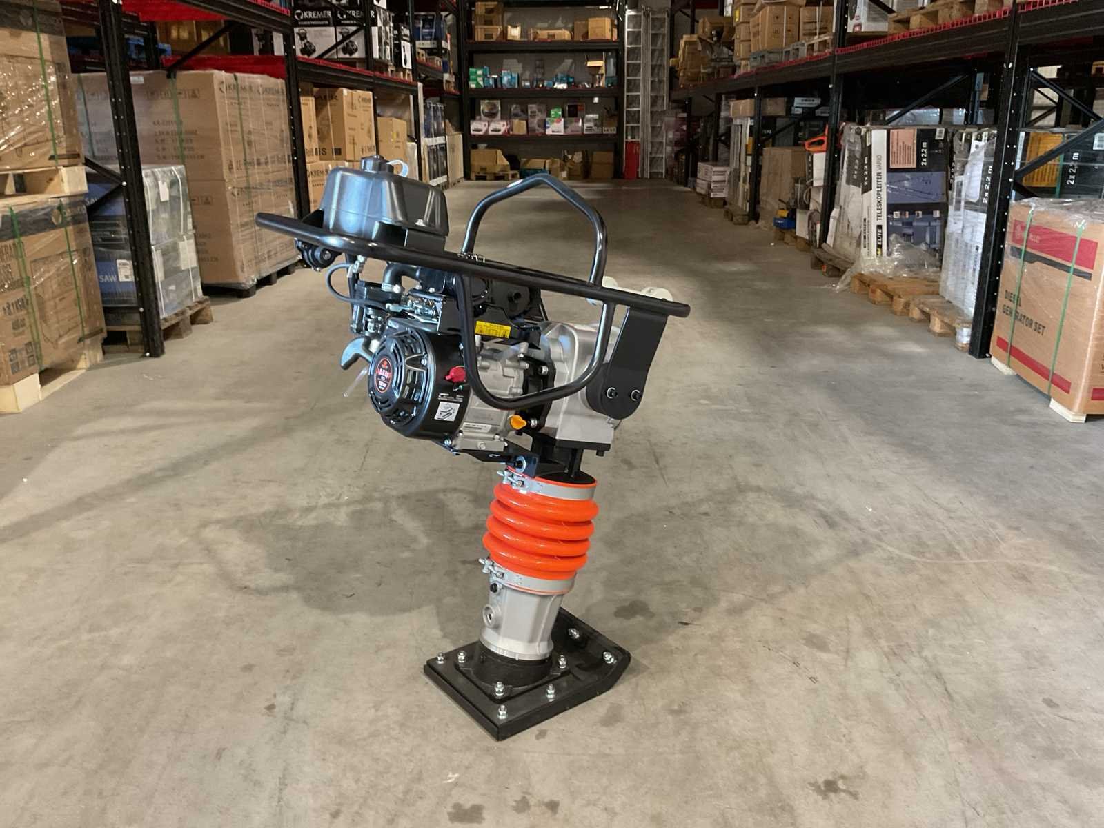 Voorzien van 6.5PK; Benzine motor; Snelheid 9-12m/min; Eigen gewicht: 75 kg; Tankinhoud: 2 L; Jumping stoke max. 40-65mm; Grondplaat afmeting: 330x290 mm; Machine afmeting: 750x480x1080 mm; Centrifugale kracht: 10 kN; Ongebruikt in doos Merk: Daewoo Type: DARM80 Bouwjaar: 2025 Bedrijfsgewicht: 62kg Grondplaat afm. l: 290mm Grondplaat afm. b: 290mm Centrifugale kracht: 10kN Merk motor: Login Brandstof: Benzine Eigen gewicht: 62kg Totale afmeting L: 780mm Totale afmeting Breedte: 500mm Totale afmeting Hoogte: 1150mm