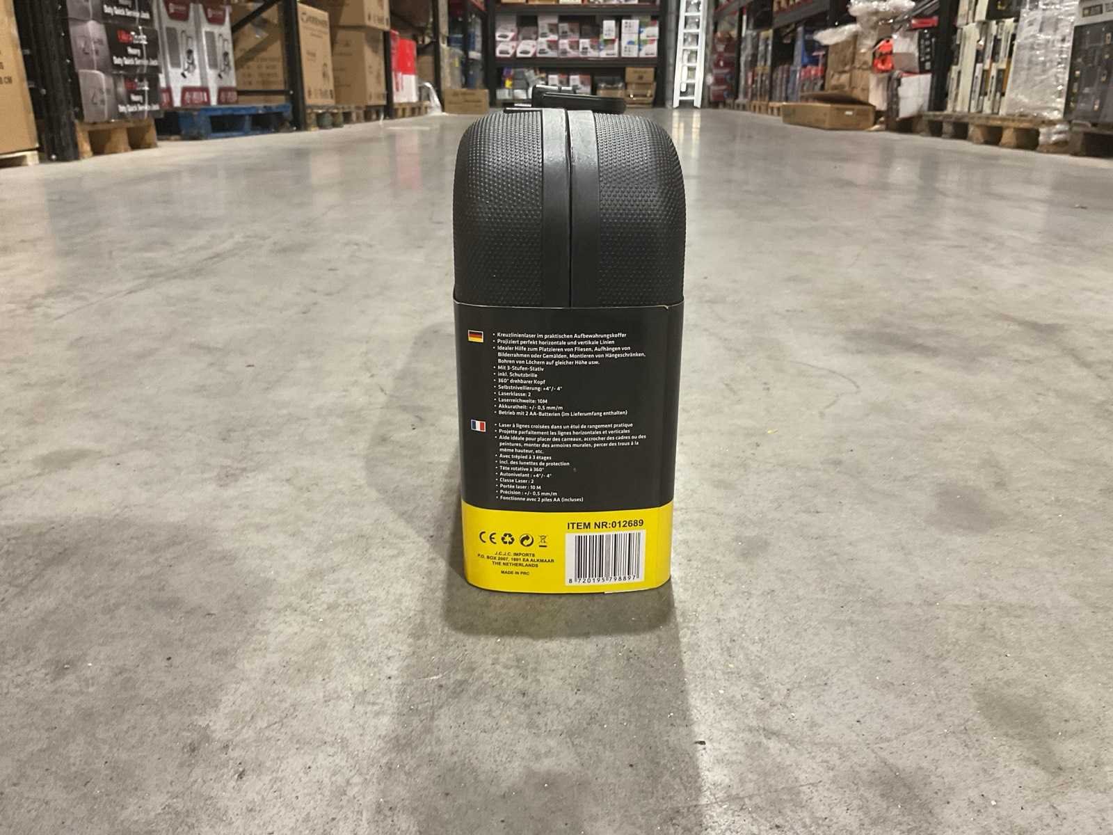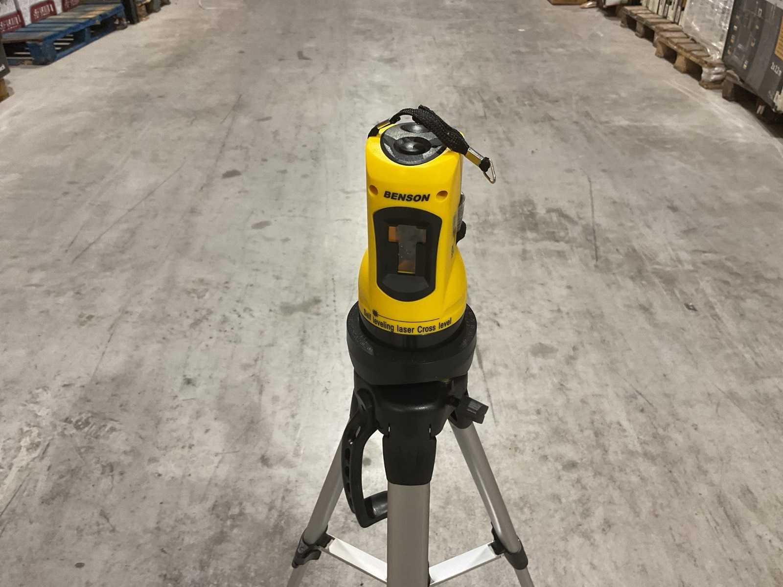 Transport maten; 480x120x250mm 2,3kg Zelf nivellerend: +4°/- 4°Met 3-traps statief Laser klasse 2Laserbereik 10M360°draaibare kop Projecteert perfect horizontale en verticale lijnen Ideale hulp om tegels te plaatsen, fotolijsten of schilderijen ophangen, hangkasten monteren, gaten op gelijke hoogte boren etc. Werkt op 2 AA batterijen inbegrepen In handige opbergkoffer; Ongebruikt in doos. Merk: Benson Type: 012689 Gewicht: 2.3 Met koffer: true Statief: true Kruislijnlaser: true