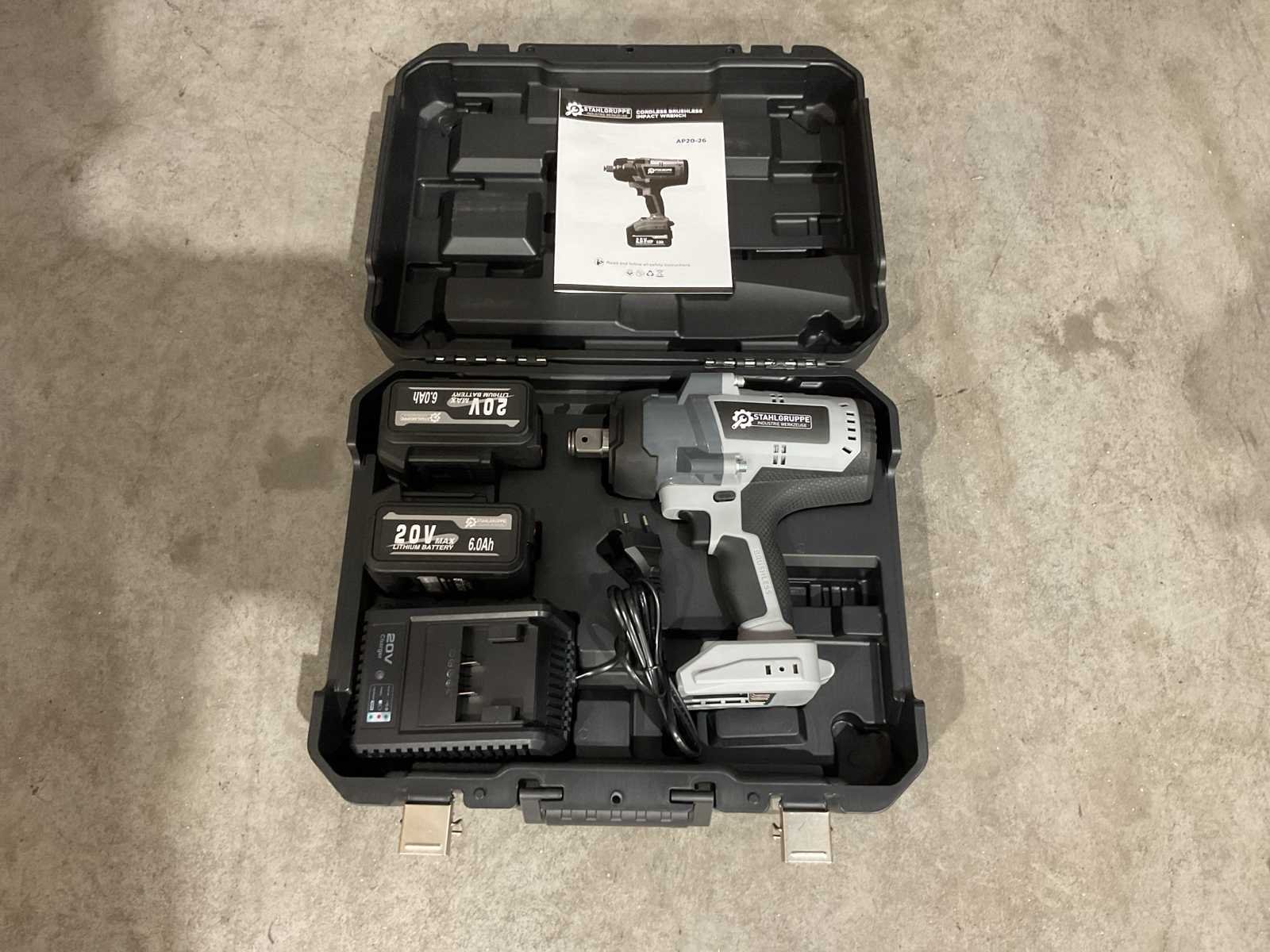 Voorzien van slagmoersleutel / oplader / 2x accu 20v 6.0Ah lithium / 0-1600rpm / 0-2300bpm / 1600 maximale koppeling / Transport maten 6,3kg / 400x135x335mm Merk: Stahlgruppe Type: AP20-26 Bouwjaar: 2025 Accuspanning: 20V Aantal accu's: 2 Accu type: Lithium Accu lader: true Met koffer: true