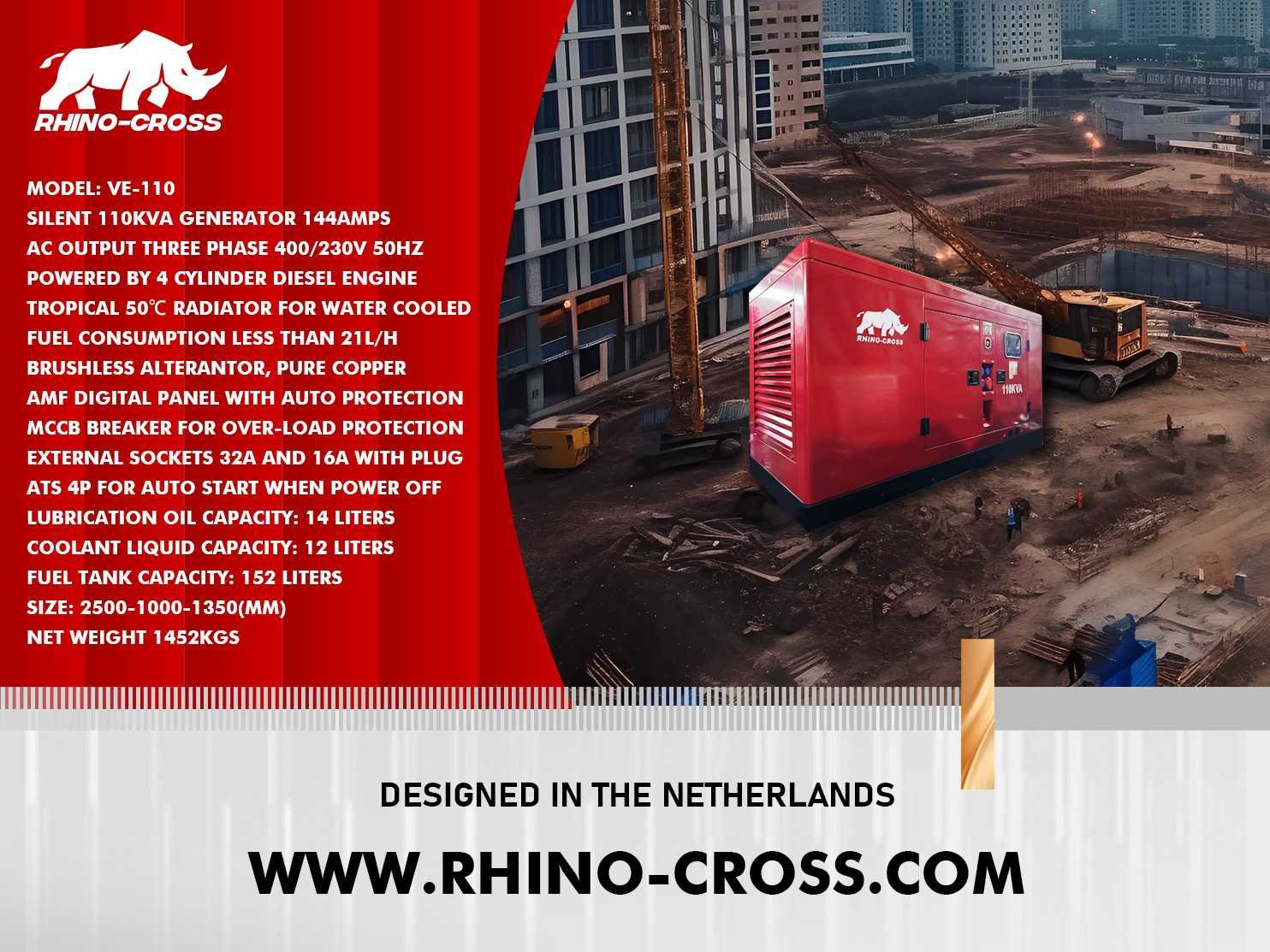 Fix with CEE sockets and ATS 160A; inclusief toebehoren; ongebruikt (let op af te halen vanaf circa 16 mei) Merk: Rhino-cross Type: VE-110 Bouwjaar: 2025 Capaciteit.: 110kVA Aansluiting: 380V Handboek aanwezig: true Machinegewicht: 1400kg Totale afmeting L: 2500mm Totale afmeting Breedte: 1000mm Totale afmeting Hoogte: 1350mm