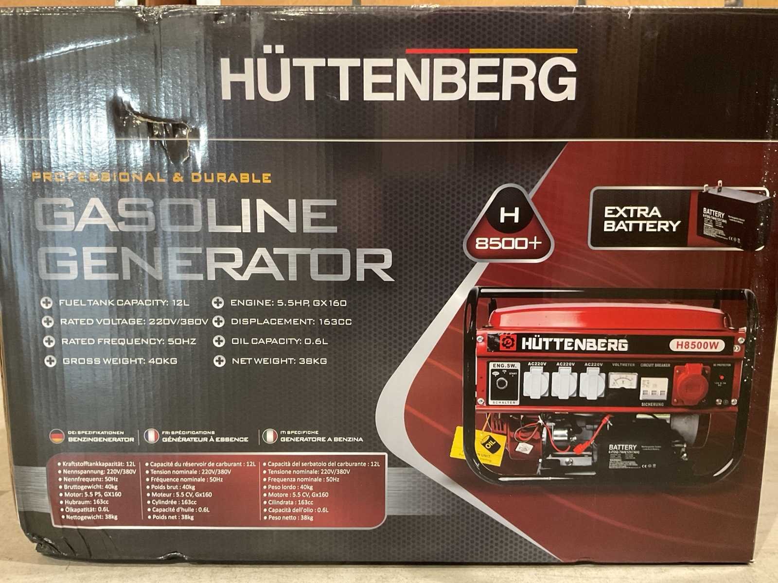 12liter tankinhoud - nominale spanning 220v / 380v - nominale frequentie 50Hz - motor 5,5 PK GX160 163cc - olie inhoud 0,6 L Merk: Huttenberg Type: H8500W met accu Bouwjaar: 2025 Benzine: true Machinegewicht: 38kg Totale afmeting L: 615mm Totale afmeting Breedte: 445mm Totale afmeting Hoogte: 445mm