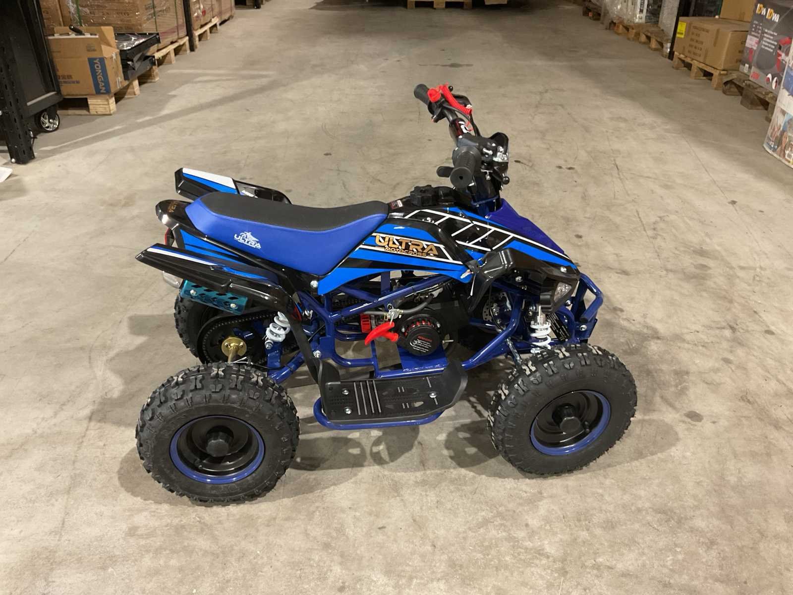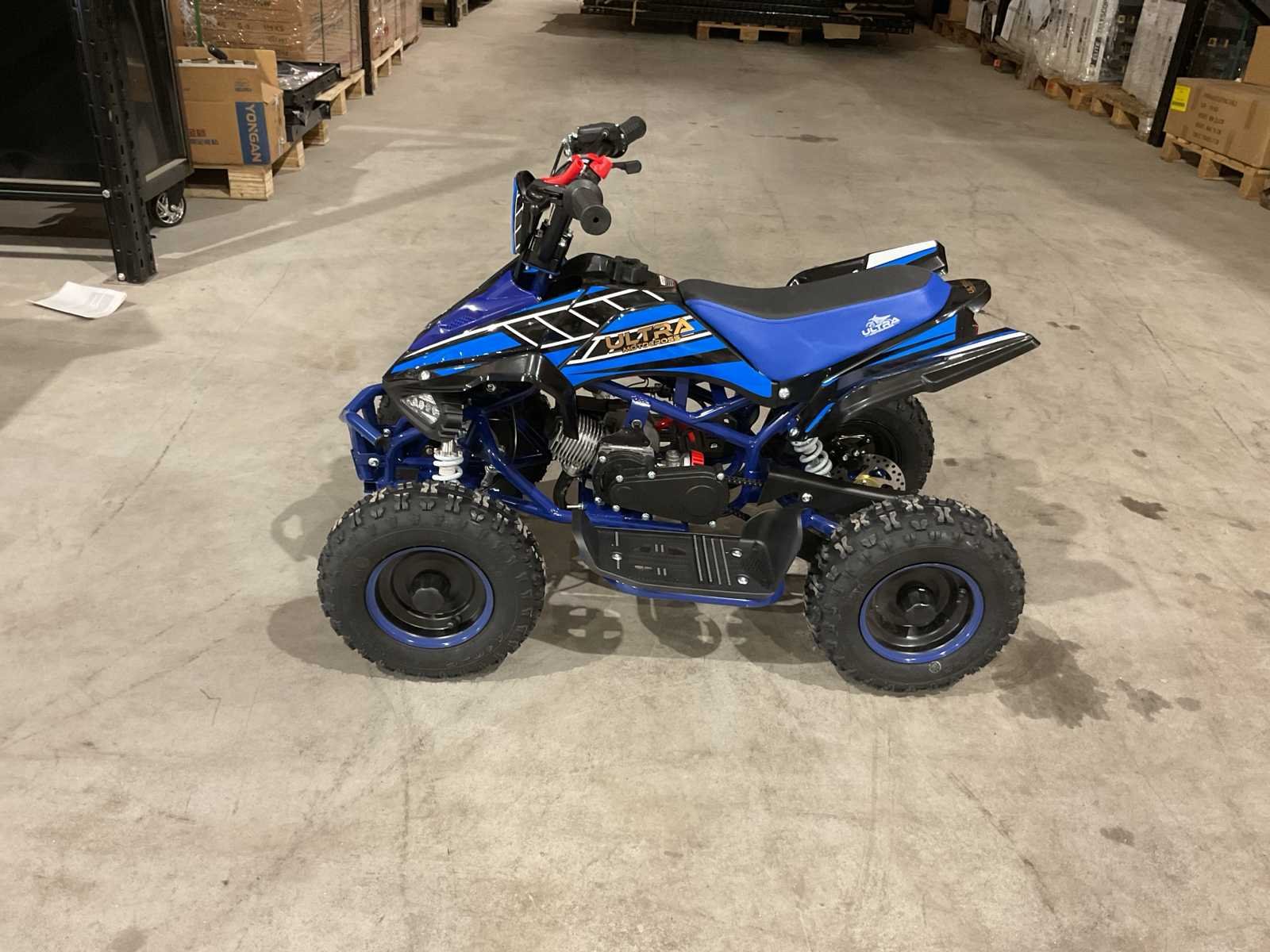 Voorzien van 49cc benzine motor; 2 takt; trek start; 3 verschillende snelheden; kill-switch; bandenmaat 6” inch; 2 sleutels; ongebruikt in doos (transport afmetingen 100x55x45 cm 36kg) Merk: Ultra Motocross Model: MA03 Product type: ATX 49 BL Gewicht: 34kg Aantal sleutels: 2 Transmissie: Automaat Bouwjaar: 2025 Cilinderinhoud: 49cc Brandstof: Benzine 2 Takt Kleur: Blauw